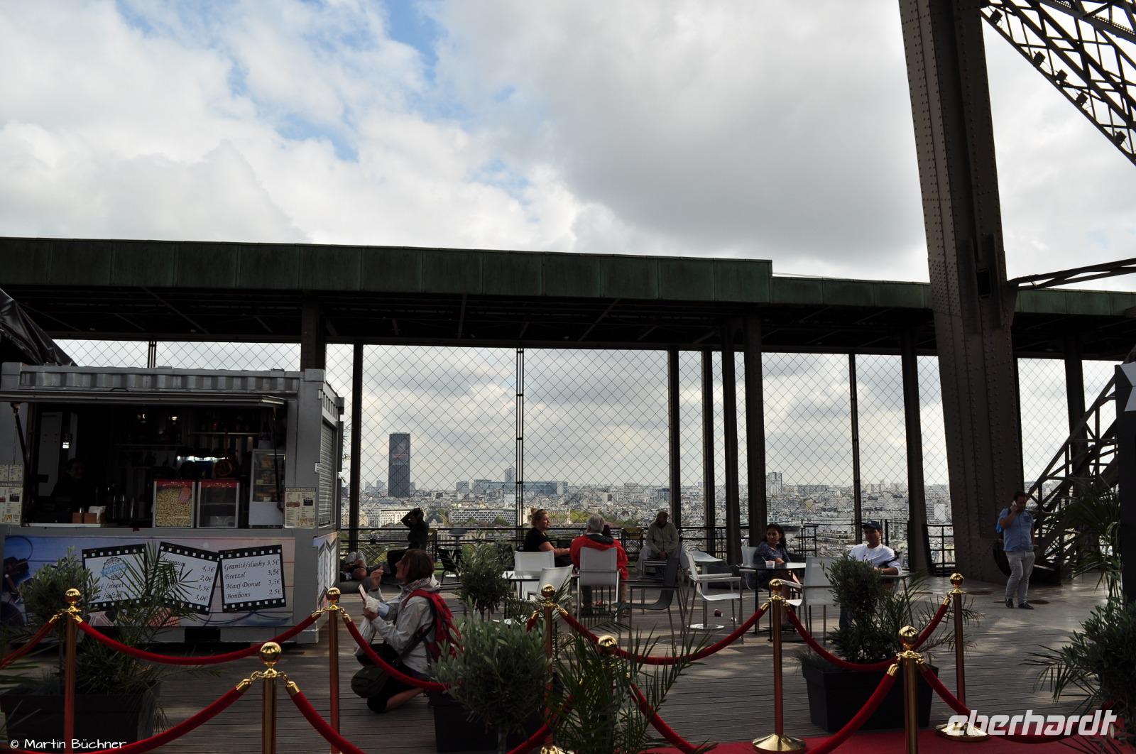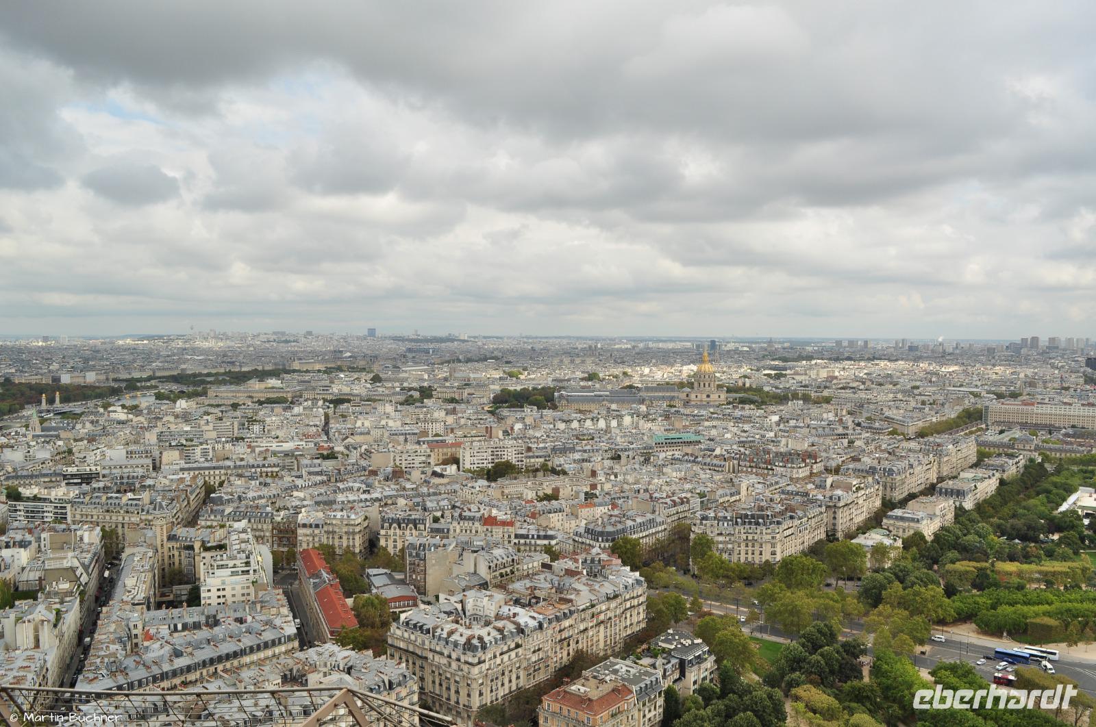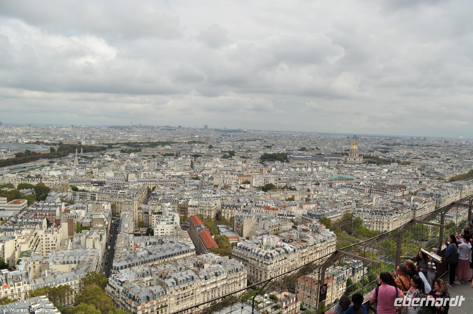 Im Anschluss geht es zum Tour Montparnasse, dem höchsten Bürogebäude der Stadt, ein Wolkenkratzer. Ein Aufzug bringt uns hinauf auf über 200 m Höhe und bietet nochmals eine fantastische Aussicht über die Stadt, diesmal mit Blick zum Eiffelturm!