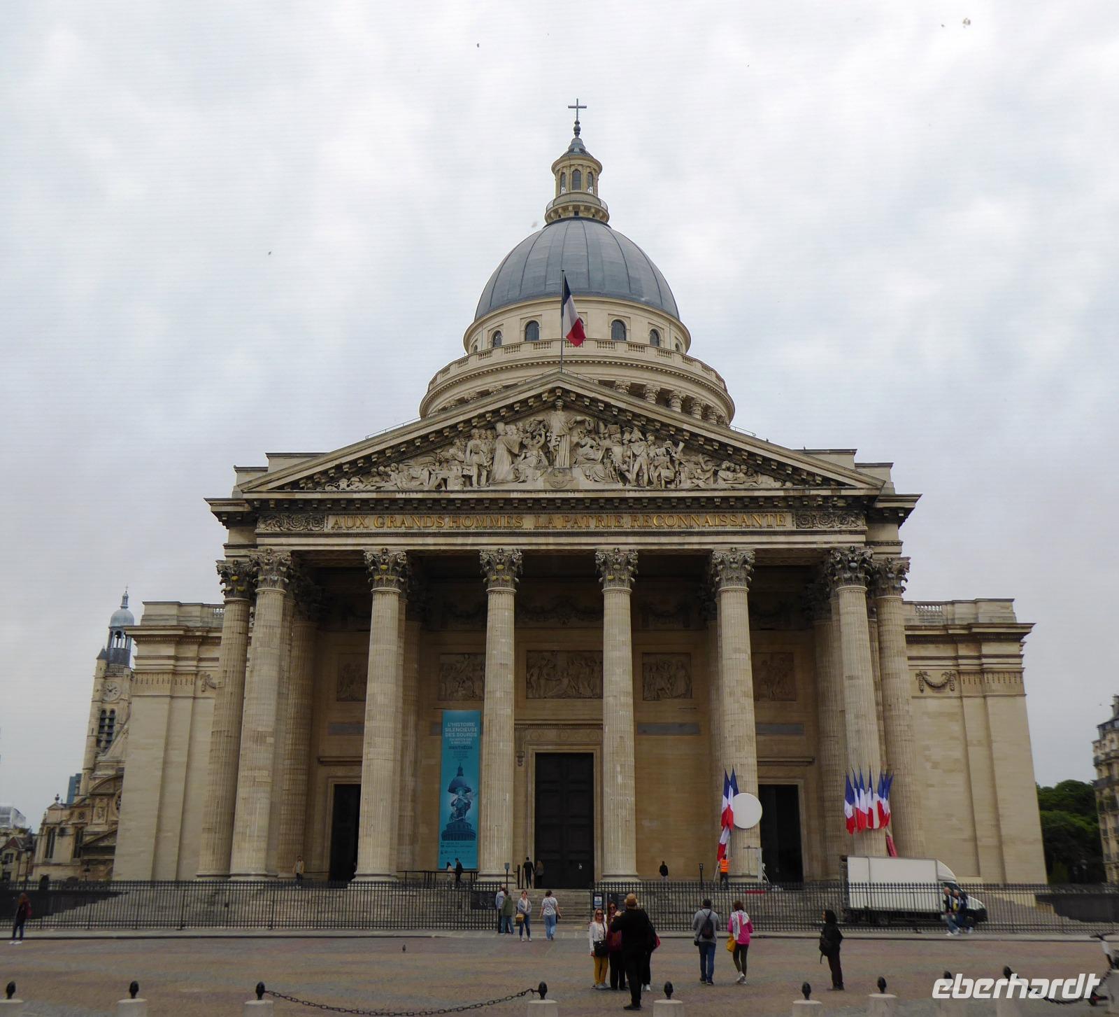 Nach einer erholsamen Nacht und einem ausgiebigen Frühstück im Hotel mit Kaffee, Tee, Säften, viel Obst und allem, was ein üppiges Frühstück ausmacht, starteten wir pünktlich um 09:00 Uhr mit unserer nun vollständigen Reisegruppe zu einer sehr ausführlichen Stadtrundfahrt mit einigen Fotopausen-Ausstiegen. Zur Einführung sahen wir viele bunte Sonntagsmärkte, das „neue" Paris mit E-Rollern an fast jeder Straßenecke, fuhren vorbei an der prächtigen „alten" Opéra Garnier, dem Bastille-Platz mit der neuen Oper, über die Seine, sahen Nôtre-Dame, dann das Panthéon (mit der Widmung auf der Fassade „ Aux Grands Hommes La Patrie Reconnaîssante" - Den großen Männern - gewidmet in Dankbarkeit, das Vaterland), den schönen alten Kaufhäusern, „Galéries Lafayette" und „Printemps".