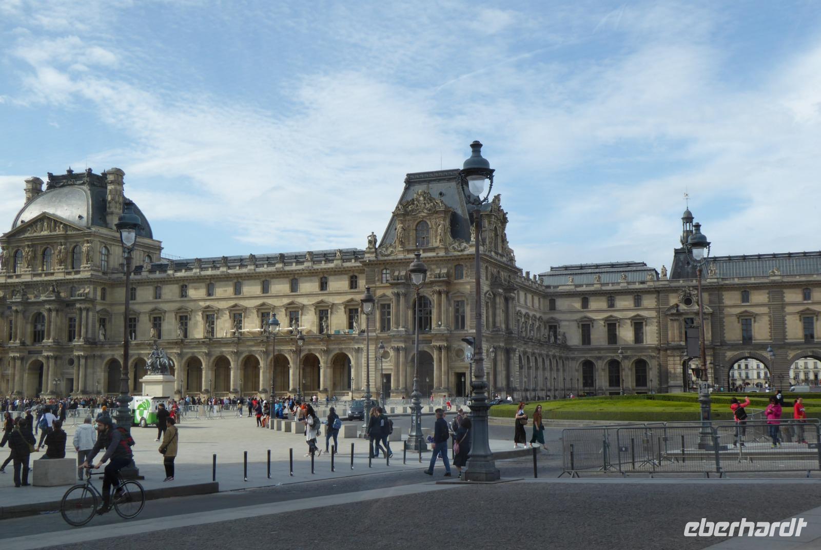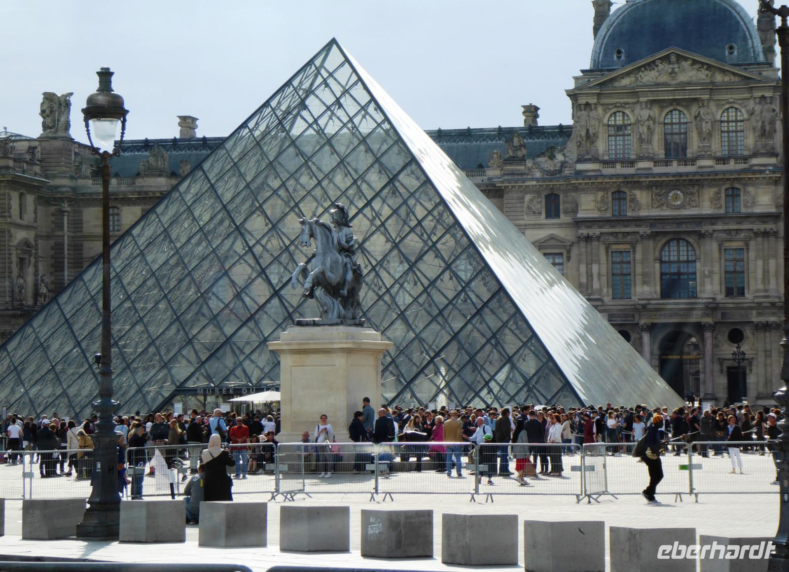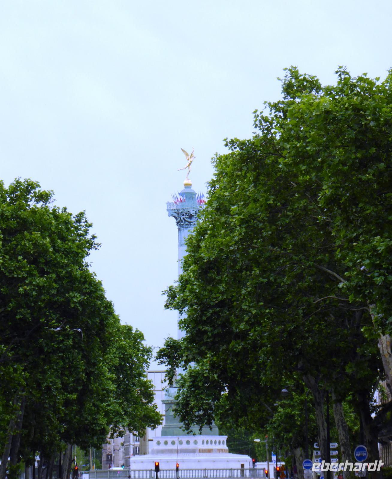 Bei unserer Anfahrt zum Bastille-Platz, von dem aus wir unseren Rundgang starten wollten, fuhren wir mit unserem erfahrenen Chauffeur durch eines der engen Tore, durch die man in den Innenhof des Louvre gelangt, von wo aus man einerseits die Größe dieses Palastes noch besser würdigen kann und außerdem den kleinen Arc du Carrousel (von Napoléon I. zwischen 1807 und 1809 erbaut) und die bekannte Glaspyramide sieht, die seit Ende der 1980er Jahre als Eingang in das Louvre-Museum dient.