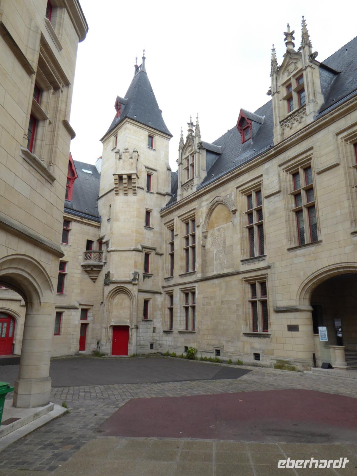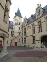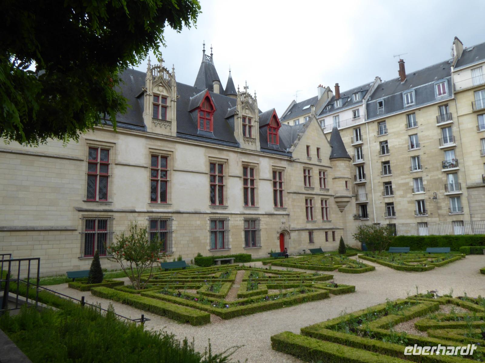 Durch den oben erwähnten Durchgang gelangen wir zum Vogeser-Platz, Place des Vosges. Der sehr harmonische Platz ist Anfang des 17. Jahrhunderts entstanden und von 36 Häusern umstanden. Der Schriftsteller Victor Hugo hat hier gelebt, ebenso wie Madame de Sévigné, die durch ihre Briefe bekannt wurde, die interessante Einblicke in das damalige Leben geben. Auf unserem Spaziergang sehen wir viele weitere interessante Häuser, unter ihnen das heutige Musée du Carnavalet. Das Marais-Viertel ist heute auch ein jüdisches Viertel, davon zeugen die Synagoge, ein jüdisches Bad, größere und kleinere Geschäfte und Cafés auf unserem Weg. Über ein weiteres prächtiges Adelshaus, das Hôtel de Sens, gelangen wir schließlich zurück zur Place de la Bastille, wo wir uns nach einer Mittagspause am Bus treffen, um zum Eiffelturm zu fahren.