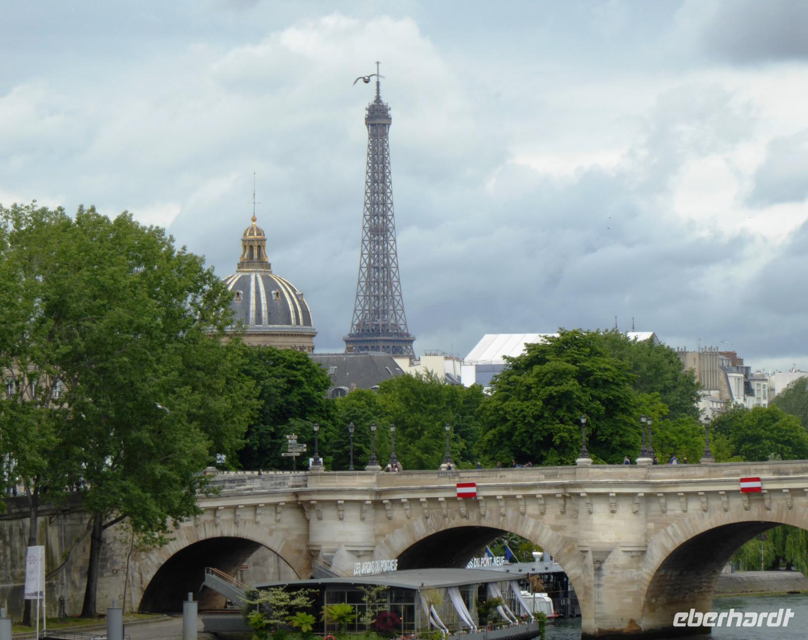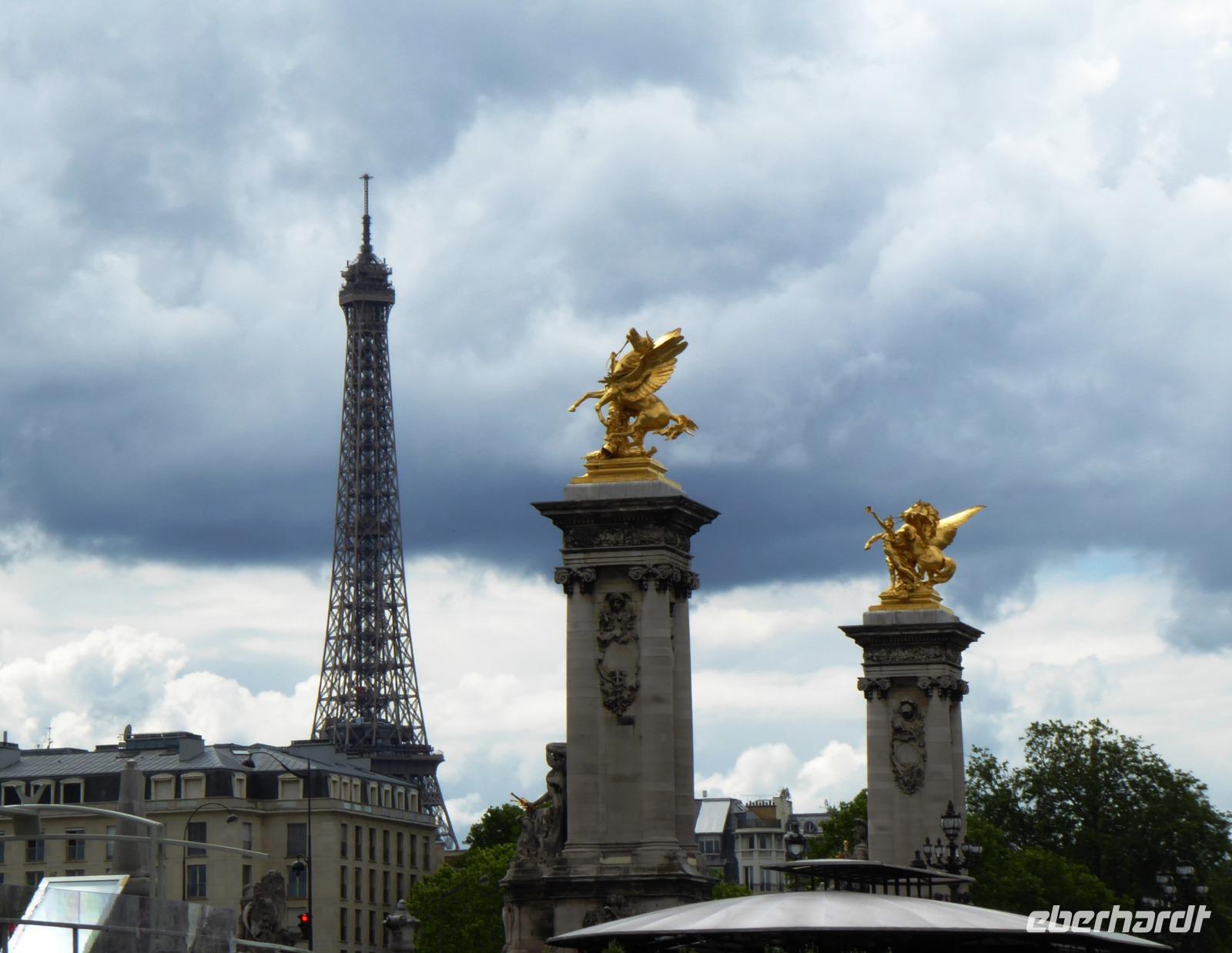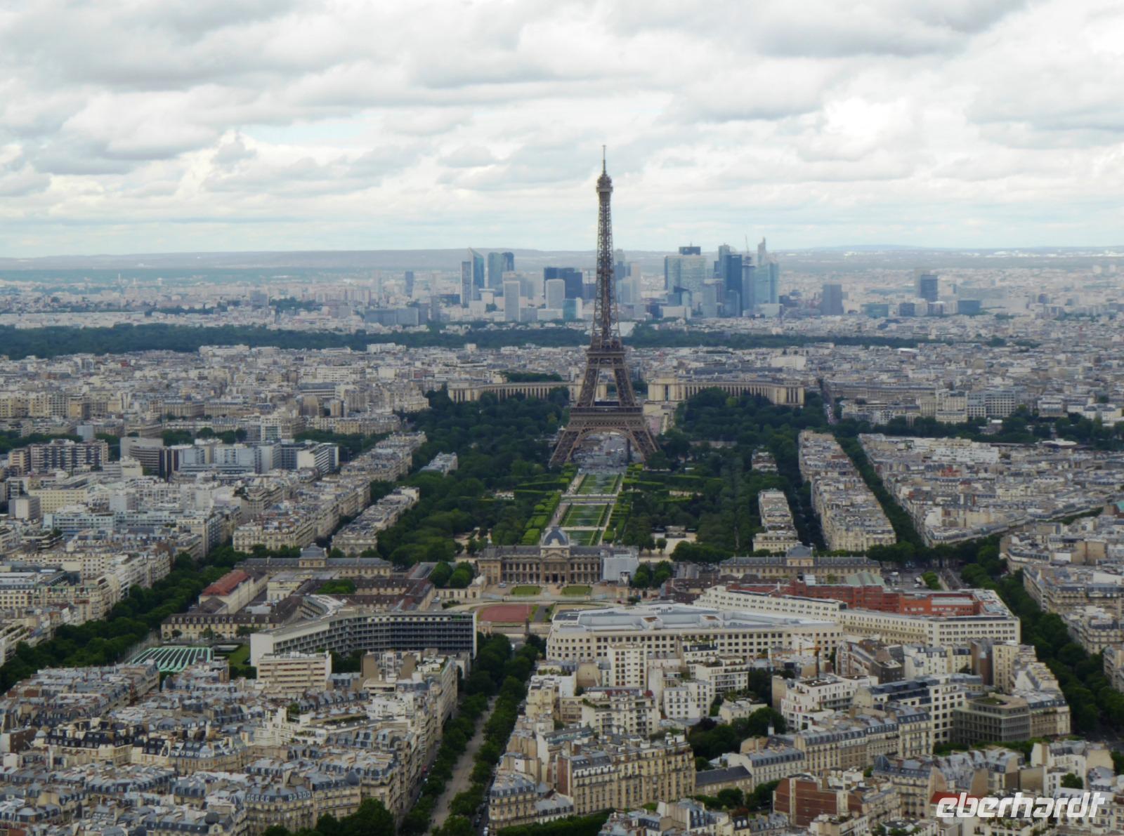 Am frühen Nachmittag fahren fast alle Gäste auf die zweite Etage des insgesamt 324 m hohen Eiffelturms, der von 1887 bis 1889 für die Weltausstellung gebaut wurde; von dort oben hat man fantastische Ausblicke auf das Häusermeer von Paris.