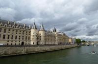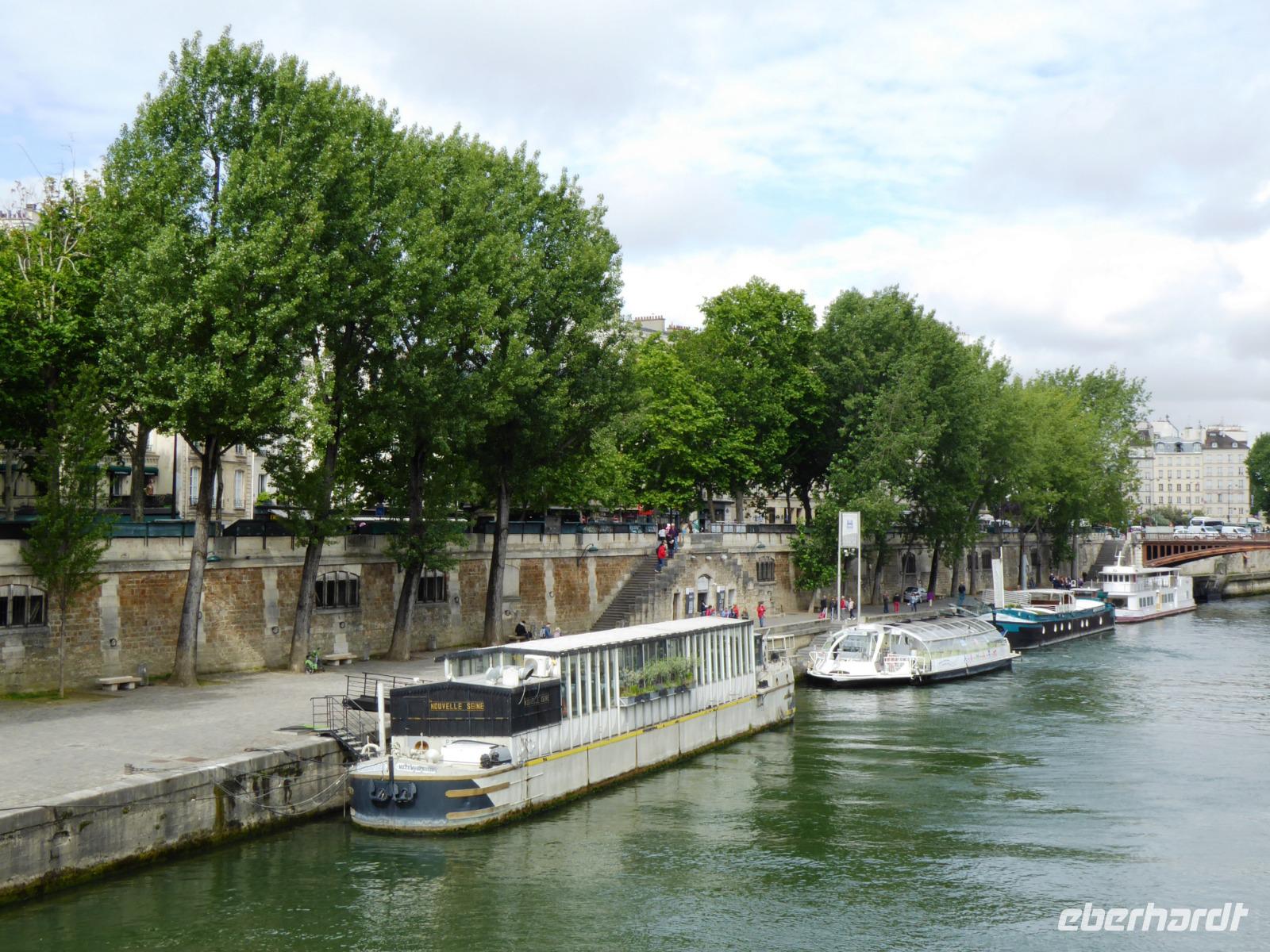 Nach Überquerung des Innenhofes gelangten wir durch eines der Ausfahrtstore an die Seine, wo wir die Conciergerie sehen, die lange Zeit als Gefängnis genutzt wurde, und die noch verschlossenen grünen Kästen der Bouquinisten.