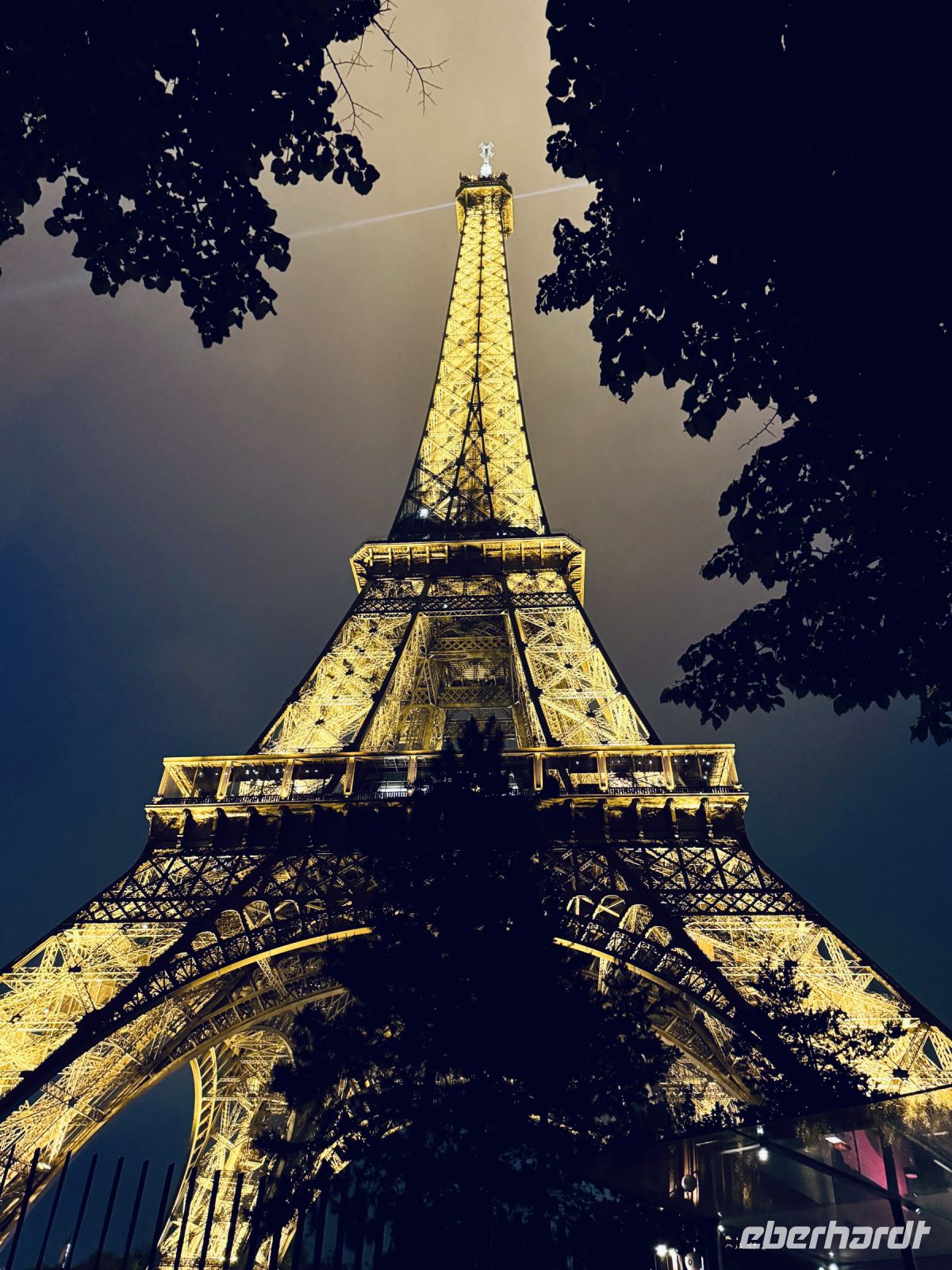Der Eiffelturm wird von über 300 Scheinwerfern angestrahlt, die entlang der Eisenträger angebracht sind, und nimmt bei Einbruch der Dunkelheit eine goldfarbene Nuance an. Die Lichtkegel setzen seine Konstruktion in Szene und bieten eine neue Art und Weise den Turm zu sehen, und dies sowohl von unten als auch von oben, von wo man dank der geschwungenen Silhouette eine atemberaubende Sicht genießt. Am Anfang jeder Stunde erwartet die Besucher eine Überraschung: ein spektakuläres Funkeln von 20 000 Glühbirnen beleuchtet den Eiffelturm 5 Minuten lang. Eine Einrichtung, die anlässlich der Jahrtausendwende konzipiert wurde und auf Anfrage der Pariser, die von der magischen Wirkung begeistert waren, beibehalten wurde. Ein besonderer Moment, den auch wir in vollen Zügen genießen können.