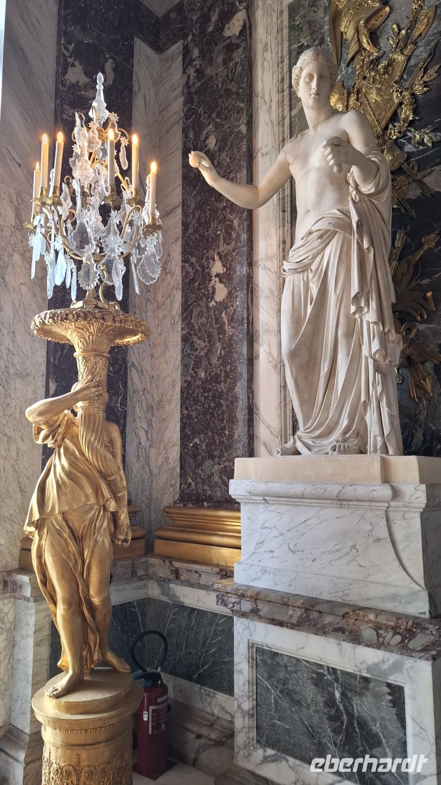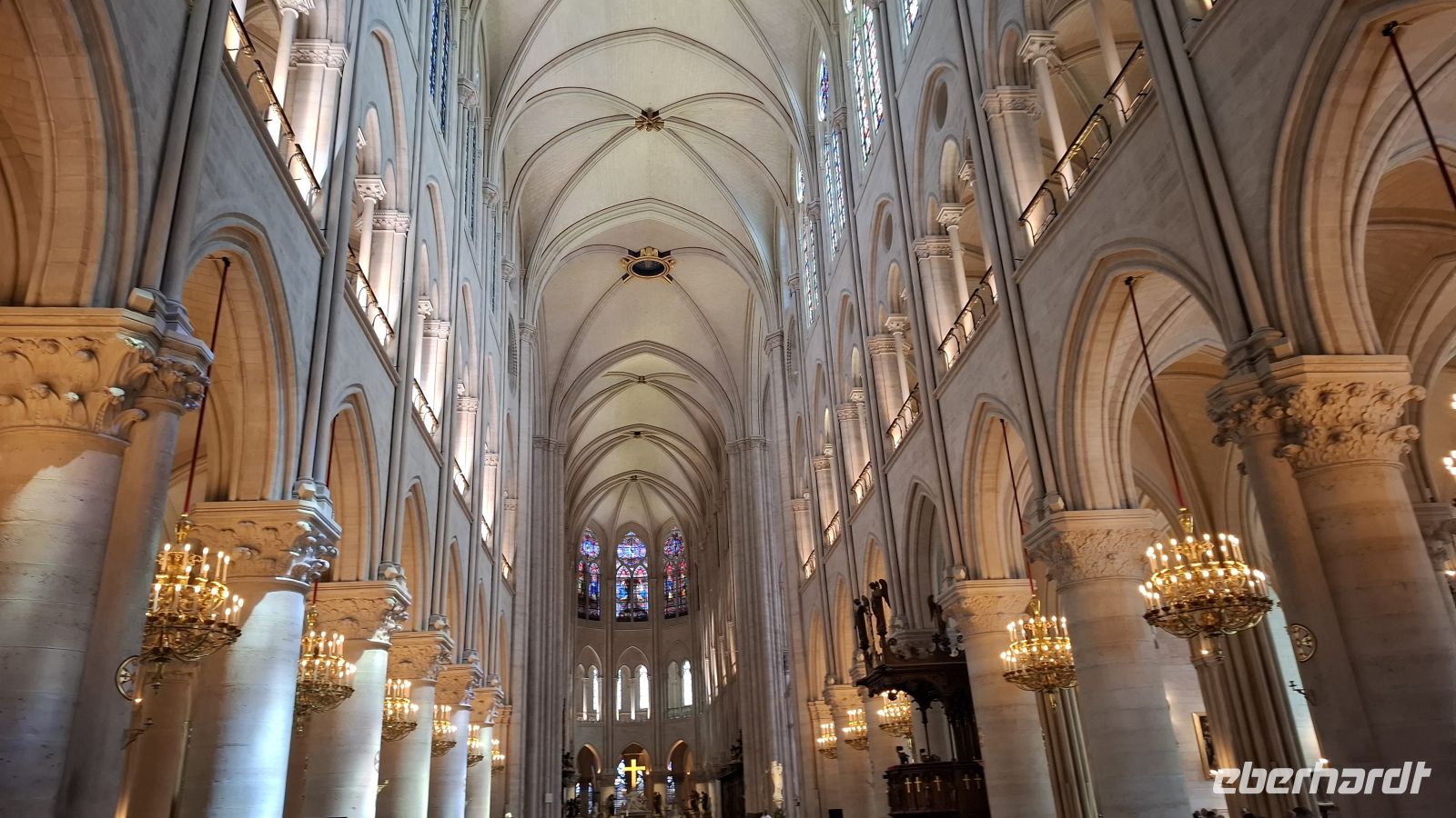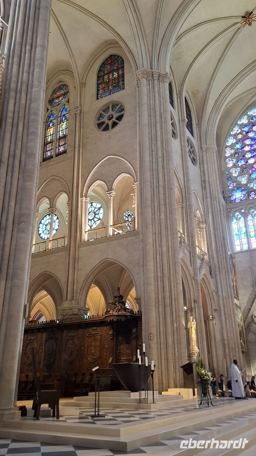 Auch heute wieder Baquette und französischer Camembert zum Frühstück - herrlich! Für die Cabaret-Besucher war es eine kurze Nacht. Doch wir hatten vor, in das Leben am Hofe des Sonnenkönigs einzutauchen. Da ist frühes Aufstehen wichtig! Und es hat sich gelohnt, denn auf dem riesigen Busparkplatz waren nur einige wenige Busse vor uns da. Die Sonne verwandelte den Hof des Sonnenkönigs in ein Meer aus glitzerndem Gold. Wir waren begeistert und konnten direkt und ohne Anstehen ins Schloss gehen. Das vertrieb den Gästen die Müdigkeit schnell aus den Beinen und alle schreiteten in Richtung Spiegelsaal. Wir waren begeistert von der üppigen Ausstattung des Schlosses, der prächtigen Kapelle und dem langen Spiegelsaal, in dem man heute sogar ein Tänzchen wagen konnte. Vor den Fenstern genossen wir die Ausblicke in den üppigen Garten. Da wir so früh da waren, nutzten einige die Zeit, sogar noch die Gärten und Wasserspiele zu besichtigen oder in den hübschen Ortskern von Versailles zu spazieren und in den Markthallen Leckereien für die Mittagspause und die Daheimgebliebenen zu erwerben. Gegen Mittag trafen wir uns am Bus wieder auf einen kleinen Imbiss, tauschten gutgelaunt unsere Entdeckungen aus und anschließend chauffierte uns unser Fahrer Evgenij zuück nach Paris. Heute Nachmittag wagten wir ein Experiment: Wir wollten mir der gesamten Reisegruppe die neueröffnete Kirche Notre Dame de Paris besichtigen. Doch wie lang die Besichtigungsschlange heute sein würde, ahnte keiner. Der halbe Vorplatz war voller Gäste aus aller Welt. Aber es ging rasend schnell voran und so erreichten wir das Kircheninnere schon nach unglaublichen zehn Minuten. Die Kirche empfing uns strahlend hell. Wir hatten sehr viel Zeit, um ganz in Ruhe all die wundervoll restaurierten Schätze im Innenraum zu genießen. Hier und da nahm man noch den Geruch von Rauch wegen des Brandes wahr. Wir waren sehr überwältigt von der monumentalen Kraft der Kirche. Anschließend konnten wir noch auf der Seine Insel bummeln, einige zog es bis an die Pyramide vom Louvre, viele genossen widerum den Nachmittag im Schatten eines hübschen Bistros mit Blick zur Seine und zum Eiffelturm. Frisch gestärkt ging es nun in Richtung Palais Royal, dem ehemaligen Wohnpalais der Königsfamilie, bevor sie nach Versailles umzogen. Der Fußgweg dorthin gestaltete sich aufgrund der Hitze etwas anstrengend, doch die Ausblicke im hübschen Rosengarten des Palais und der Springbrunnen entschädigte. Wir pausierten im Schatten und liefen anschließend weiter in Richtung Operette. Unser Ziel war das Operettenrestaurant "Les Noces de Jeannette". Hier genossen wir sichtlich geschafft von dem langen Tag ein wunderbares Boef Bourgignon und begrüßten unseren Chauffeur Evgenij als Überraschungsgast im Lokal.
