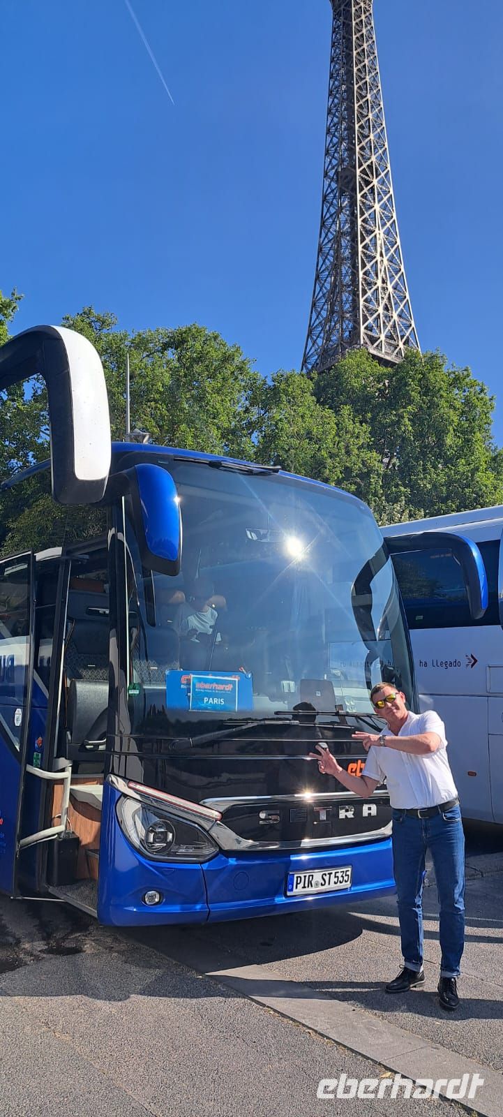 Noch im Morgengrauen stiegen die ersten Fahrgäste in Dresden am Flughafen zu. Doch was für eine Überraschung - eine wahre Eberhardt- Travel Busparade startete gutgelaunt in den Pfingsturlaub. In alle Richtungen sollte es losgehen. Wir waren zeitig vollzählig und rollten überpünktlich auf die Strecke. Unterwegs stiegen weitere Fahrgäste zu. Das Wetter zeigte sich wechselhaft, doch das sollte uns im Bus nicht stören. Für die nächsten Tage war bestes Pfingstwetter für Paris angesagt. Wir kamen gut durch die 1.050 Kilometer, die obligatorische Busverpflegung sollte auch nicht fehlen. Und so stimmten wir uns musikalisch, geschichtlich und vor allem kulturell auf die französische Hauptstadt ein, die wir gegen 21.30 Uhr erreichten. Ein kleiner erster Blick auf die Spitze des Eiffelturmes sollte bei der Anreise nicht fehlen. Wir machten es uns in den großzügigen Zimmern gemütlich, einige zog es sogar noch auf einen kleine Absacker in ein kleines Bistro nebenan, auch die Hotelbar wurde eingeweiht. Die bereits früher angereisten Fluggäste hatten den Tag in Paris schon sehr genossen und die eine oder andere Sehenswürdigkeit besichtigt.