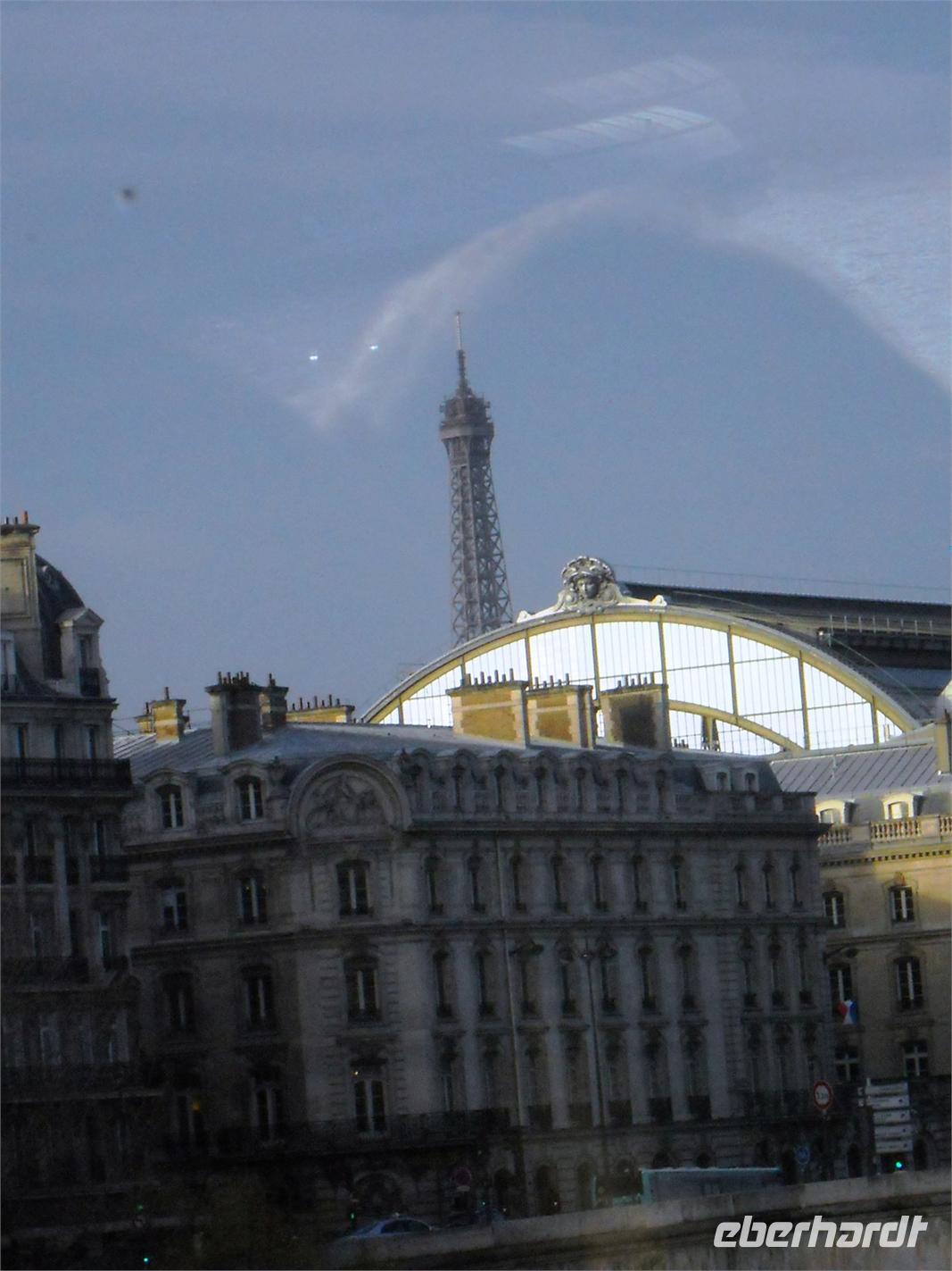 Abends fahren wir stadteinwärts in das Restaurant Grand B, wo wir unser Silvester-Menu genießen: nach einem Apéritif die leckere Vorspeise (ein Lachstartar mit Salat und Brot), dann ein Stück kräutergefüllter Putenrollbraten mit Kartoffeln und haricots verts (grünen Bohnen), ein ausgiebiger Käse-Gang und zum Abschluss ein moelleux au chocolat, ein Schokoladenkuchen, der ein ?weiches Herz? haben muss. So gestärkt geht es jetzt zur Silvester-Lichterfahrt durch Paris. Noch einmal das wunderschön beleuchtete Warenhaus (die Galéries Lafayette), die Garnier-Oper, die weihnachtlichen Lichtdekorationen an den Platanen, der festlich erleuchtete Elysée-Palast, der großzügig angelegte Concorde-Platz ?. Wir fahren auch wieder zum Trocadéro-Platz und machen Halt, um den Blick auf den Eiffelturm zu genießen, der zu jeder vollen Stunde 5 Minuten ?funkelnd? beleuchtet wird. Was für ein Anblick!