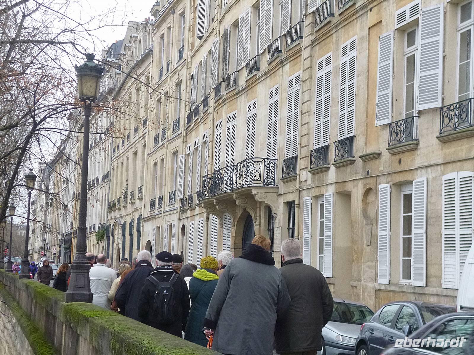Bereits 9.30 Uhr bringt uns unser Bus zurück in die Stadt, die niemals schläft. Nur an diesem Morgen ist alles sehr ruhig. Problemlos und in kürzester Zeit sind wir am Fuße des Eiffelturms, wo unsere Neujahrsfahrt auf der Seine mit dem „Bateau Parisien" beginnt. Es bleibt noch Zeit für einen Fotostopp am Eiffelturm und auch für unser Gruppenfoto, „Ouiiii..!", bevor es „Leinen los!" heißt. Die Bootsfahrt führt uns unter den zahlreichen Brücken entlang der wichtigsten und bekanntesten Sehenswürdigkeiten: dem Grand und Petit Palais, der Nationalversammlung, dem Musée d'Orsay und dem "Musée du Louvre", dem Französischen Institut und natürlich der "Nôtre Dame de Paris". Über die Audioguides hören wir interessante Kommentare und neckische Anekdoten, die von französischen Chansons untermalt werden. Von den Brücken herab winken uns die Passanten zu. Wir fahren um die kleine Insel "St. Louis" schließlich zurück zum Eiffelturm, wo der Bus auf uns wartet. Bevor wir gleich mit Michael, unserem örtlichen Reiseleiter, vor der Kathedrale "Nôtre Dame" verabredet sind, reihen wir uns die Schlange ein, um einen Blick in das Innere dieses Meisterwerks der Gotik zu erlangen. Mittlerweile haben die Touristen ausgeschlafen, die Ruhe von heute Morgen ist vorbei. Michael erklärt uns die Architektur und Geschichte der zum Weltkulturerbe zählenden Kathedrale bevor wir über die kleine Insel "St. Louis" in das Marais-Viertel, das Szeneviertel von Paris, einbiegen. Das Marais gehört zum Kern des alten Paris und zeigt heute noch die prachtvollen Hôtels des Adels sowie kleine alte Handwerkerhäuschen. Unter anderem finden wir hier den schönsten Platz von Paris, den „Place des Vosges", der vor allem durch seine damaligen Anwohner Kardinal Richelieu und Victor Hugo berühmt geworden ist. Durch die Straßen, die geprägt von Cafés, Boutiquen und Galerien sind, laufen wir zurück zum Hôtel de Ville, wo wir erneut unseren Busfahrer treffen, der uns zum nächsten HÖHEpunkt bringt. 54, 55, 56 Etagen und ganz Paris liegt uns zu Füßen. Vom Turm Montparnasse, der mit seinen 209 m das höchste Haus von Paris ist, genießen wir einen 360° Blick über die Stadt der Gegensätze. Als es bereits dunkel wird und nach und nach die Sehenswürdigkeiten erleuchtet werden, stoßen wir mit einem Glas Champagner an. Ein langer Tag, der auf eine kurze Nacht folgte, geht dem Ende zu. Ein Großteil der Gruppe hat die Zeit ebenfalls genutzt, um den kleinen Hunger zu stillen. Nur ein kleiner Teil lässt sich auf der Rückfahrt zum Hotel am „Place de la Nation" absetzen, um noch einmal typisch französisch essen zu gehen. Von Muscheln und Austern über "Tartare", Rumpsteak und Meeresfrüchteplatte, bis hin zur "Crème Brûlé" und zum flambierten Crêpe steht alles auf dem Tisch. Als wir auch die gemeinsame Rechnung erfolgreich bezahlt haben, fahren wir mit der Metro zurück nach Montreuil.