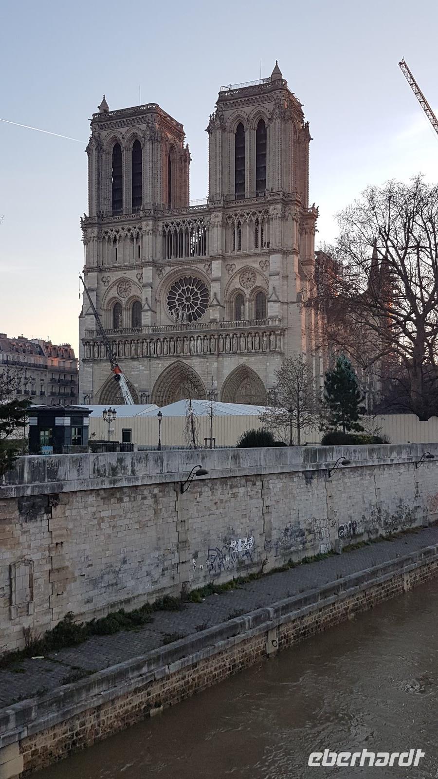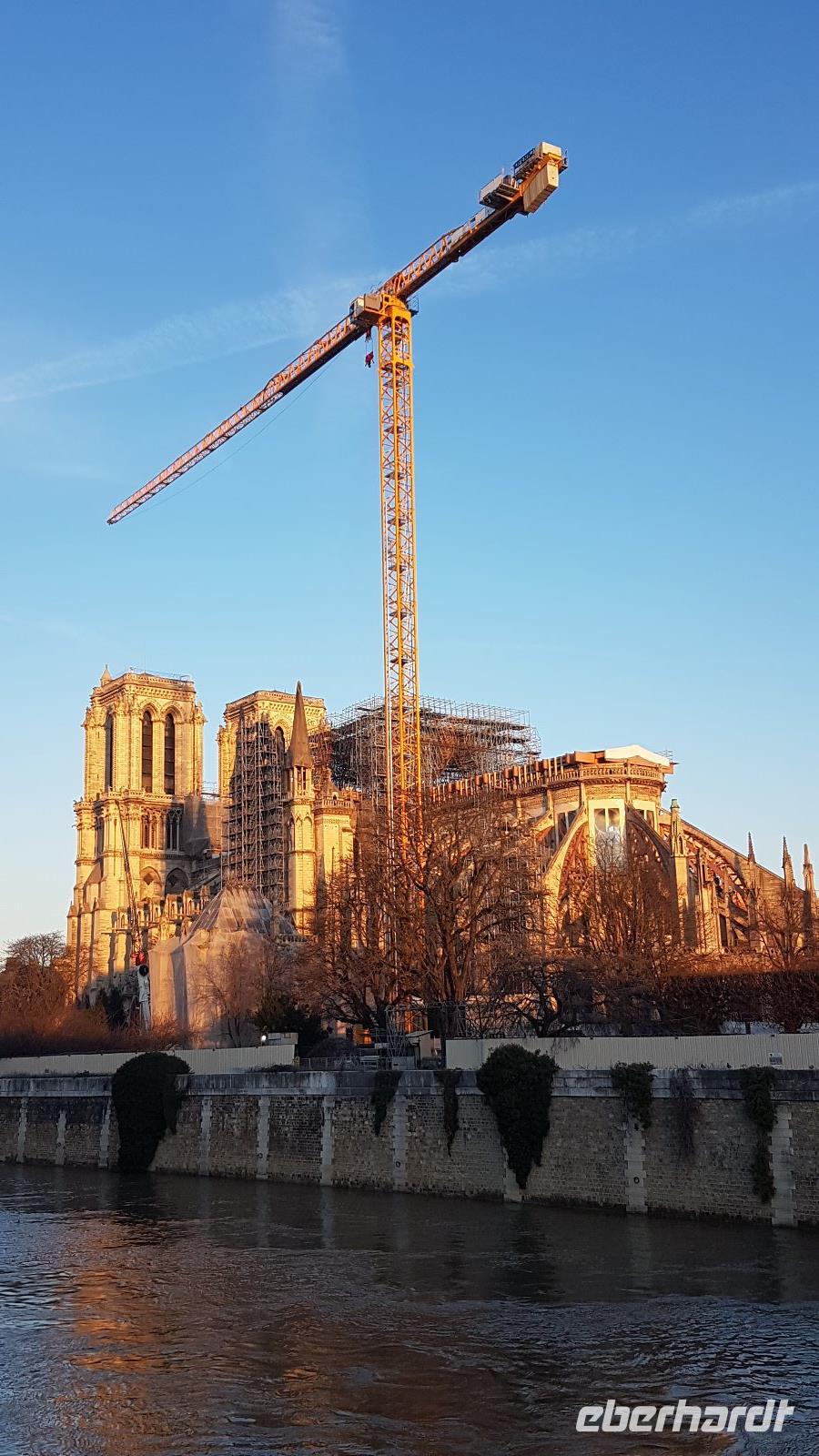 Heute starten wir unseren Bummel am Boulevard Saint-Michel zu Fuß Richtung Seine. Wir sehen die Therme von Cluny, Spuren der römischen Zeit, und die Fontaine Saint-Michel bevor wir am Fluss stehen. Noch sind die meisten "Bouquinistes" (Gebrauchtbücherverkäufer) mit ihren grünen Ständer noch geschlossen. Bald sind wir vor Notre-Dame, nach dem schrecklichen Brand vom 15. April 2019 eine große Baustelle und zur Zeit nicht zugänglich. Das Kirchendach mit dem schönen Vierungsturm gibt es seitdem nicht mehr... Ein Riesenkran vor Ort wird bald das Baugerüst entfernen, ein sehr heikler Einsatz. Die Renovierung wird lange dauern (Präsident Macron hat 5 Jahren veranschlagt). Nach der Insel de la Cité erkunden wir die Insel Saint-Louis, die eine sehr ruhige und exklusive Lage genießt. Anschließend sehen wir die Kirche Saint-Gervais und Saint-Protais (die den Heiligen Gervasius und Protasius gewidmet ist), mit gotischem Kirchenbau und klassizistischer Fassade. Wir bewundern dort die Krippe und die alten und modernen Glasfenster.