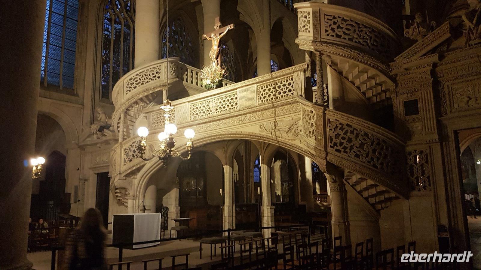 Wir entdecken erst die Sorbonne, ein Monument der ehrwürdigen Universität von Paris (im Jahr 1250 gegründet), dann das Pantheon. Ursprünglich als Kirche konzipiert ist es eine nationale Ruhmeshalle, wo seit der französischen Revolution 74 hochwürdige Franzosen und Französinnen (zum Beispiel Victor Hugo, Alexandre Dumas, Emile Zola und Marie Curie) begraben werden. Dort befindet sich auch das Pendel von Foucault, das die Erdrotation nachweist. Neben dem Pantheon besichtigen wir die Kirche Saint-Etienne du Mont, in welcher sich der einzige Lettner von Paris befindet. Dort ist auch eine Kapelle der Schutzpatronin von Paris, Sainte Geneviève (die heilige Genoveva von Paris) gewidmet, wo ein Teil ihres ursprünglichen Sarkophags aufbewahrt ist.