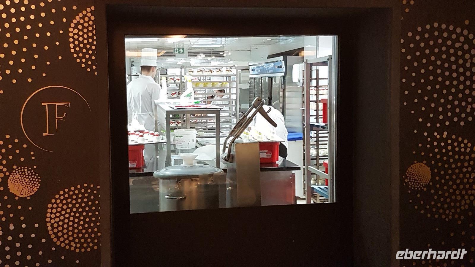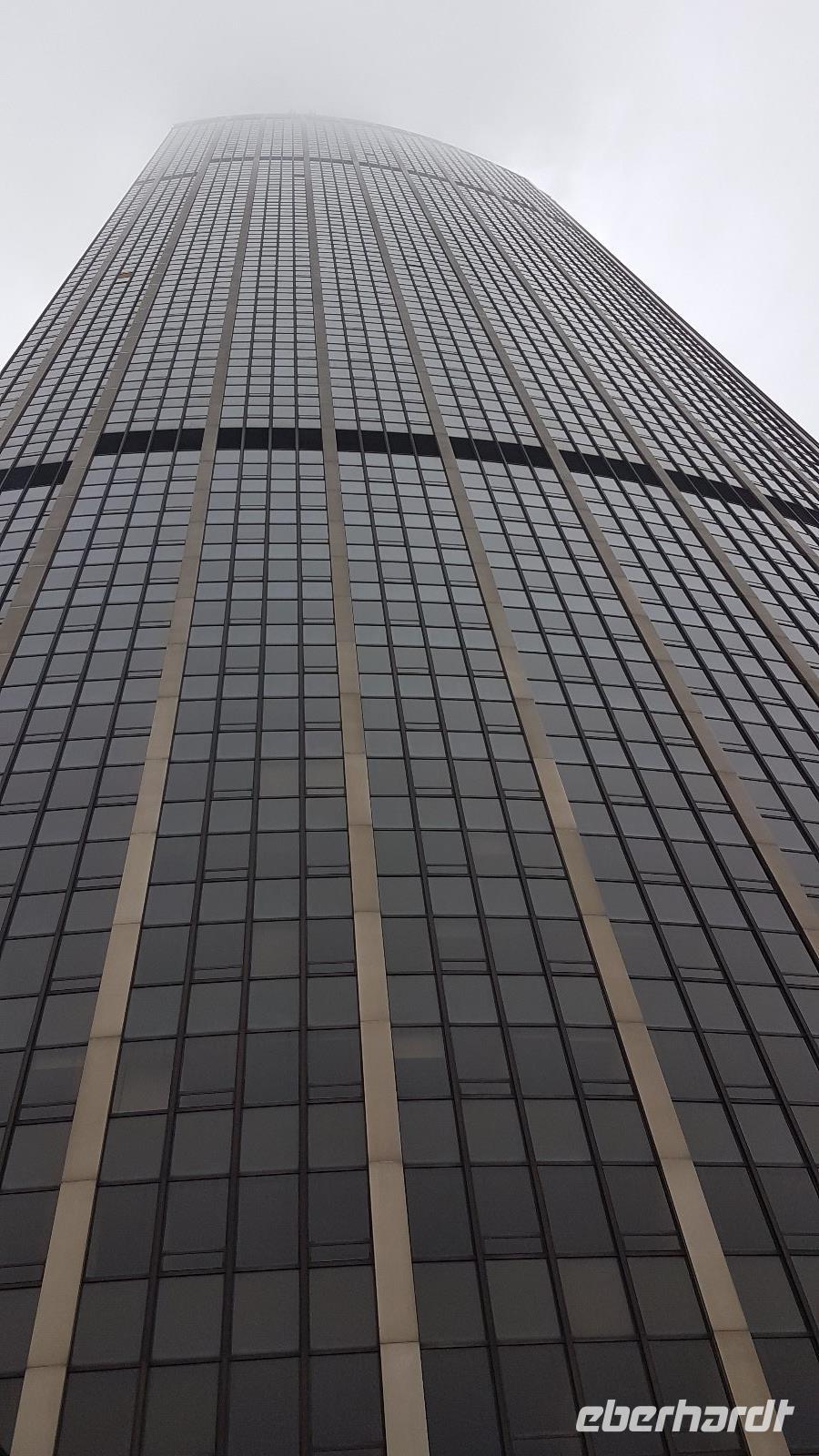 Bald sind wir vor dem Tour Montparnasse, 210 Meter hoch. Mit dem Lift sind wir in 38 Sekunden in 56. Stock, wo wir im Restaurant "Le Ciel de Paris" (Der Himmel von Paris) erwartet sind. Wir bekommen wieder ein sehr gutes Essen, auch wenn wir wegen Nebel die übliche tolle Aussicht nicht genießen können ist die Stimmung sehr gut.