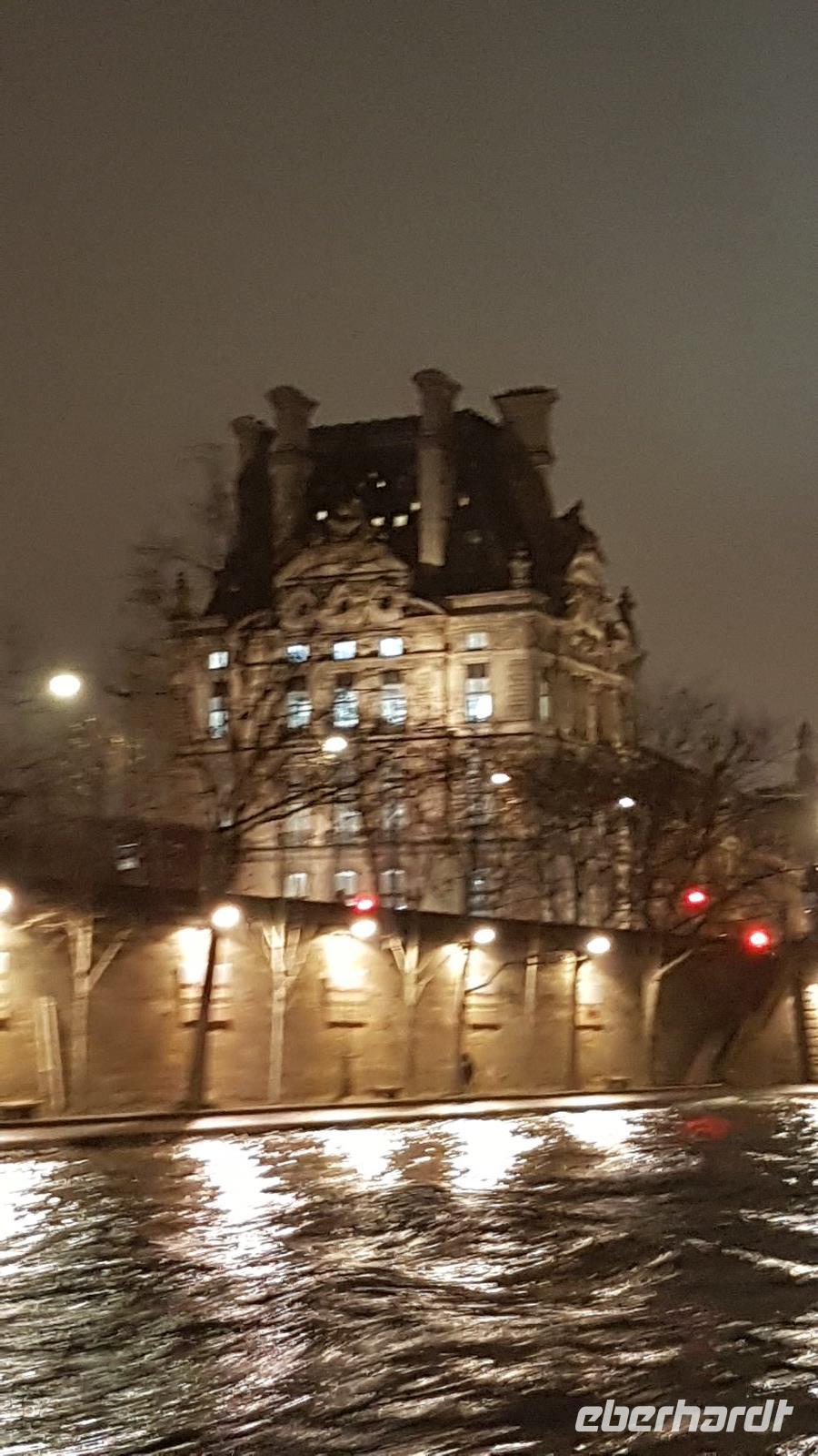 Wir wollen danach unsere Kreuzfahrt-Gutscheine einlösen. Leider gibt es dort eine lange Warteschlange, laut Personal auf 2 Stunden geschätzt...Wir sind schon fast auf dem Rückweg zum Hotel, als ein kooperativer Angestellter von den Bateaux Parisiens uns einen Sondereintritt ermöglicht, und nach 10 Minuten sind wir schon auf dem Boot "Catherine Deneuve". Wir können auf der Strecke Louvre und Musée d´Orsay sehen, kurz vor der Insel der Cité muss auch dieses Boot wegen Hochwasser wieder drehen. Es ist einfach nicht möglich die dortige Brücke zu passieren. Aber wir haben diesmal schon vielmehr als am Vortag in 2019 von Paris vom Wasser aus gesehen!