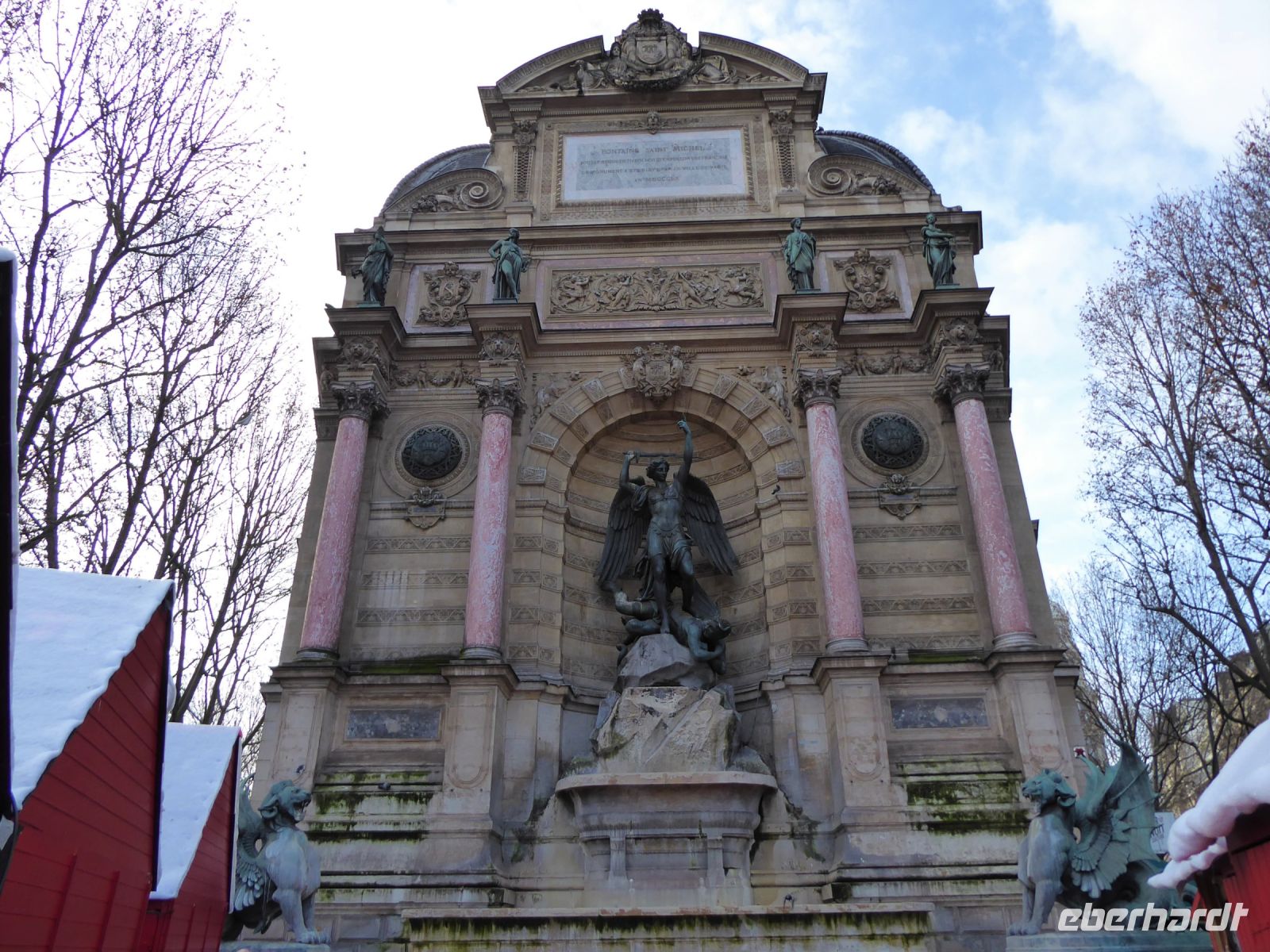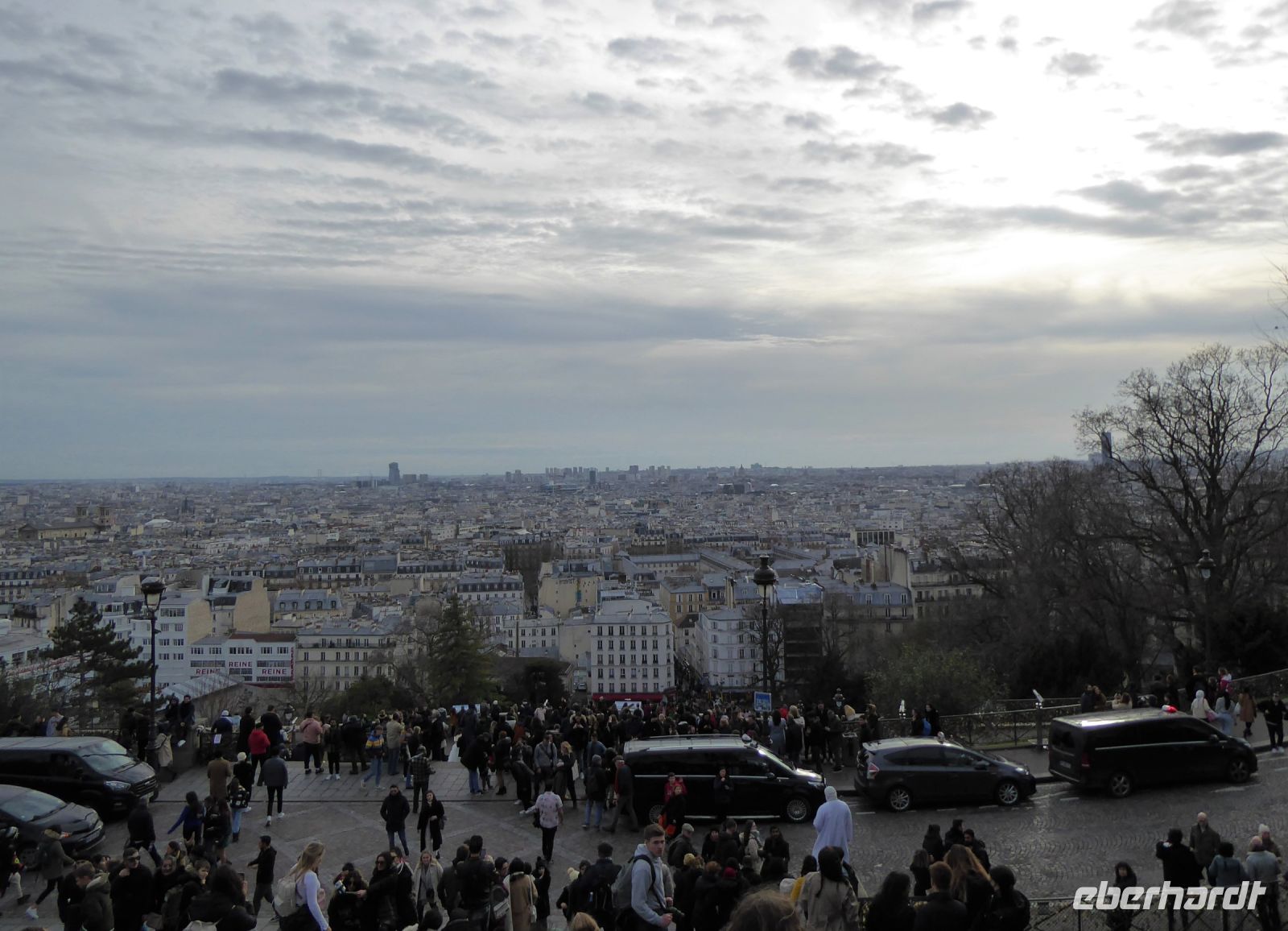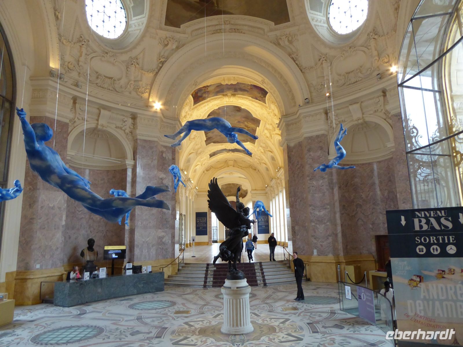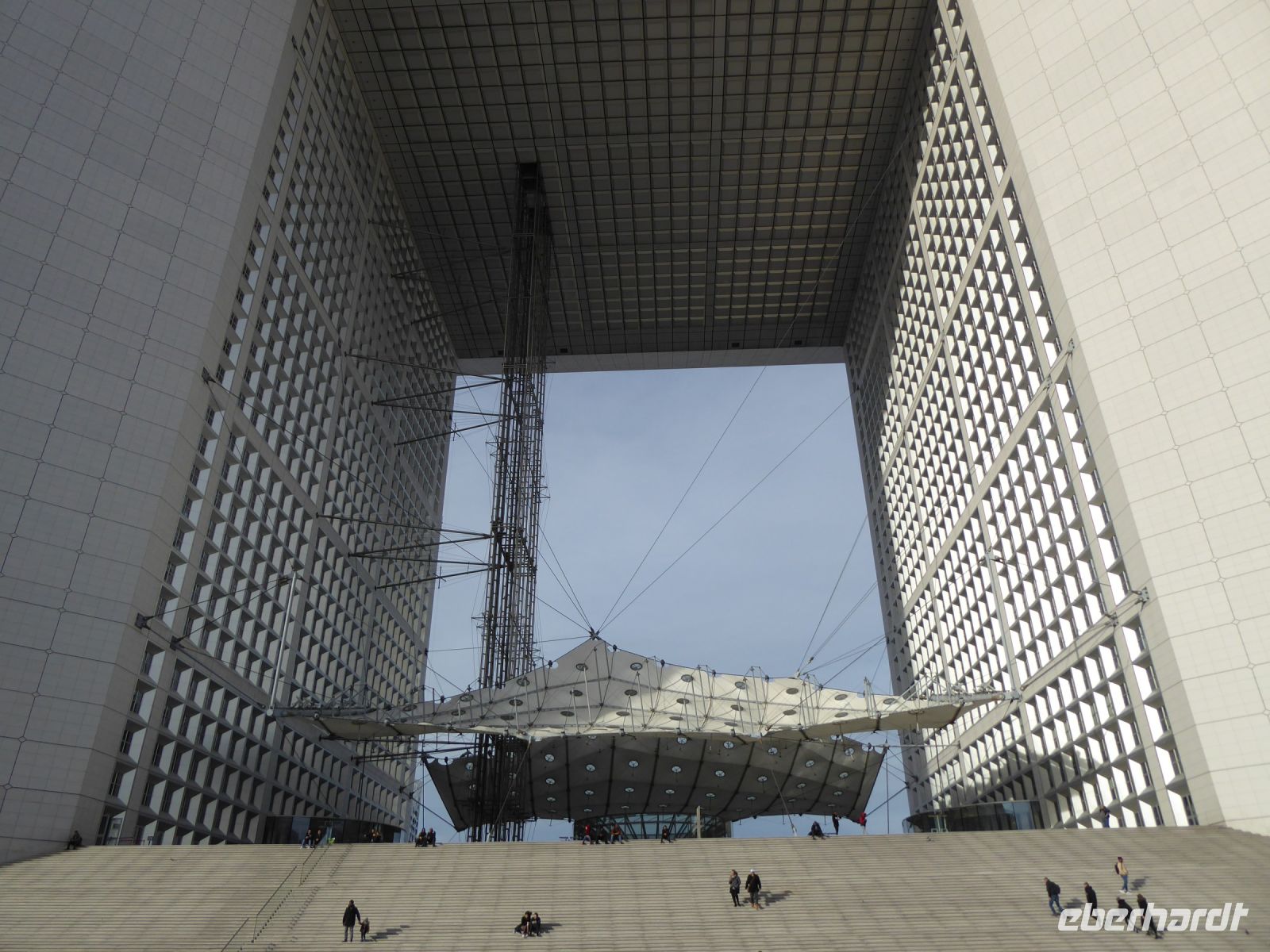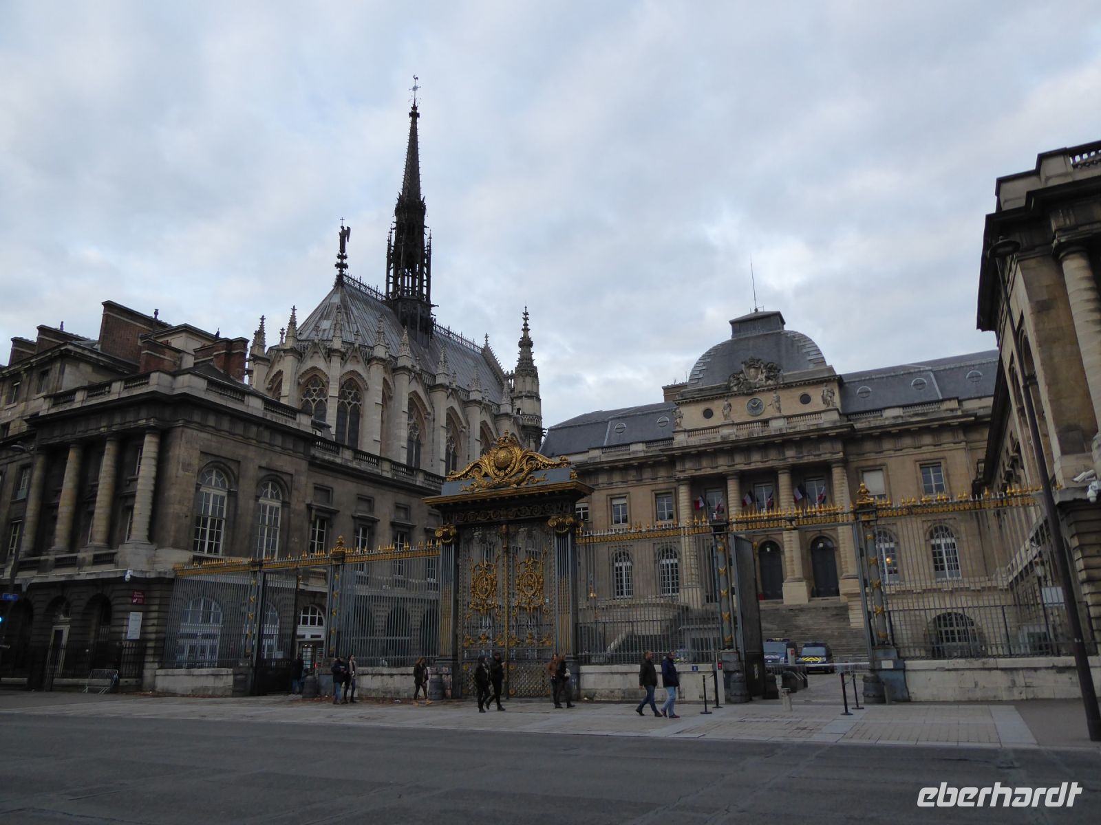 Mit Temperaturen im unteren zweistelligen Bereich war uns das Wetter hold und so begannen wir unseren Besichtigungsrundgang wieder am Boulevard St. Michel, bewunderten die vielen kleinen gepflegten Parkanlagen unterwegs und kamen schließlich wieder an die Seine. Heute Morgen war es noch ruhig an den zu anderen Tageszeiten Menschen überfluteten Plätzen auf der Île de la Cité. Wir ließen die Blicke schweifen und entdeckten dabei auch immer wieder die kleinen witzigen Kunstwerke der Streetart Künstler. Paris ist eine Stadt der Kunst. Überall begegnen dem aufmerksamen Betrachter große und kleine Kunstobjekte aus allen Zeiten. In der Concièrgerie, dem Herzstück des mittelalterlichen Paris, richtete Hugo Capet die königliche Verwaltung ein. Ein Fenster in das Kellergeschoss des gewaltigen Gebäudes gestattete uns einen Blick auf den großen gotischen Festsaal der Palastwachen. Nach der französischen Revolution wurde der mittelalterliche Königspalast umfunktioniert: Er wurde zum Revolutionstribunal und Gefängnis, unter anderem für Marie Antoinette. In der sich gleichwohl in diesem Gebäudekomplex befindlichen Kapelle St. Chapelle, einer der schönsten gotischen Kirchen, gebaut um die von Ludwig IX nach Paris verbrachten Christus Reliquien zu bergen, betete Marie Antoinette den letzten Rosenkranz, bevor sie im Oktober 1793 zur Guillotine auf der Place de la Concorde geführt wurde. Über die Brücke der Geldwechsler, Pont au Change, gelangten wir auf das rechte Ufer der Seine, Rive Droite und überquerten die belebte Place du Châtelet. Dort, wo im Mittelalter zwei Befestigungen die Brücke über die Seine sicherten, stehen heute zwei imposante Theatergebäude. Ein goldener Friedensengel segnet hoch über den Köpfen die durcheilenden Massen. Mit dem Bus gelangen wir schnell entlang der Rue Rivoli über die Place de la Concorde zur Brücke Pont Alexandre III. Von dort hat man den schönsten Blick auf den Invalidendom, in dem sich das Grabmal Napoleons befindet: ein Muss für einen ersten Besuch in Paris, wie auch der Blick auf den Eiffelturm mit der Seine im Vordergrund. Im Petit Palais ließen wir uns von den großformatigen Ölgemälden in die nicht immer so gloriose Vergangenheit der Stadt Paris entführen. Die Bilder zeigen das einfache, ja armselige Leben der Wäscherinnen, der Marktleute, Arbeiter und Schausteller am Ende des 19. Jahrhunderts sowie Szenen aus dem bürgerlichen Leben der sogenannten Belle Époche. Hier befindet sich auch das Modell der Bronzestatue des französischen Bildhauers Louis-Ernest Barrias, La Défense, die Verteidigung, die dem modernen Geschäfts- und Hochhausviertel von Paris seinen Namen gab. Lange bevor das Viertel, am Rand von Paris gelegen, ein Mekka aktueller Hochhausarchitektur und Kunst wurde, stand hier diese Skulptur, die zu Ehren der Verteidigung der Stadt Paris nach dem Französisch – Deutschen Krieg 1870/71 errichtet wurde. Mit der Metrolinie 1, die in La Défense endet, kamen wir schnell an unser Ziel: La Grande Arche, der große Bogen, in La Défense. Das Gebäude aus dem Jahr 1989 ist ein Meisterwerk des dänischen Architekten Johan Otto von Spreckelsen, der mit der Neuinterpretation eines Triumphbogen die historische Achse in der Ära Mitterand vollendet hat. Verlockt durch ein günstiges Angebot entschieden wir uns die Stadt von oben anzuschauen und fuhren bequem mit dem Aufzug auf die wahrlich luftige Höhe von knapp 111 Metern nach oben zur Aussichtsplattform. Ganz Paris lag uns so am letzten Tag des Jahres zu Füßen!