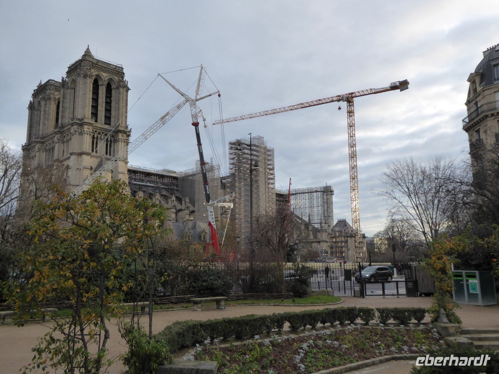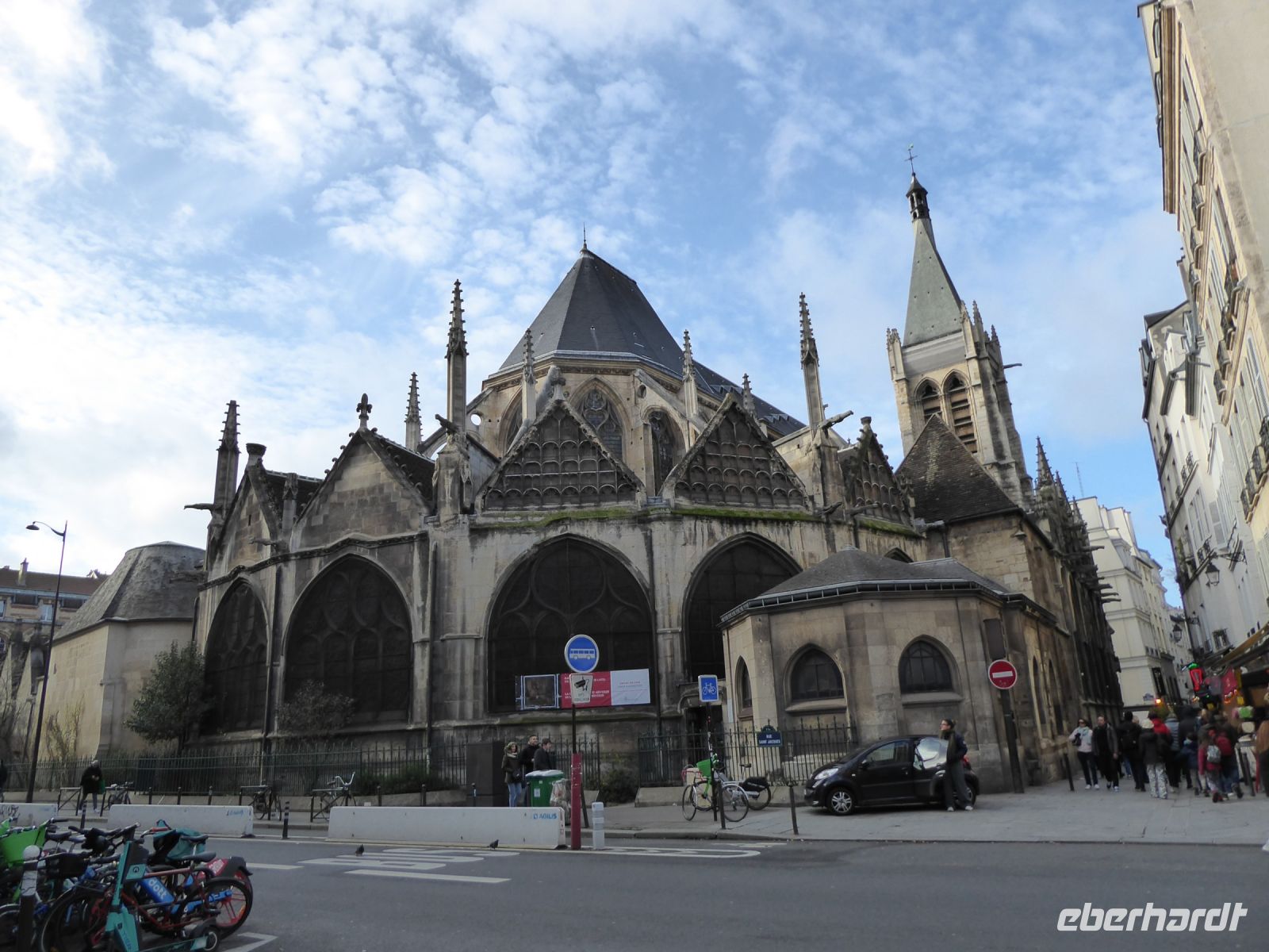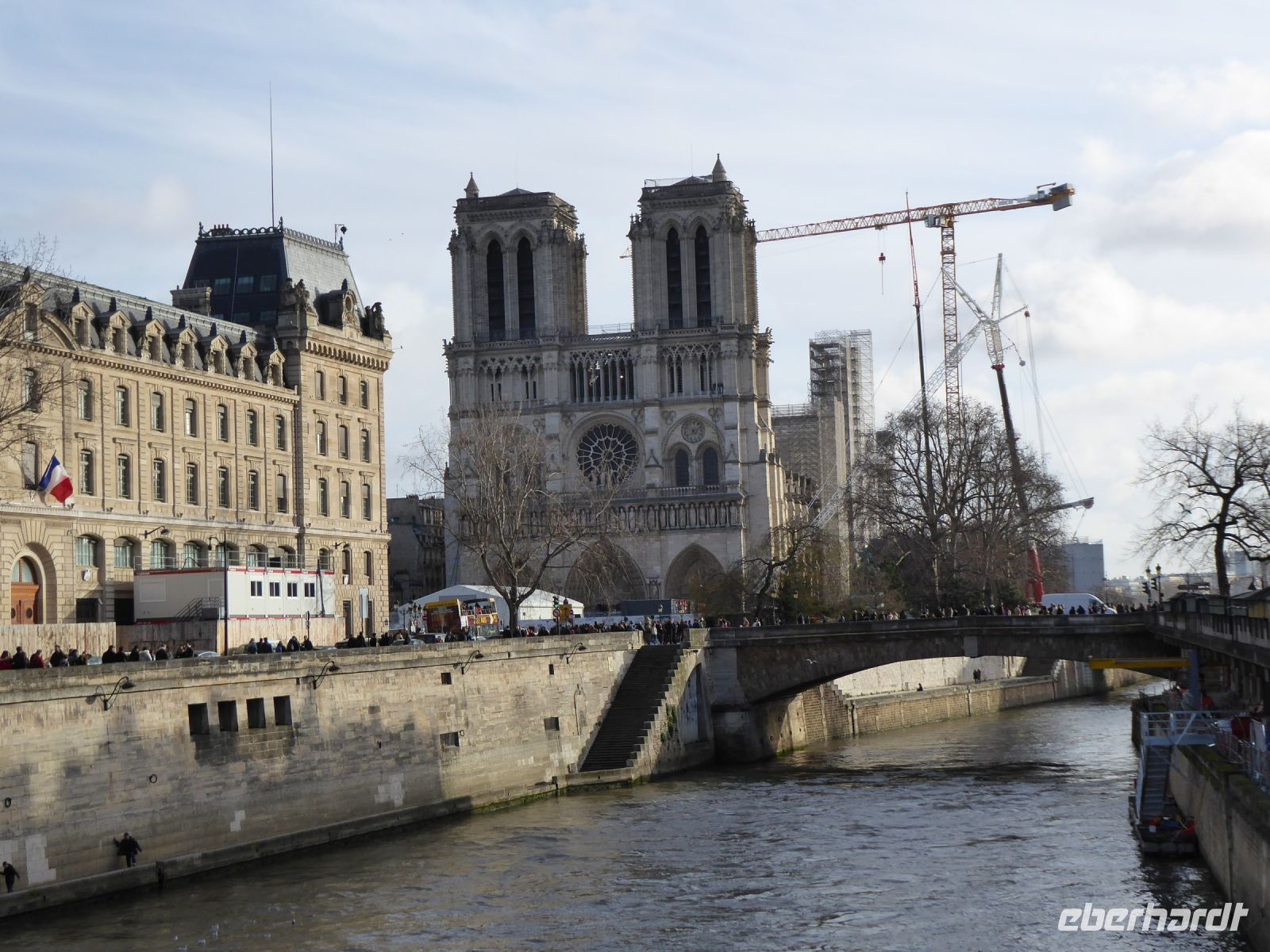 Gerade mal zwei Stunden ist man mit dem TGV oder dem ICE von Saarbrücken nach Paris unterwegs und so ist unsere erste Reisegästin aus dem Saarland, die gemeinsam mit mir, Gabriele, ihrer Reiseleitung für die kommenden Tage, angereist war, schon am späten Vormittag in unserem gemütlichen Boutique Hotel St. Paul Rive Gauche eingetroffen. Das herrliche Wetter lockte uns gleich wieder nach draußen. Wir spazierten durch die belebten Straßen des 6. Arrondissement hinunter zur Seine und warfen einen ersten Blick auf Nôtre-Dame. Vor der Fontaine Saint Michel war ein kleiner Weihnachtsmarkt aufgebaut. In den roten Hütten lockten verführerische Angebote. Doch zuerst mussten noch die Métro Tickets gekauft und die Reservierung in unserem Restaurant für den heutigen Abend bestätigt werden. Zum Jahresende kommen Tausende Touristen aus aller Welt nach Paris und so sind nicht nur die Straßen und Plätze voller Menschen, sondern auch die Lokale und Cafés. In Erwartung unserer Fluggäste, die mit der Air France von Berlin aus anreisten, kehrten wir in einem winzigen Lokal, Le Fournil, am Ende unserer Straße ein. Wenige Minuten nachdem eine leckere, echt bretonische Galette vor uns stand, klingelte auch schon das Telefon: das Hotel vermeldete die Ankunft unsere ersten Fluggäste. Da auch sie, nach einem sehr frühen Frühstück, ein Hungergefühl hatten, entschieden wir kurzerhand, in den kleinen Imbiss zurückzukehren. Gestärkt mit den typischen, aus Buchweizenmehl hergestellten kräftigen Galettes, machten wir uns dann das schöne Wetter zu Nutze und spazierten gemeinsam den Boulevard St. Michel hinunter, vorbei an den Resten einer antiken römischen Thermenanlage, über der die Mönche aus Cluny ihren prächtigen Stadtsitz errichtet hatten, ins belebte Quartier Latin. In einer der engen Gassen bewunderten wir die leckeren Angebote in einer Pâtisserie sowie die vor den Restaurants ausgestellten Meeresfrüchte und statteten der Kirche St.Severin mit ihren wunderschönen modernen Glasfenstern einen kurzen Besuch ab. Vorbei am Theater La Huchette und der legendären Buchhandlung Shakespeare & Company erreichten wir den kleinen Park Viviani, in dem der älteste Baum von Paris zu bewundern ist. Dieser sei im Jahr 1601 von Jean Robin, dem Hofgärtner Heinrichs IV gepflanzt worden. Zu dessen Ehre wurde danach die Baumart `Robinie´ genannt. Von hier aus hat man die schönste Aussicht auf die Kathedrale Nôtre-Dame de Paris, deren beiden imposanten Türme 69 Meter in die Höhe ragen. Der für die Kirche charakteristische, fast 100 Meter hohe Dachreiter, la flêche, wurde nach 160 Jahren, bei dem verheerenden Brand in der Osternacht 2019 ein Raub der Flammen. Die Restaurierungsarbeiten an dem Gotteshaus gehen zügig voran, soll doch die Kathedrale mit dem Beginn der Olympischen Spiele in Paris wieder in alter Pracht erstrahlen. Wir bummelten entlang der Ufermauern der Seine vorbei an den prall mit Büchern und allerlei Krimskrams gefüllten grünen Verkaufsboxen der Bouquinistes und stöberten in den verlockenden Angeboten. Auf der Spitze der Île de la Cité befindet sich seit 1962 das Mémorial des Martyrs de la Déportation, eine bedrückende Anlage, die auf das Schicksal zig Tausender Opfer der Nazizeit aufmerksam macht. Auf einer der zahlreichen Brücken genossen wir den Blick auf die sonnenbeschienenen Häuserfassaden des Rive Droite, dem rechten Ufer der Seine mit seinen imposanten Gebäuden: dem Rathaus von Paris, dem Tour St. Jacques und den beiden Theaterbauten an der Place du Châtelet. Zurück im Hotel blieb uns nach dem Check-in noch ein wenig Zeit zum Ausruhen, bevor wir uns auf den Weg ins Restaurant ´Le Procope`, einem der ältesten Restaurants der Welt, machten. Mit einem leckeren Kir überbrückten wir die Zeit, bis auch unsere letzten Gäste, deren Flug noch mit einer extra Stunde Verspätung aufwartete, endlich ihr Ziel erreichten. Nun war unsere Reisegruppe mit insgesamt acht Personen komplett. Und dort, wo einst Philosophen, Politiker und Künstler über Gott und die Welt diskutierten, genossen wir, gemäß der Geschichte des Lokals, das `Menu Philosophe`. Wir ließen uns getrüffelte Champignoncrème, Enten Pâté, Kabeljau in Chablis Sauce und zum Dessert Baba au Rhum oder Panna cotta aux Mirabelles schmecken.