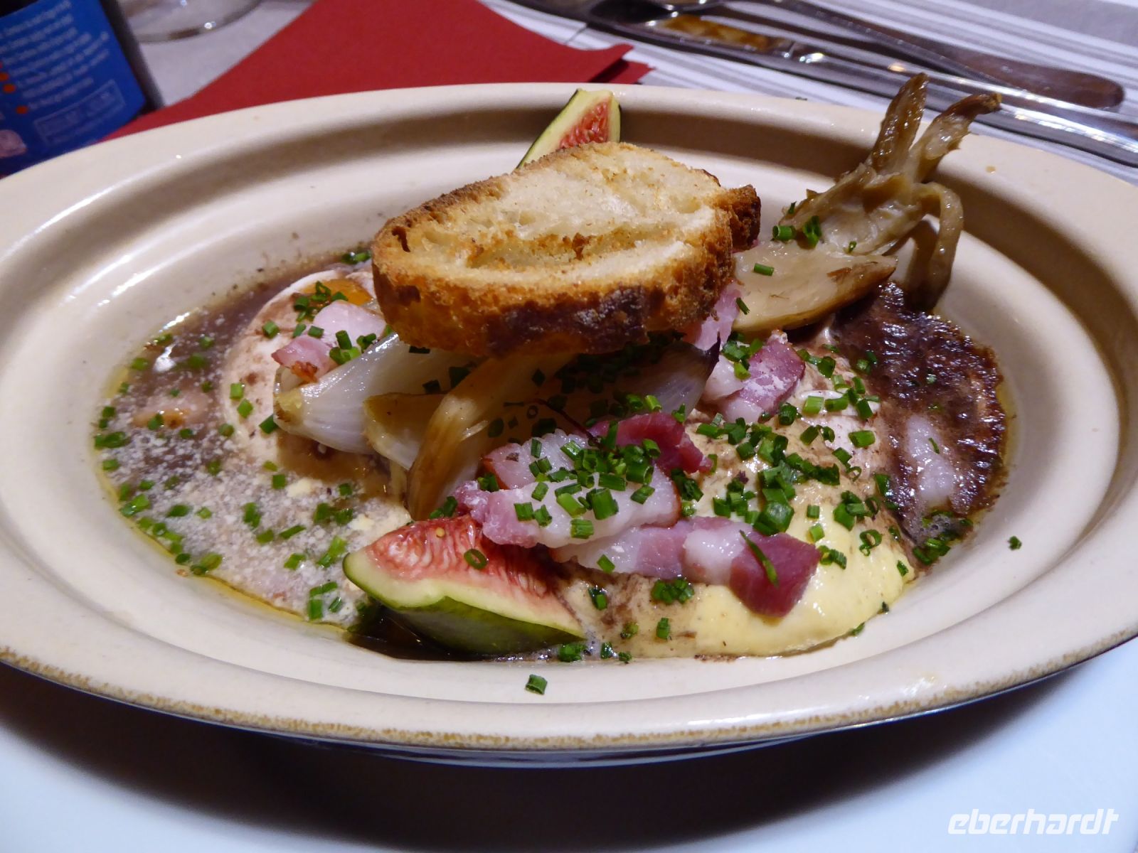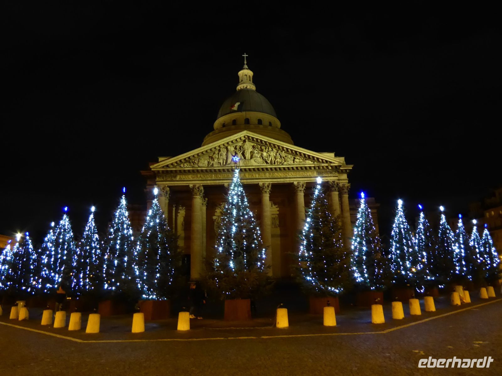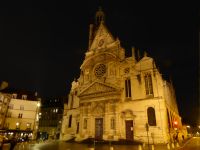 Doch unser Tag war noch nicht zu Ende. Am frühen Abend trafen wir uns wieder für einen Abendspaziergang, vorbei an der Sorbonne, der ehrwürdigen Universität, dem Pantheon, der Ruhmeshalle berühmter französischer Frauen und Männer und der berühmten Kirche St. Étienne du Mont, in der die Reliquien der Heiligen Genoveva, der Schutzpatronin der Stadt, liegen. Alle Gebäude waren hell beleuchtet und hoben sich vom Schwarz des Himmels ab. Wenige Schritte hinter diesem ehrwürdigen Ensemble befindet sich die enge mittelalterliche Straße Rue Mouffetard mit einer Vielzahl kleiner gemütlicher Restaurants. Der gute Vorsatz im neuen Jahr weniger zu essen wurde auf eine harte Probe gestellt: im Vieux Bistrot warteten die Kellner mit original französischen Köstlichkeiten auf. Feine Gänseleberpastete, Schnecken in Knoblauchsauce, warmer Ziegenkäse, Pasteten und andere Leckereien. Jetzt oder nie, bei unserem letzten gemeinsamen Abendessen fielen die Schranken, jede und jeder probierten sich mutig durch die authentische französische Küche!