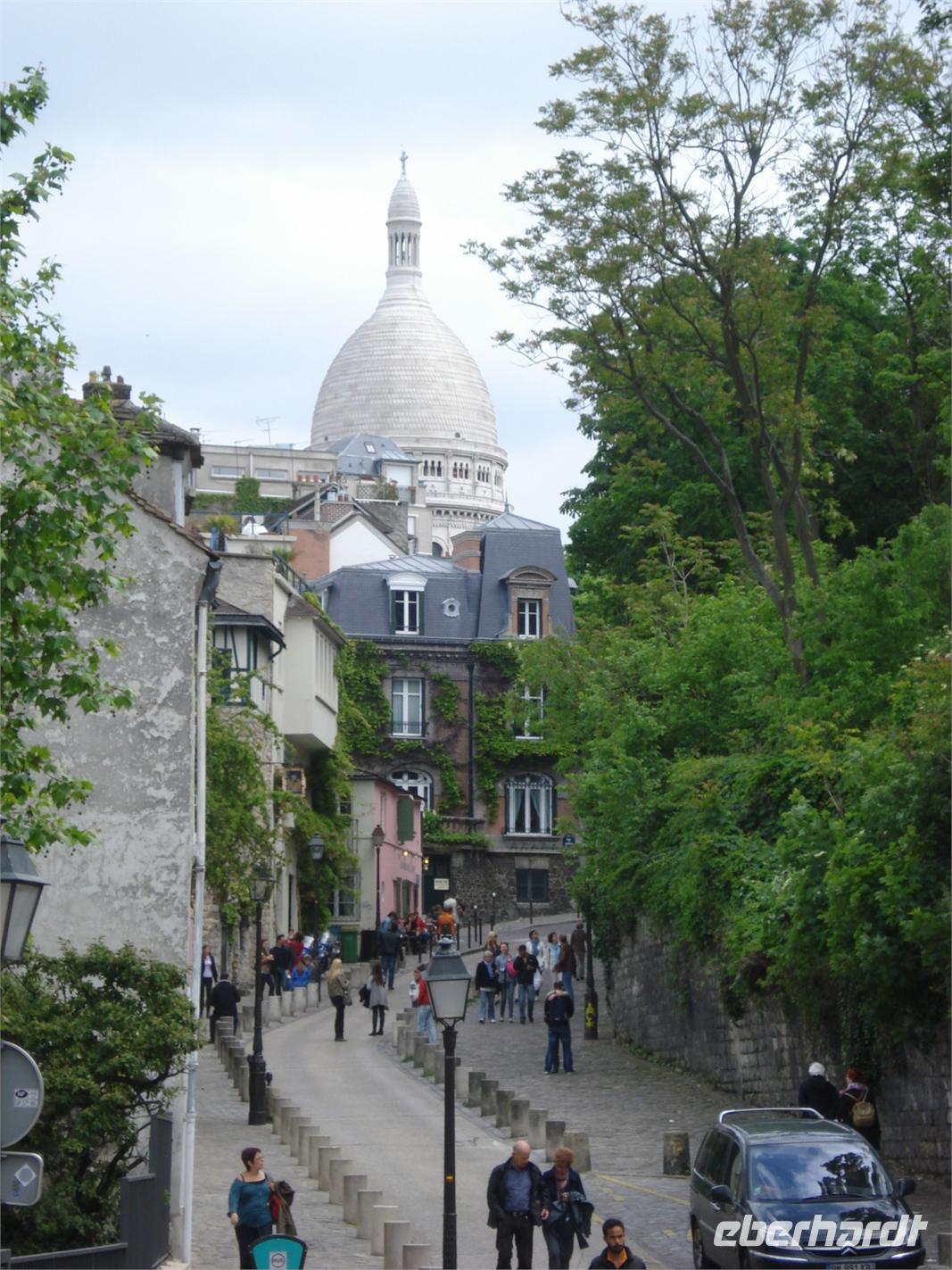 Ausgeruht und gestärkt durch ein recht reichhaltiges Frühstück - für französische Verhältnisse - starteten wir mit unserem örtlichen Reiseleiter Michael Schramm die Stadtrundfahrt. Er zeigte uns seine Wahlheimat mit viel Herzblut und Witz und malte seine interessante Stadtführung mit sehr vielen kleinen Geschichten aus. Am Palais du Luxembourg legten wir unseren ersten Stopp ein. Ein kleiner Bummel durch den Garten mit seinen alten Bäumen und Springbrunnen erfreute früher schon unzählige Maler und Schriftsteller und heute uns. Der Park gehört zum Palais du Luxembourg, der 1627 als Refugium für die Witwe Heinrichs IV., Maria von Medici, vollendet wurde. Die aber konnte hier nur fünf Jahre wohnen - dann verwies Kardinal Richelieu sie des Landes. Nach der Revolution wurde die königliche Residenz zum Gefängnis umfunktioniert und seit 1879 ist der Palast Sitz des französischen Senats. Die Freiheitsstatue von Bartoldi blieb uns leider auf Grund von Restaurierungsarbeiten verwehrt. Unsere Rundfahrt setzten wir fort und sahen die Flaniermeile Champs-Elysees, die Prachtbauten entlang des Seineufers, den Triumphbogen, den Invalidendom sowie das Grand und Petit Palais. Am Triumphbogen zeigte uns Michael einen sehr wichtigen Namen unter den Schlachten Napoleons - Schramm - qui, qui mon General Schramm! Vom Trocadero genossen wir einen atemberaubenden Blick auf den Eiffelturm. Die Stadtrundfahrt endete am Fusse des Montmartre. In den zahlreichen kleinen Cafes hatten wir genügend Zeit uns zu stärken. Am Nachmittag erkundeten wir zu Fuß den Montmartre Hügel. Dieser Stadtteil hat heute noch dörflichen Charakter. Er liegt auf einer sanften Erhebung (La Butte). Seinen Namen erhielt er von einem des Götterboten Merkur geweihten Tempel. Erst die frühen Christen nannten ihn „Berg der Märtyrer“, nach dem Martyrium des heiligen Dionysos, dem ersten Bischof von Paris. Im 19. Jahrhundert wurde es zum Mekka für Maler, Schriftsteller, Dichter und Musiker, die sich der Atmosphäre des Cabarets und Tanzlokale angezogen fühlten. Vorbei an Künstlerhäusern, dem Haus der Sängerin Dalida sowie einer der noch erhaltenen Windmühlen erreichten wir die Basilika Sacre Coeur. Als Wahrzeichen des ganzen Viertels erhebt sich ihre große weiße Kuppel mit einem Turm, der eine der schwersten Glocken der Welt trägt über das Häusermeer der Metropole. Im Deutsch-Französischen Krieg von 1870/71, der mit der demütigenden Niederlage des Kaiserreiches endete, wurde der Bau einer dem Herzen Jesu geweihten Kirche der Unsterblichkeit Frankreichs und seines katholischen Glaubens gelobt. Anschließend nutzten wir die Zeit, um uns ins Getümmel auf dem Place du Tertre zu begeben.