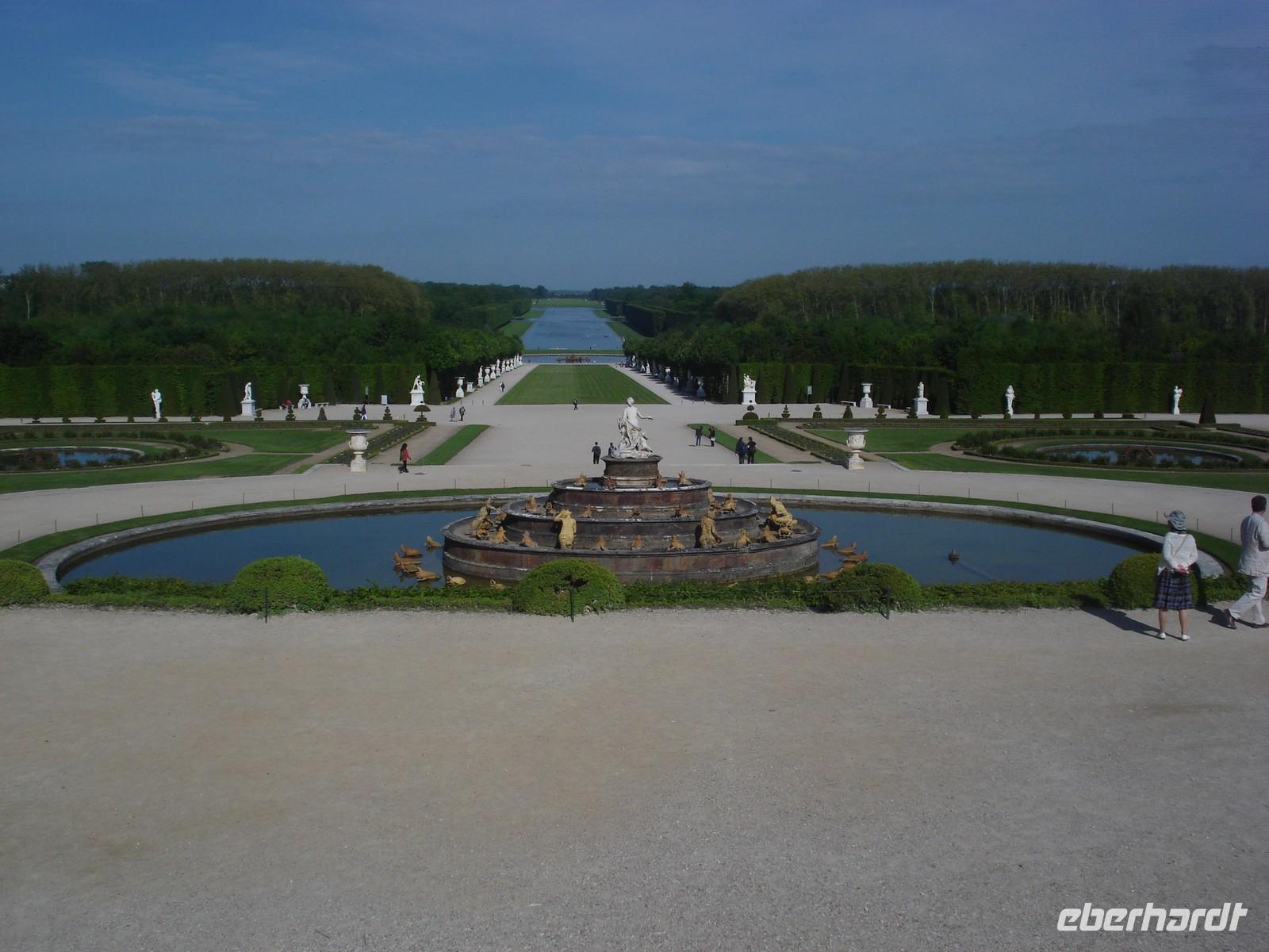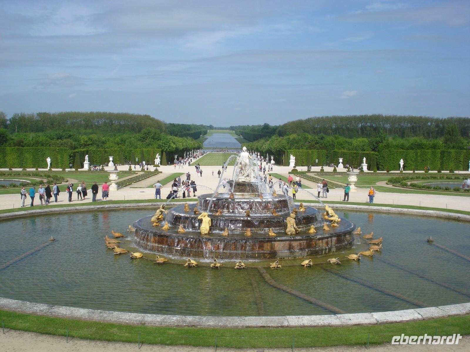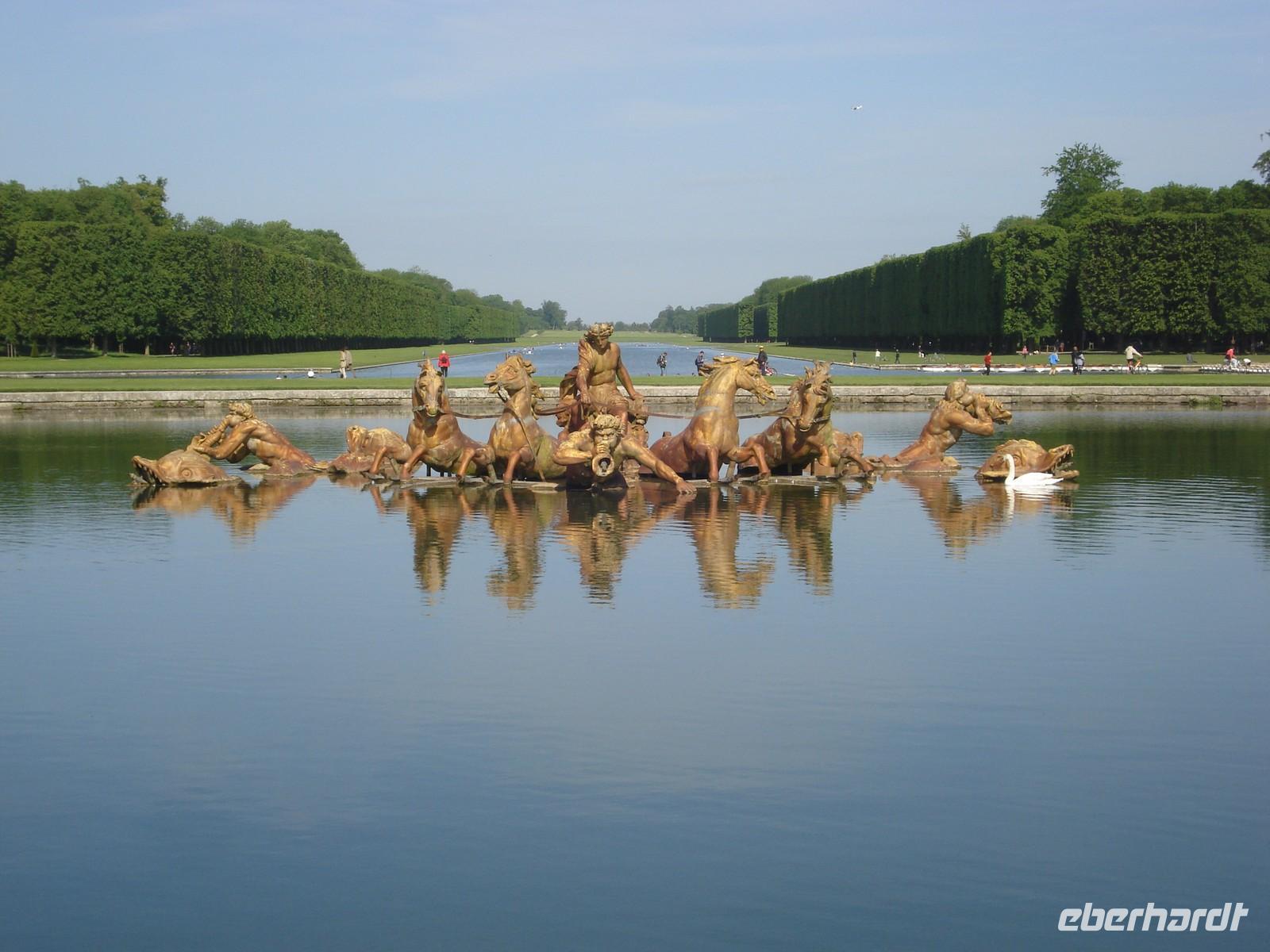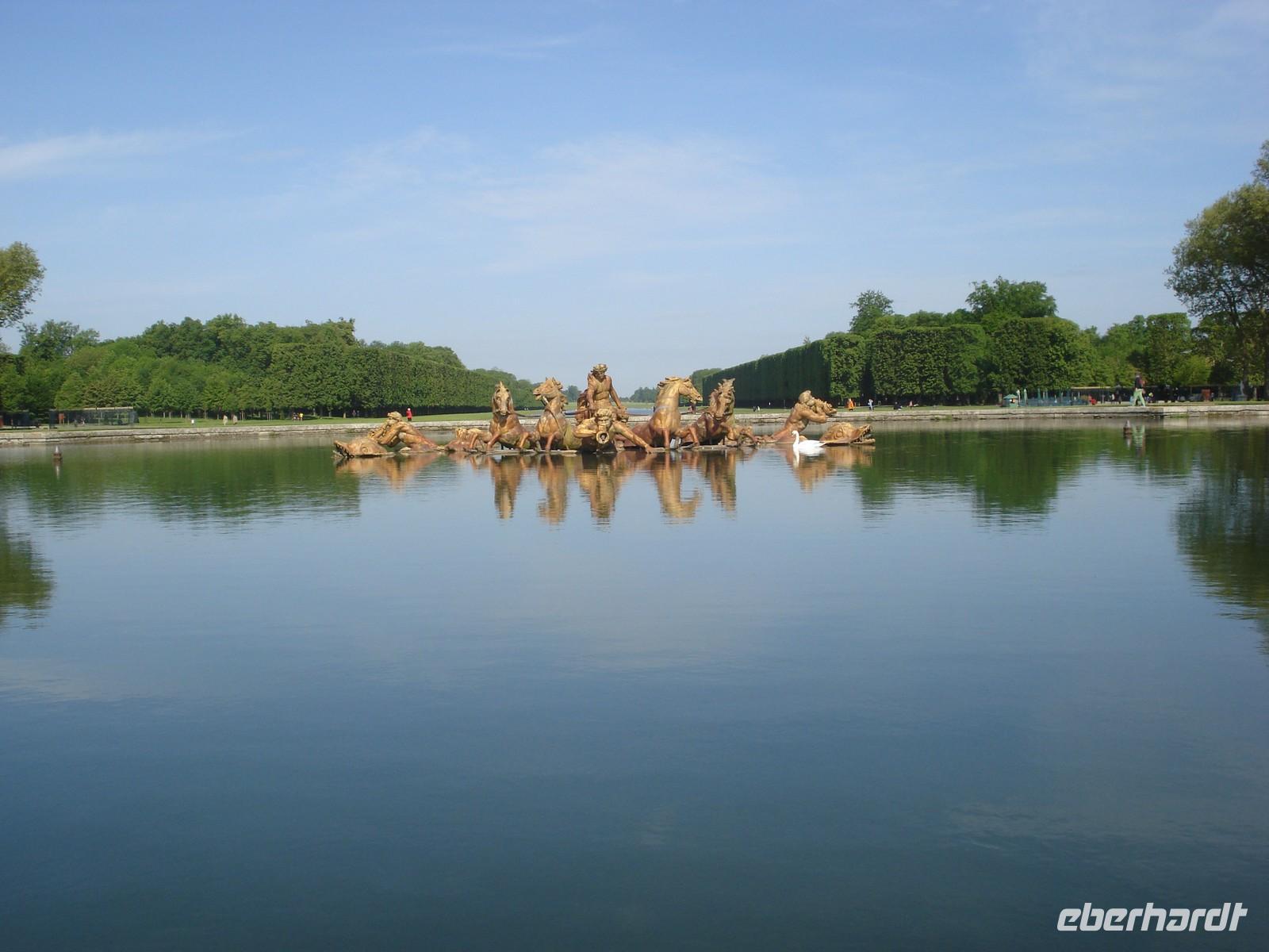 Die Gärten von Versailles sind genauso prachtvoll und überlegt geplant wie das Innere des Schlosses. Überall stößt man auf Skulpturen, künstliche See und Teiche sowie Kolonnaden. Die zahlreichen Brunnen wurden zum Leben erweckt während der Musikalischen Festspiele. Man glaubt hinter jeder Hecke sitzt ein kleines Orchester und spielt die schönsten Melodien, die zum verweilen und genießen einladen. Den Park schmücken 15000 Blütenpflanzen sowie über 3000 Büsche und Sträucher sowie 50 Springbrunnen.