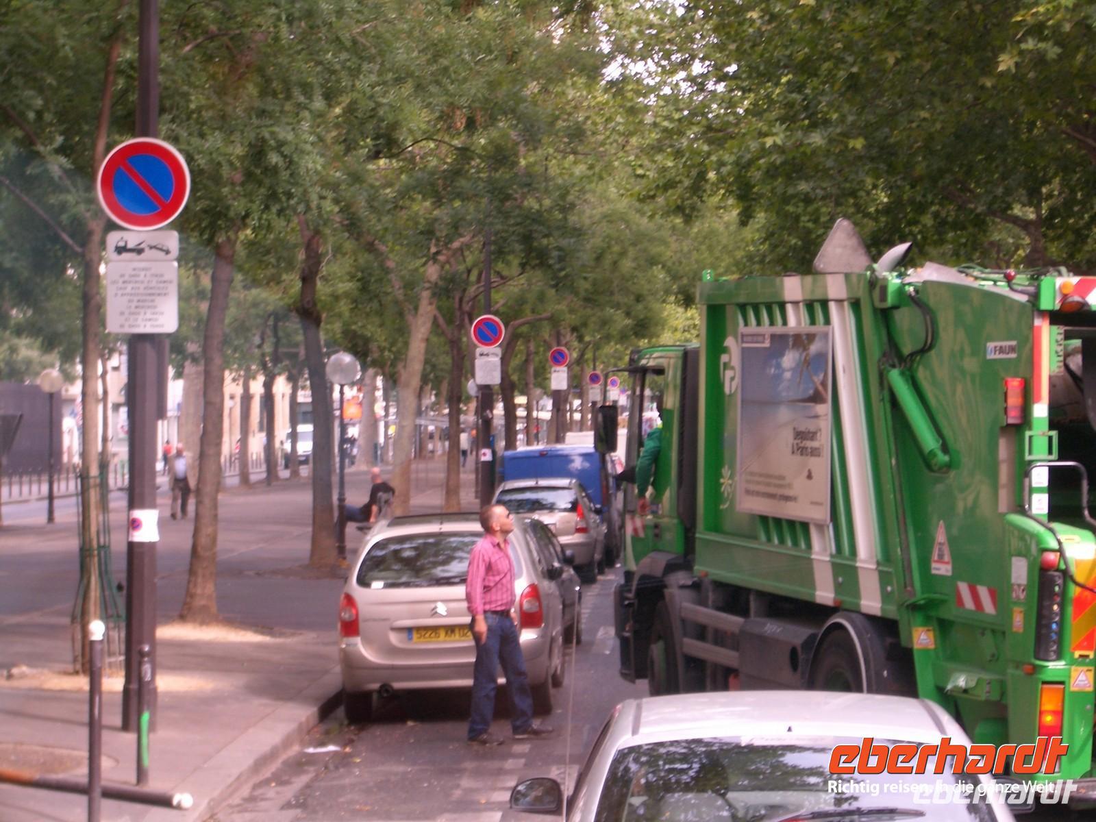 und alles einsammelt. Auf unserer Fahrt zum Montmartre-Sparziergang fanden wir uns auf einmal hinter so einem Müllauto. Aber Francois wusste Abhilfe: Er stieg kurzerhand aus, verhandelte mit dem Müllfahrer über unser Weiterkommen und schon fuhr er ein Stück an die Seite, damit wir vorbei konnten.