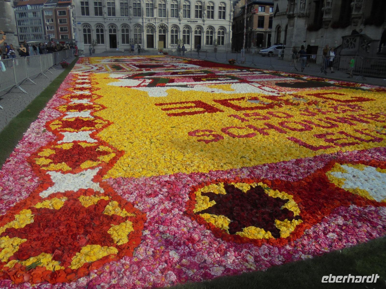 Eine kleine Überraschung erwartete uns außerdem noch - auf dem Markt gab es einen riesigen Blumenteppich in leuchtenden Farben, veranstaltet von verschiedenen Betrieben der Begonienzüchter, von denen es rund um Leuven die größte Häufung in Europa gibt.