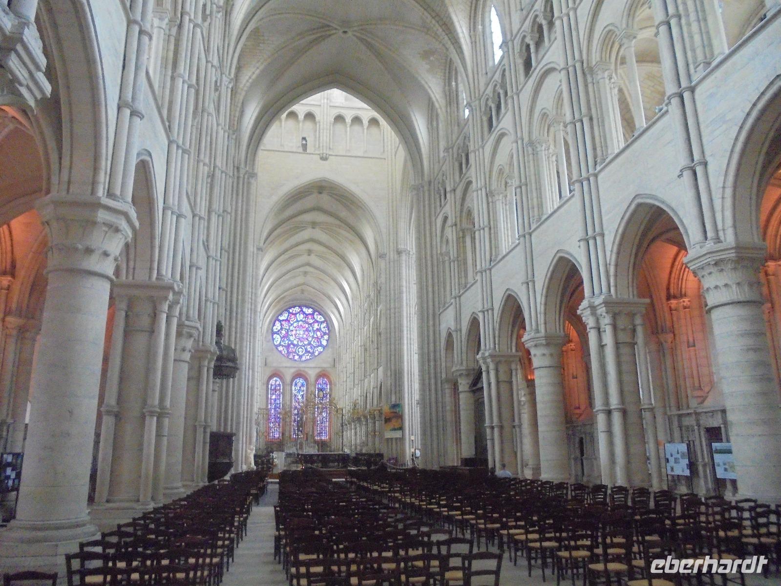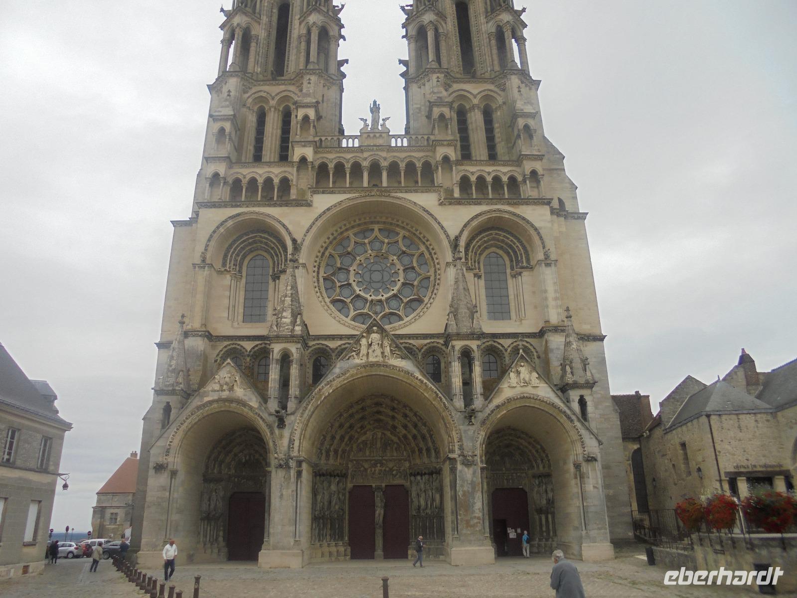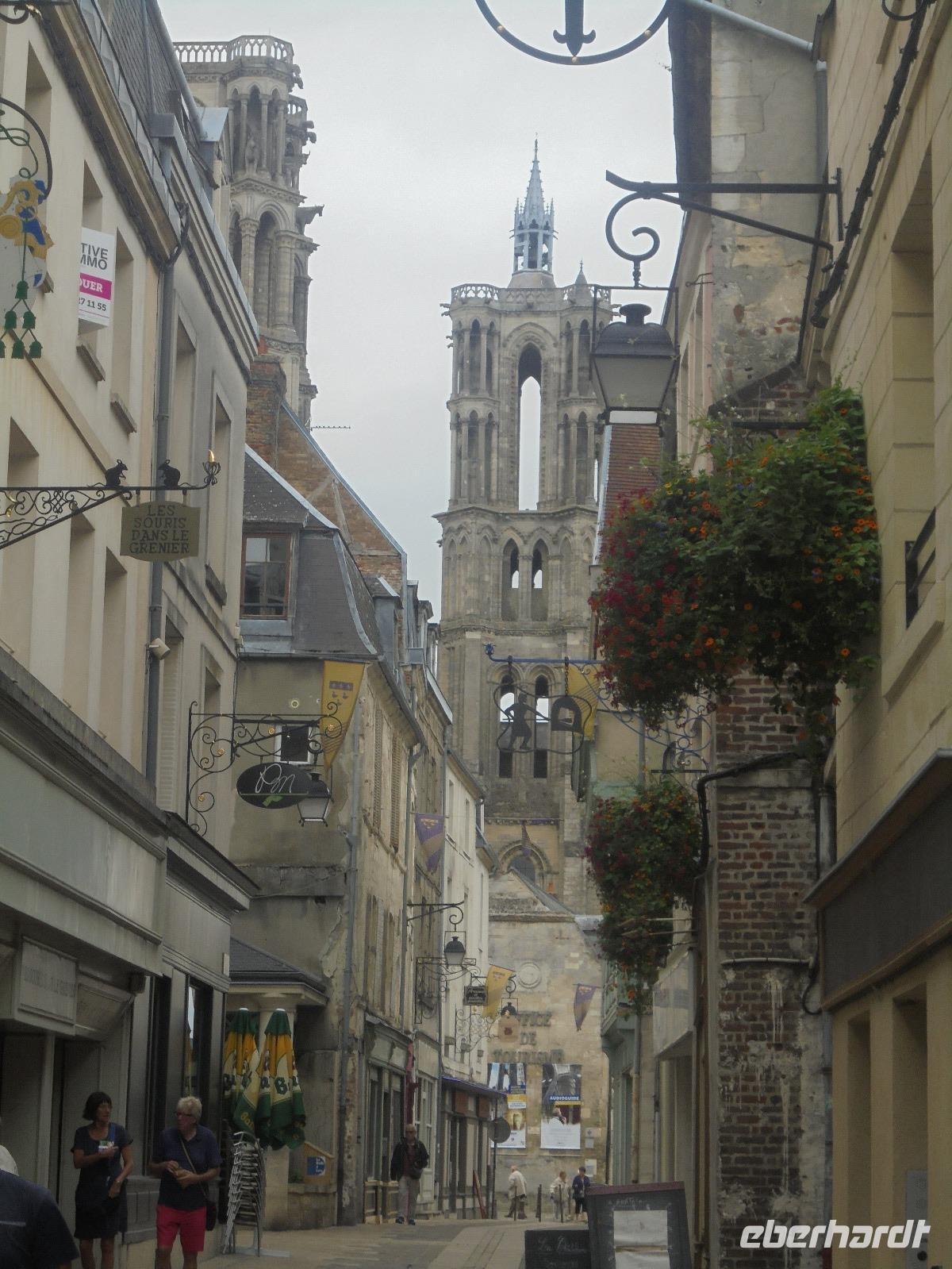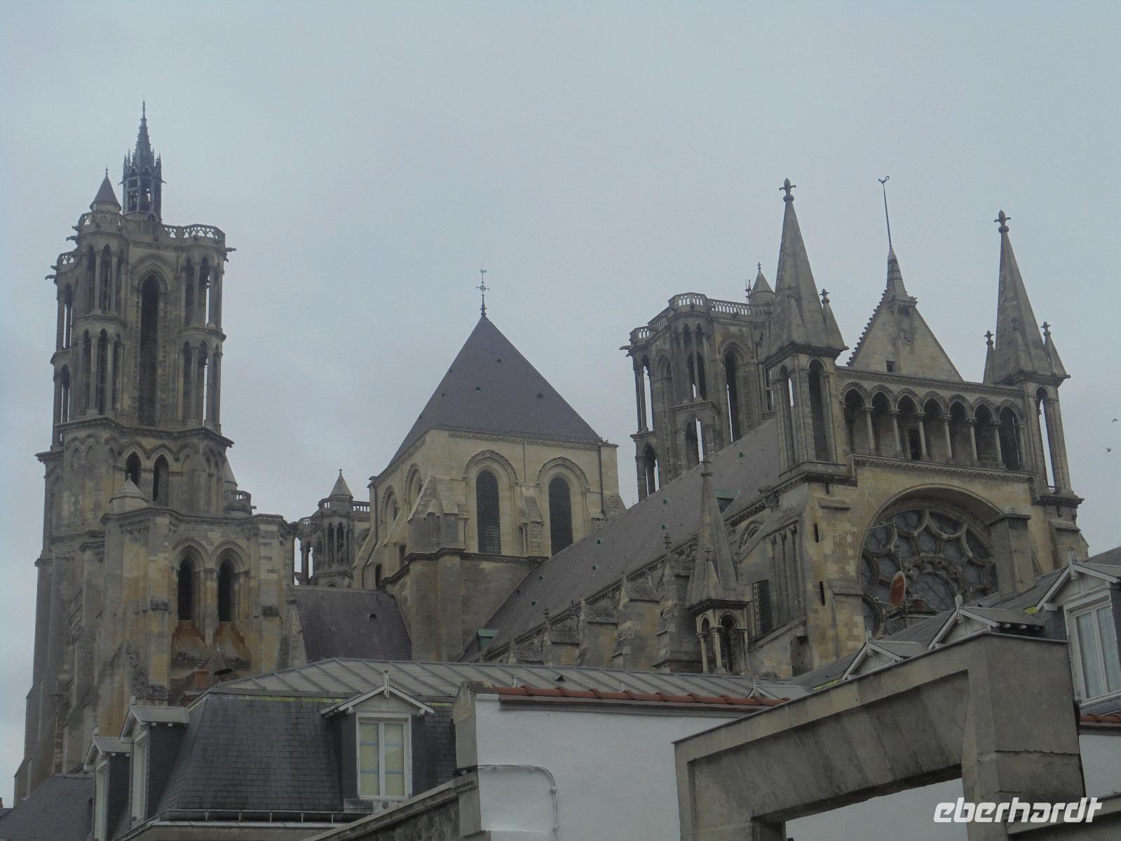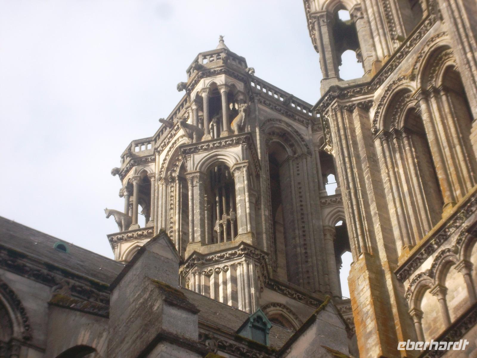 Auf belgischen und französischen Autobahnen begaben wir uns zu einem der Kleinode des Nachbarlandes: die Innenstadt von Laon, von einer herrlichen Kathedrale gekrönt, liegt in ihrer Gesamtheit auf einer Art Tafelberg. Dadurch besitzt sie mit ihrer befestigten Altstadt und dem herausragenden Kirchenbau die größte, zusammenhängende Fläche Frankreichs, die unter Denkmalschutz steht. Die bemerkenswerteste Besonderheit von Laon ist mit Gewißheit ihre Kathedrale, die schon von Zeitgenossen ihrer Erbauung als Wuderwerk angesehen Wurde. Das rührt vielleicht daher, dass sie als eine der ersten Kirchen überhaupt komplett im gotischen Stil errichtet wurde. Ihr Kreuzrippengewölbe das ihr eine durchstrukturierte Architektur und betonte Leichtigkeit in der Bauweise verleiht, gehört zu den ersten, die je erbaut wurden. Sie besticht im Inneren mit einer gewaltigen Raumwirkung, deren Klarheit und Helligkeit sie deutlich von den fast als Wehrkirchen gestalteten, wesentlich düstereren Bauwerken der Romanik unterscheidet. So kann man auch in diesem wundervollen frühgotischen Bau schon die Eleganz ahnen, die dann wenig später in der atemberaubenden komplett ausgeformten Gotik mit Architekturbögen, gestaffelten Säulenreihen und Strebewerken aufwarten und Besonders mit buntverglaster Lichtflächen- und Fenstergestaltung aufbieten wird. Wir hatten die Kathedrale beinahe ganz für uns und konnten viel vom Charme dieses frühgotischen Bauwerkes entdecken.