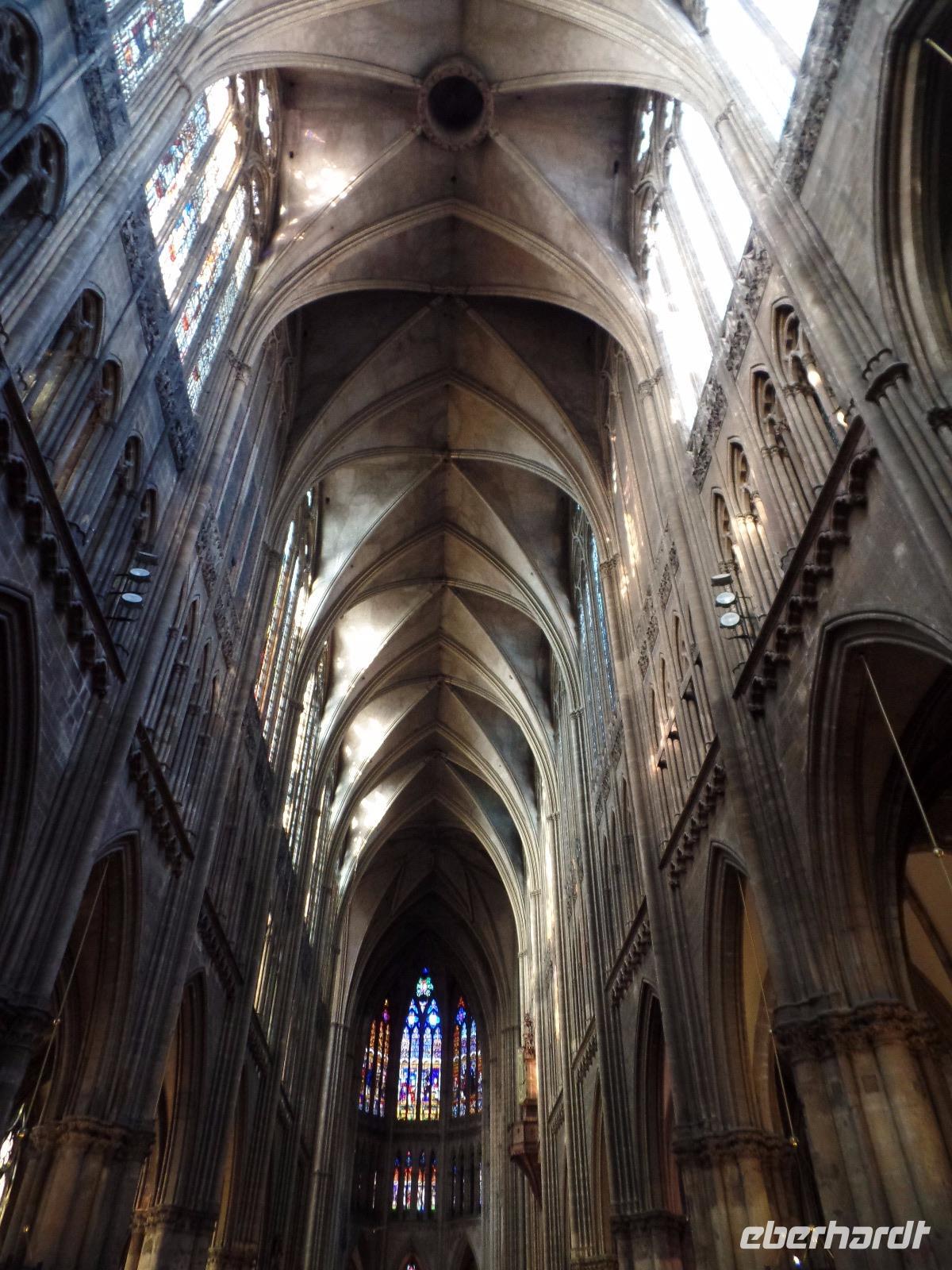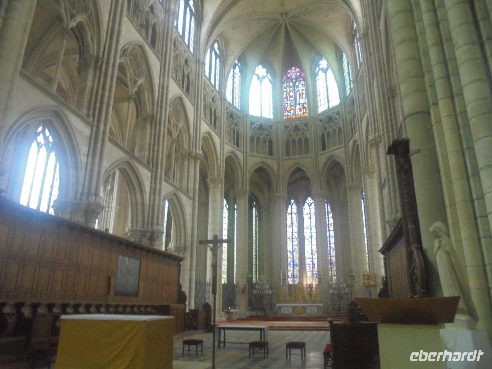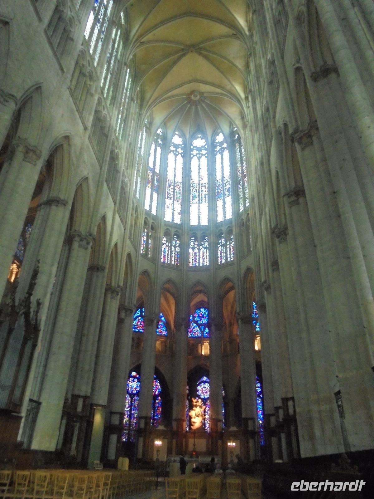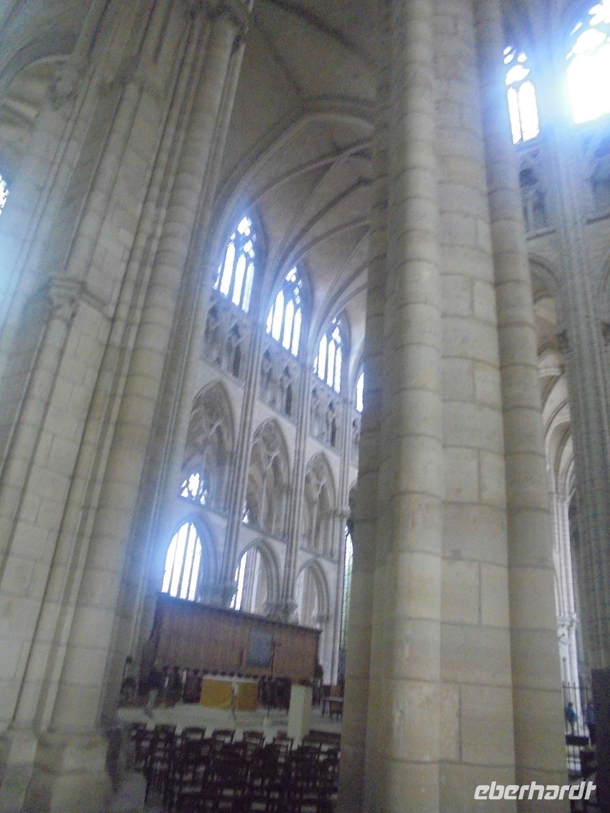 Nach dem Besuch hier fuhren wir weiter nach Beauvais. Die Kathedrale des westfranzösischen Bischofssitzes besitzt das mit 48,5 m höchste Kirchengewölbe der Welt. Die Wirren der Geschichte und historische Ereignisse wie Einstürze von Teilen der Domkirche verhinderten, dass die ehrgeizigen Pläne der hiesigen Bischöfe Wirklichkeit wurden - die Kirche der Superlative wurde nie fertig. Bis heute geblieben ist ihr Querhaus und ihr Chor aber die deuten bereits das einst geplante Ausmaß an. Vielleicht wäre sie zum gewaltigsten Gotteshaus der Christenheit geworden. Auf jeden Fall aber nötigt das Gewölbe im Inneren ungeheure Bewunderung für Können, Mut und Stilempfinden der gotischen Baumeister ab.