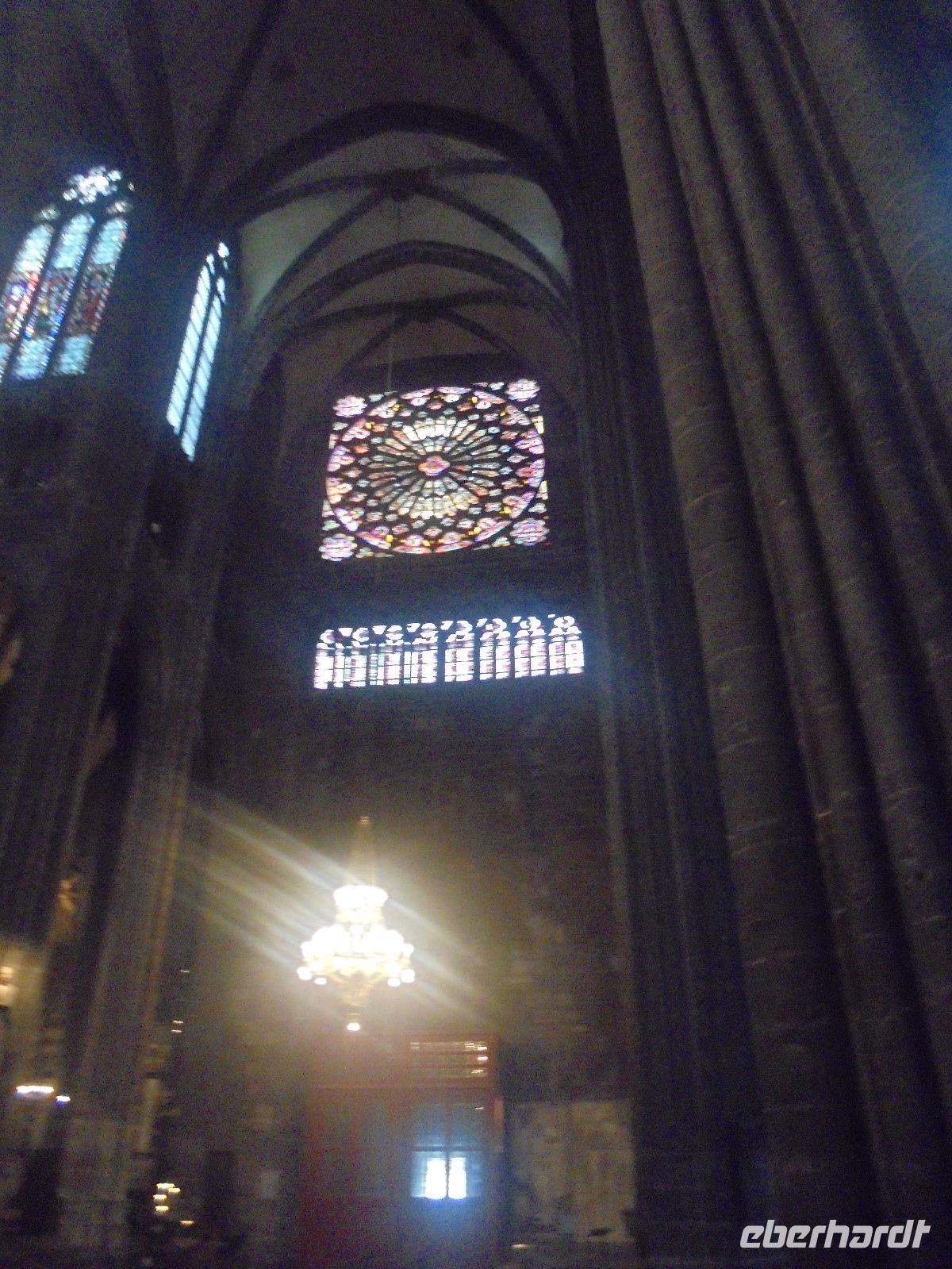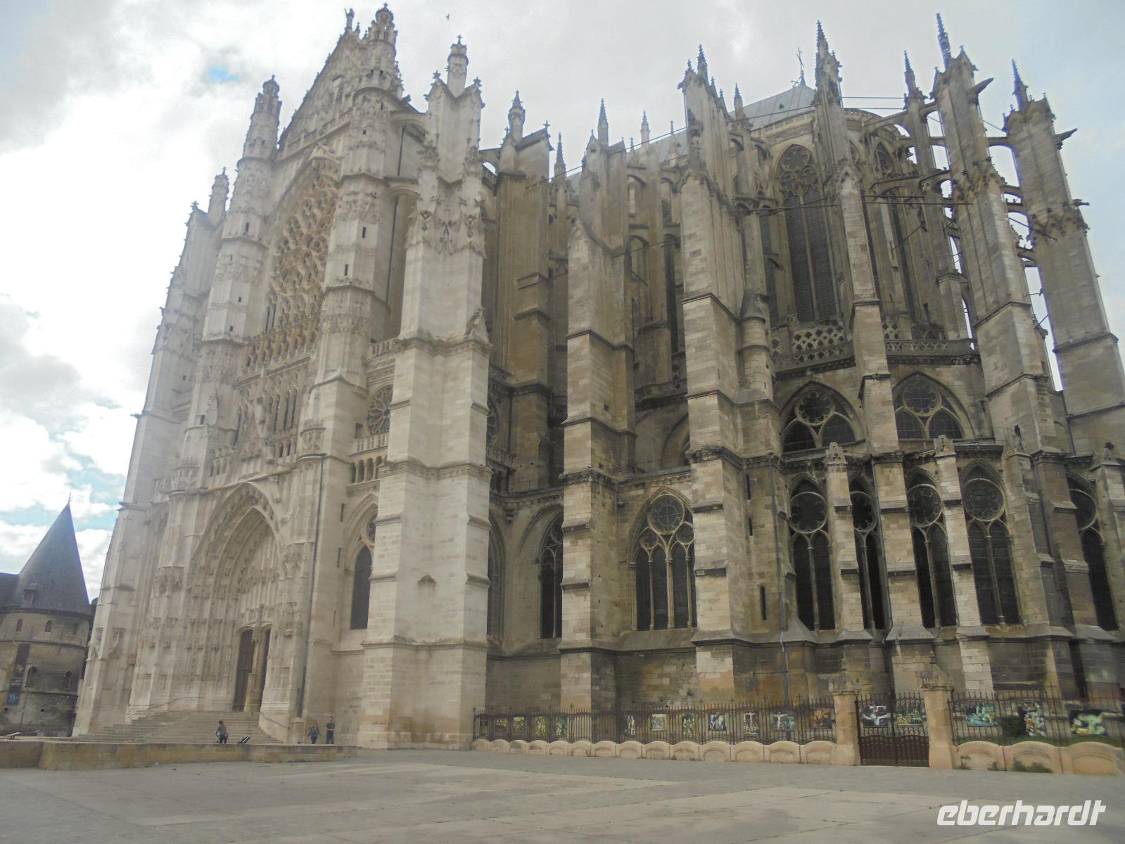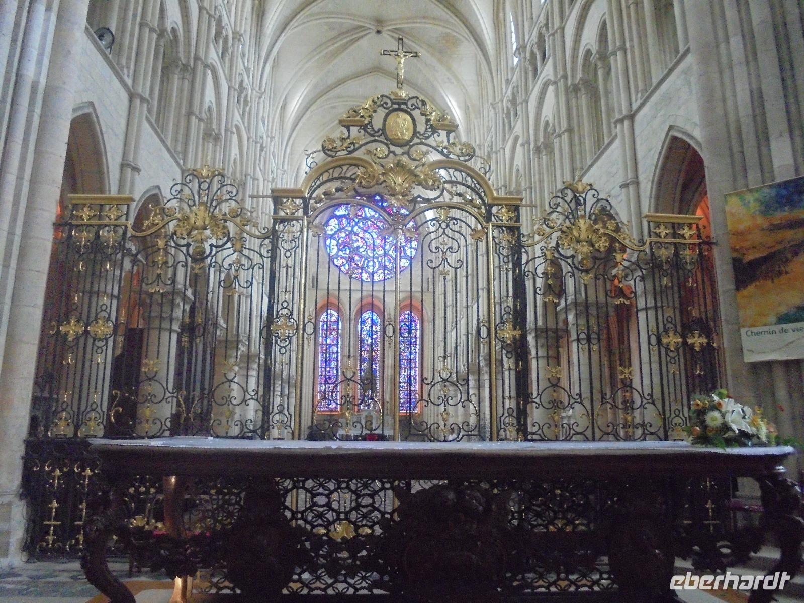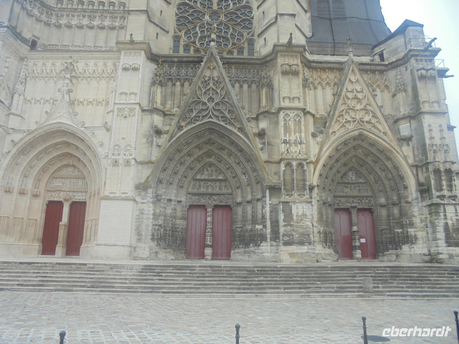 Nach dem Besuch hier fuhren wir weiter nach Beauvais. Die Kathedrale des westfranzösischen Bischofssitzes besitzt das mit 48,5 m höchste Kirchengewölbe der Welt. Die Wirren der Geschichte und historische Ereignisse wie Einstürze von Teilen der Domkirche verhinderten, dass die ehrgeizigen Pläne der hiesigen Bischöfe Wirklichkeit wurden - die Kirche der Superlative wurde nie fertig. Bis heute geblieben ist ihr Querhaus und ihr Chor aber die deuten bereits das einst geplante Ausmaß an. Vielleicht wäre sie zum gewaltigsten Gotteshaus der Christenheit geworden. Auf jeden Fall aber nötigt das Gewölbe im Inneren ungeheure Bewunderung für Können, Mut und Stilempfinden der gotischen Baumeister ab.