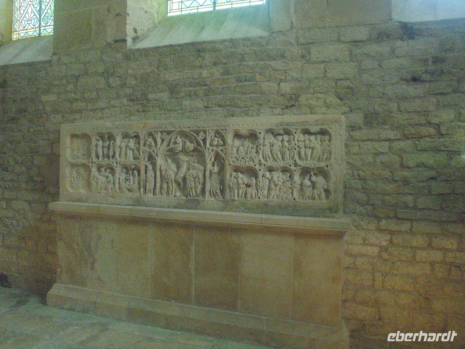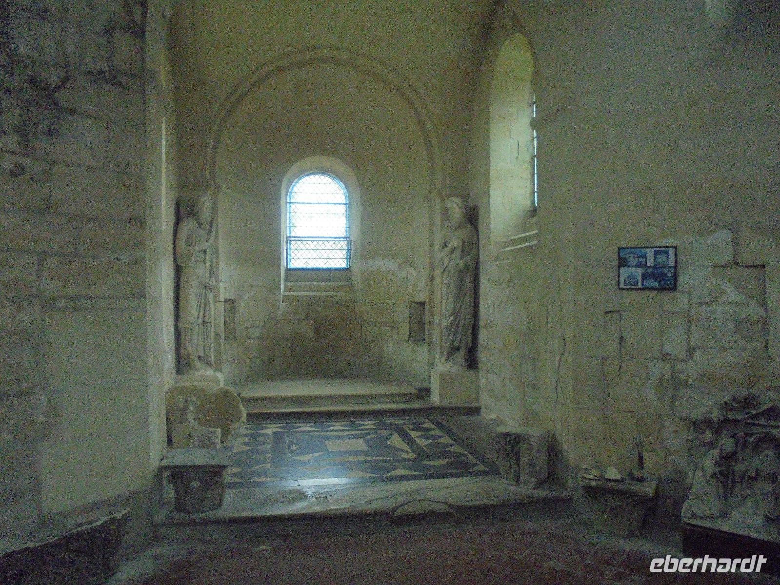 Später suchten wir die Templerkapelle von Laon auf, die viele aufgrund ihrer frühen Bauzeit in den 30er und 40er Jahren des 12. Jh. als vielleicht die erste je vom Orden erbaute Kirche ansehen. Sie ist im romanischen Stil, mit gemauertem Glockenstuhl statt Turm errichtet und wirkte natürlich - nach dem Besuch der Kathedrale und auch von ihrer Lage her tatsächlich fast in ihrem Schatten stehend - eher bescheiden und bodenständig. Natürlich war sie - als nicht öffentliche Komtureikirche - für die Gottesdienste der Ordensmitglieder sowie als Grabeskirche gedacht.