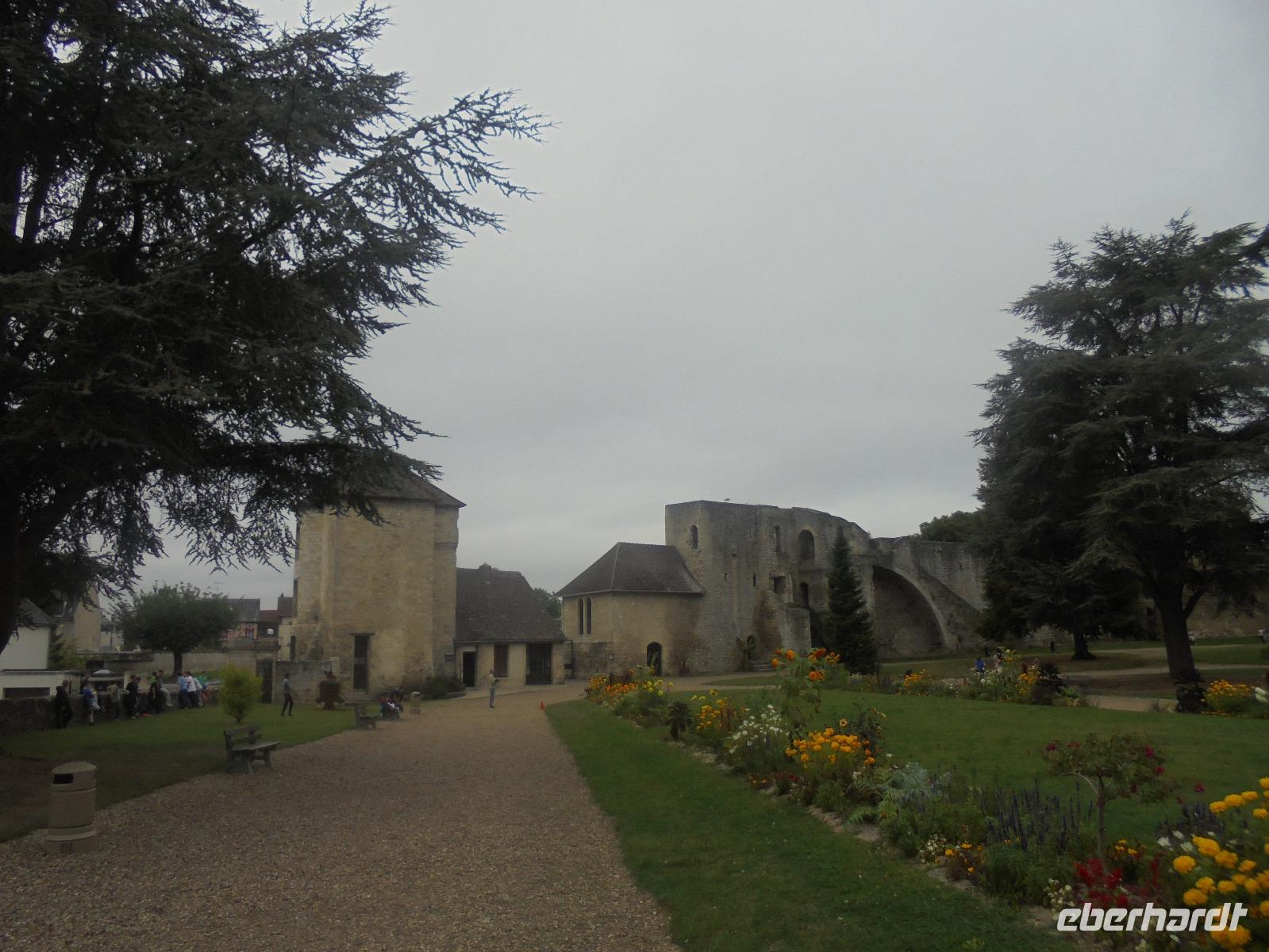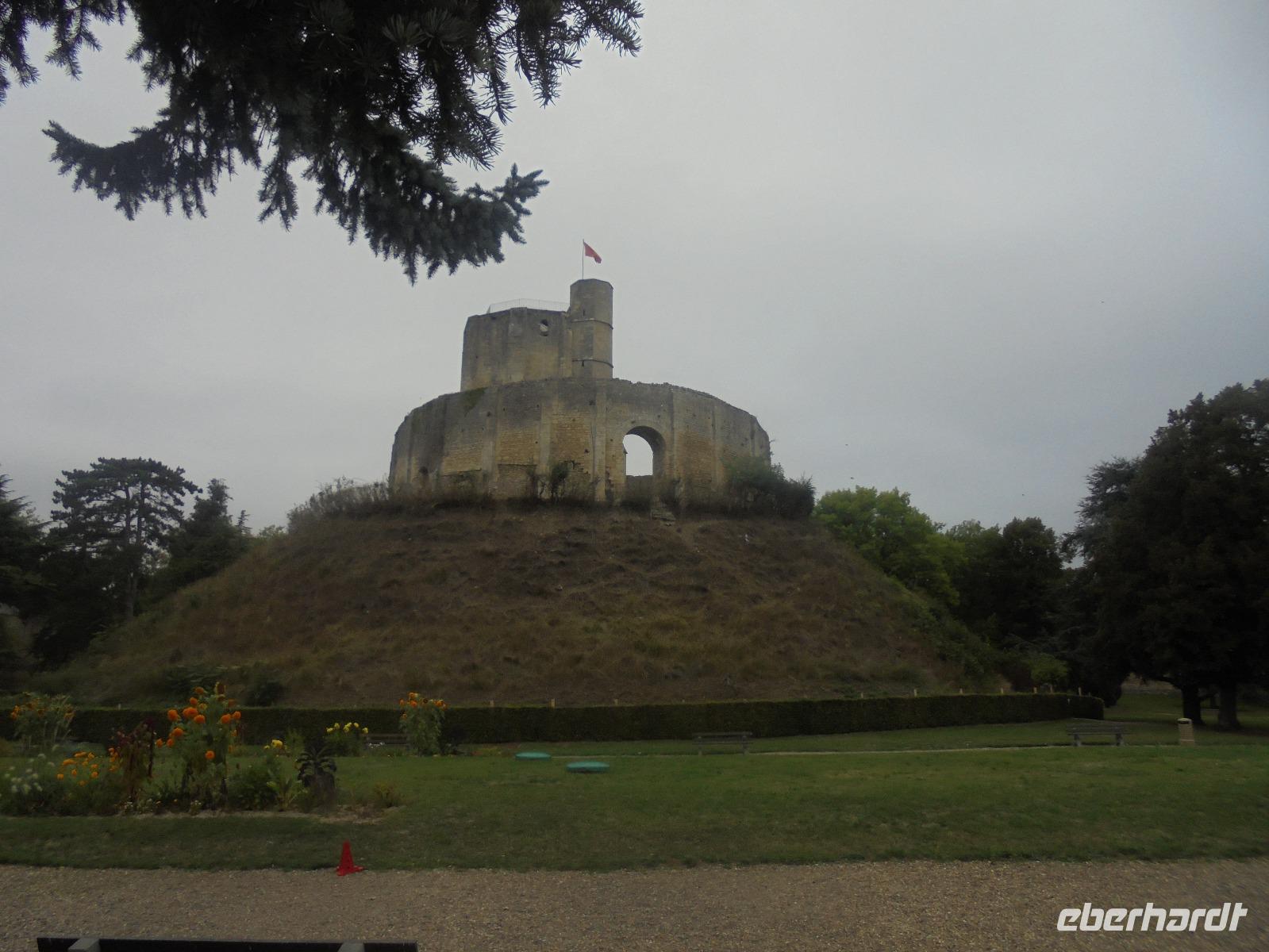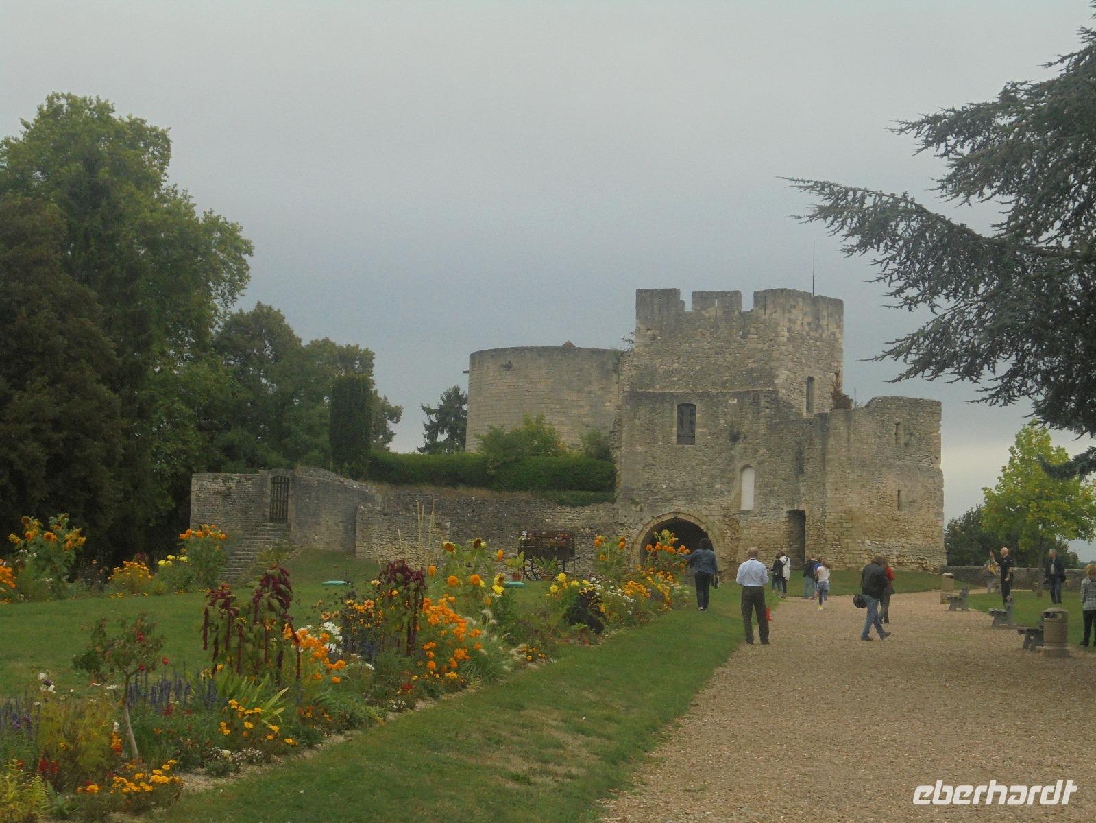 Wir hatten Zeit für einen Bummel in der Wehranlage, die aufgrund ihrer Grenzlage zur einstigen Normandie und ihrer Bedeutung für die normannisch-englischen Könige gut ausgebaut gewesen war. Besonders malerisch ist der Donjon, der einstige Bergfried, der auf einer Motte, einer künstlichen Erdaufschüttung errichtet und weithin sichtbar ist. So wirkt die Burg, obwohl die Gesamtanlage viel größer ist, insgesamt wie eine Turmhügelburg.