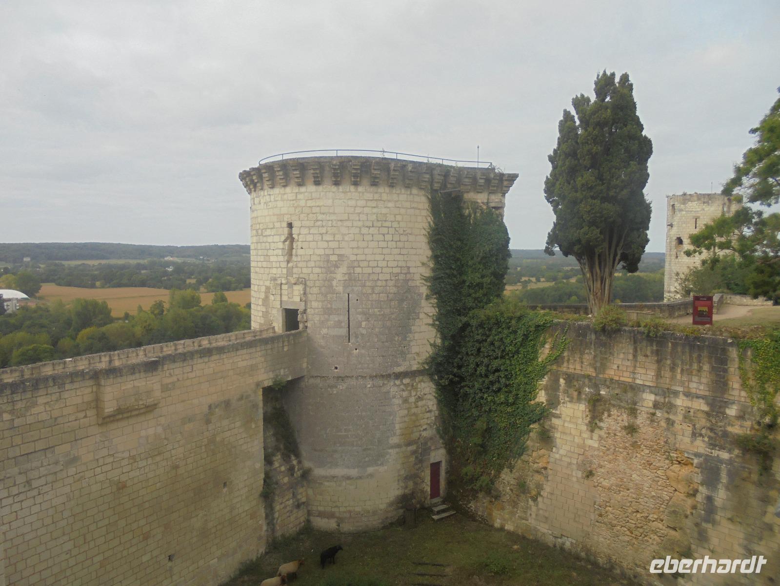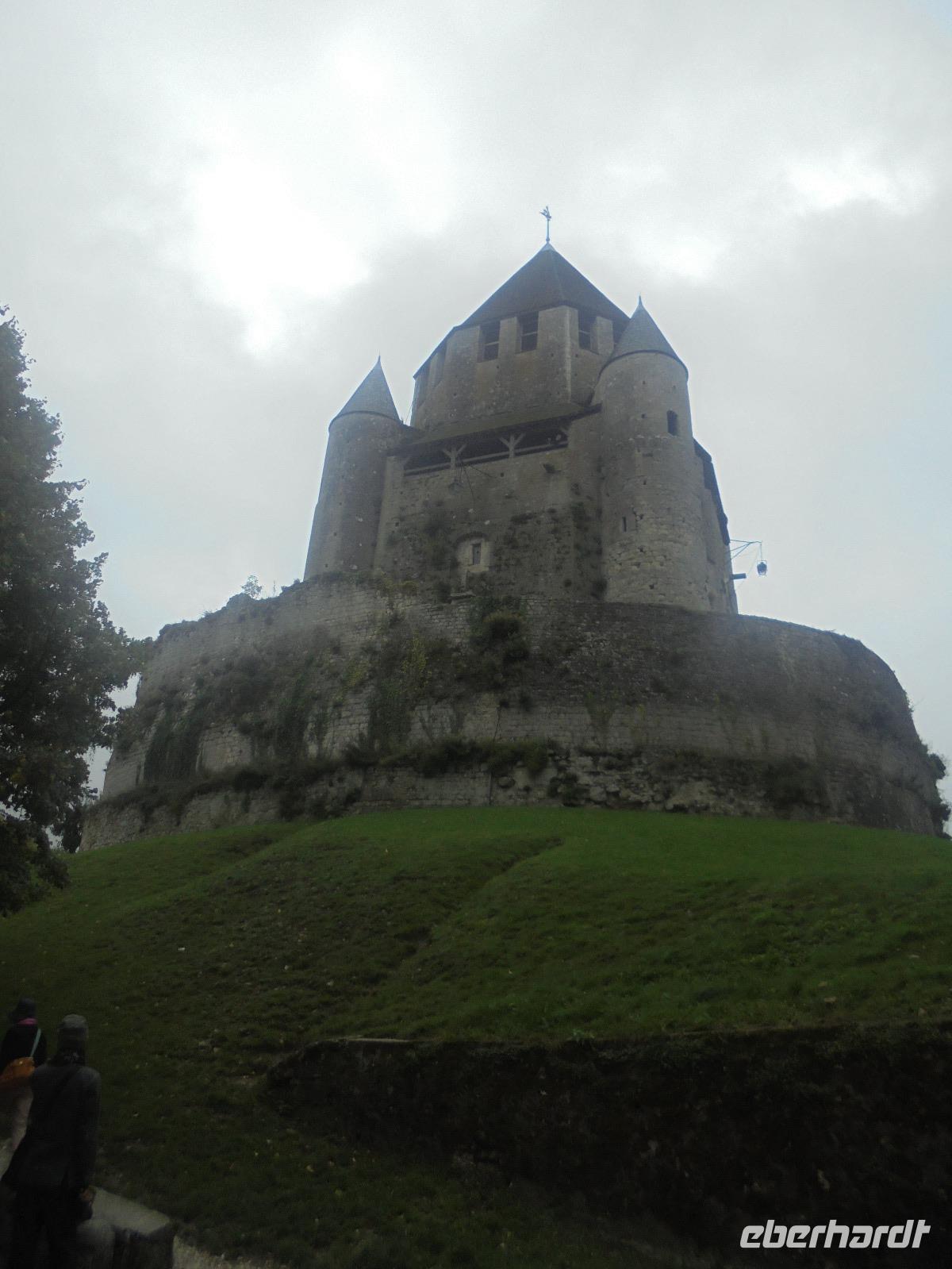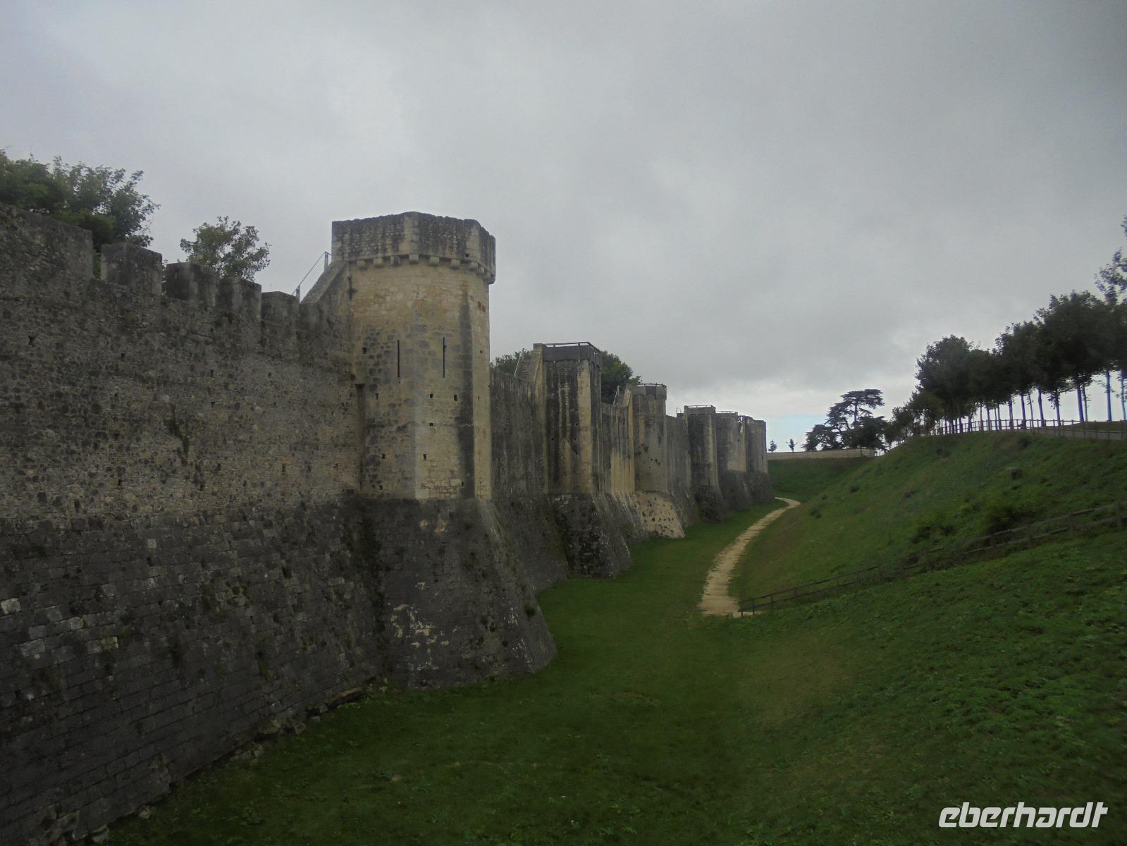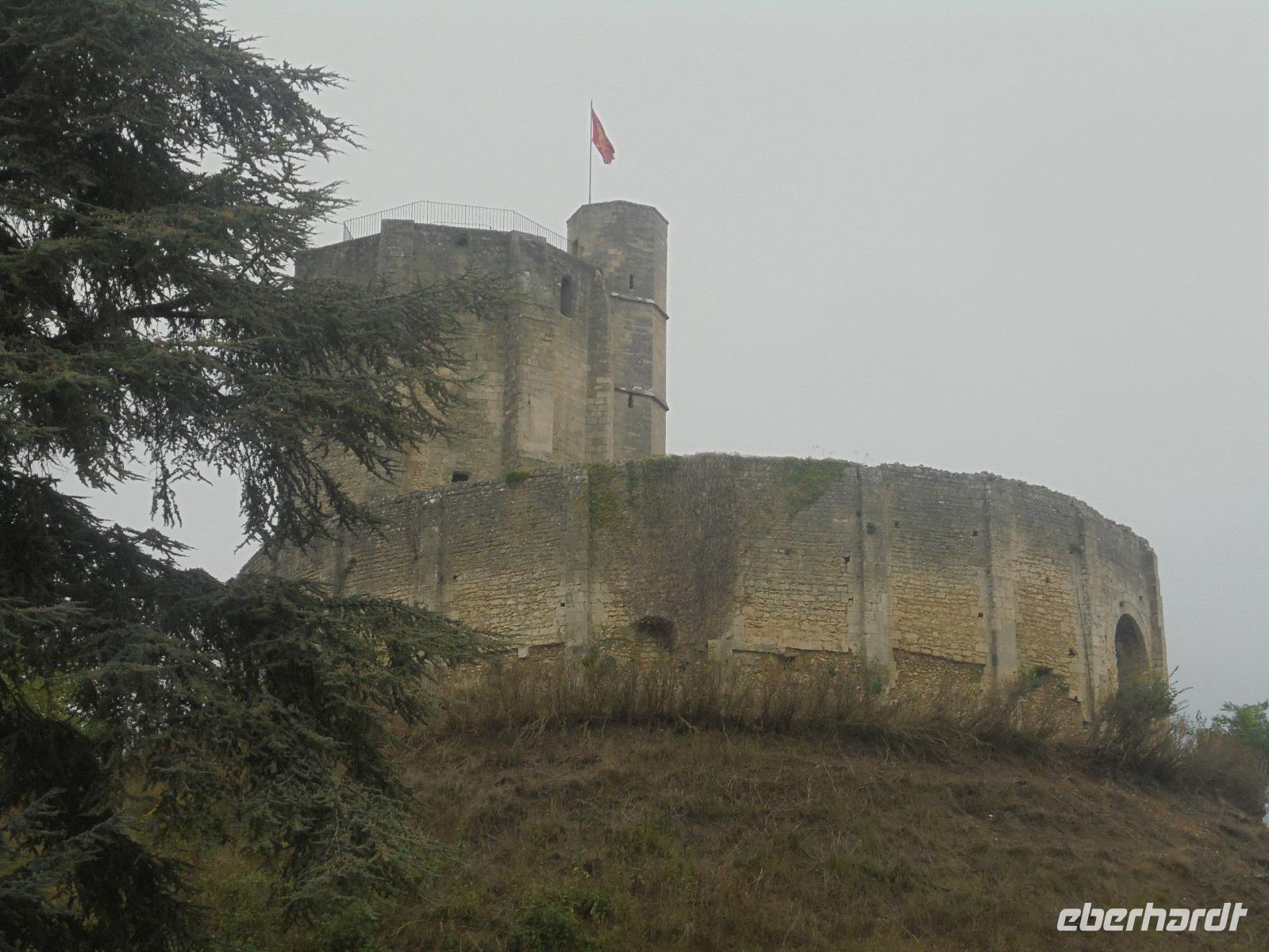 Wir hatten Zeit für einen Bummel in der Wehranlage, die aufgrund ihrer Grenzlage zur einstigen Normandie und ihrer Bedeutung für die normannisch-englischen Könige gut ausgebaut gewesen war. Besonders malerisch ist der Donjon, der einstige Bergfried, der auf einer Motte, einer künstlichen Erdaufschüttung errichtet und weithin sichtbar ist. So wirkt die Burg, obwohl die Gesamtanlage viel größer ist, insgesamt wie eine Turmhügelburg.