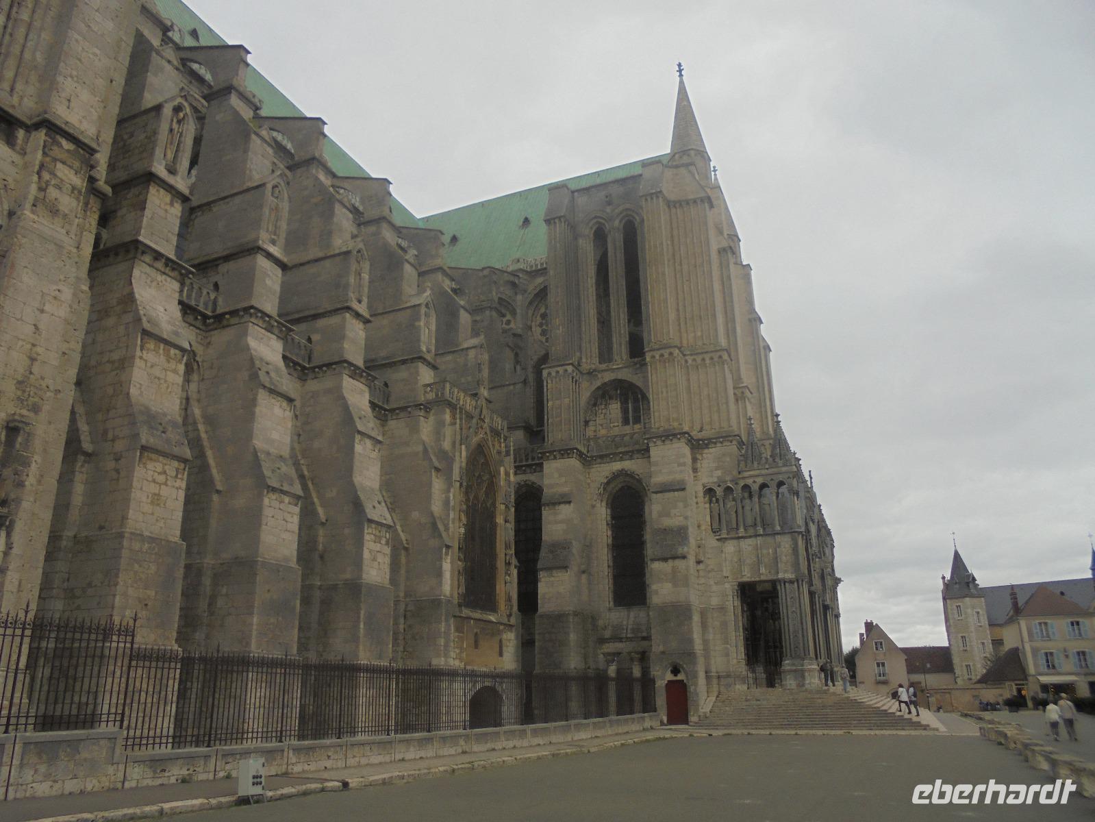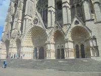 Unser weiterer Weg führte uns dann in die Kathedralenstadt Chartres. Ihr berühmtestes Bauwerk, die Kathedrale Notre Dame de Chartres, gehört schon seit 1979 zum UNESCO-Weltkulturerbe. Mit ihren wundervollen Verzierungen, vor allem aber wegen ihrer fast vollständig erhaltenen Glasfenster gilt sie als die am vollständigsten erhaltene hochgotische Kathedrale der Welt. Tatsächlich ist sie überreich geschmückt mit Skulpturen und Reliefs und besonders ihre mittelalterliche Glasmalerei - mit besonderem Augenmerk auf den drei „Rosenfenstern" - diente zahllosen Kirchen des gotischen Stils als Vorbild. In ihrer reich gegliederten Fassade fällt das Königsportal auf. Manche Kunsthistoriker erklären die hier befindlichen Statuen aus der Mitte des 12. Jh. zu den ältesten überhaupt vorhandenen gotischen Figuren. Auffällig ist am Königsportal, dass in dieser dreigeteilten Portalanlage alle drei Tore ins Hauptschiff münden - sonst gelangt man durch jeden Portalteil in je eines - Haupt- oder Seitenschiff. Bemerkenswert im Inneren der Kirche ist auch das Bodenlabyrinth, das seit dem 12. Jahrhundert existiert. Bis heute geben seine Funktion und Gestaltung Rätsel auf.