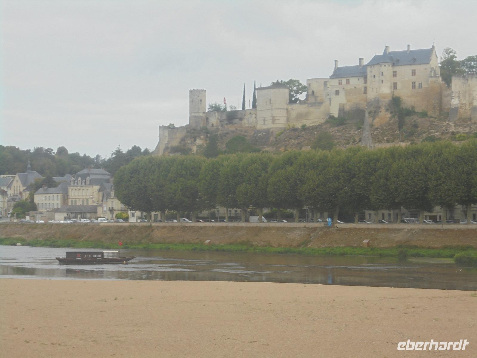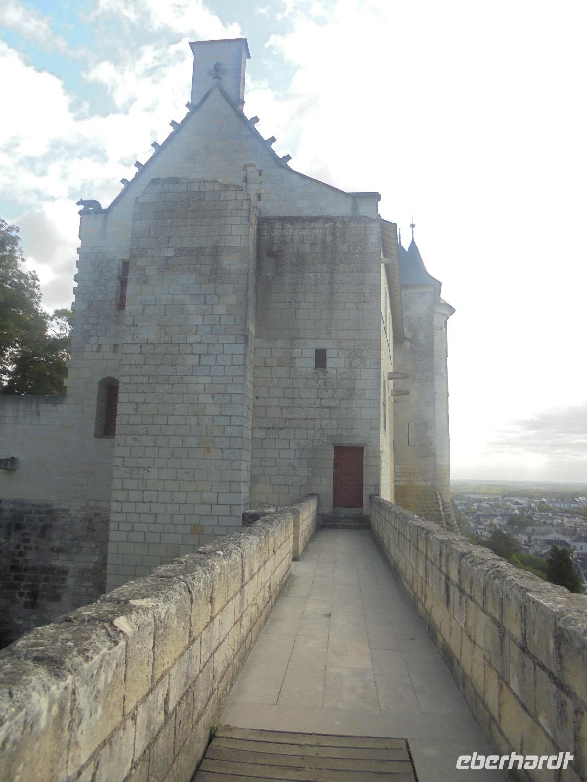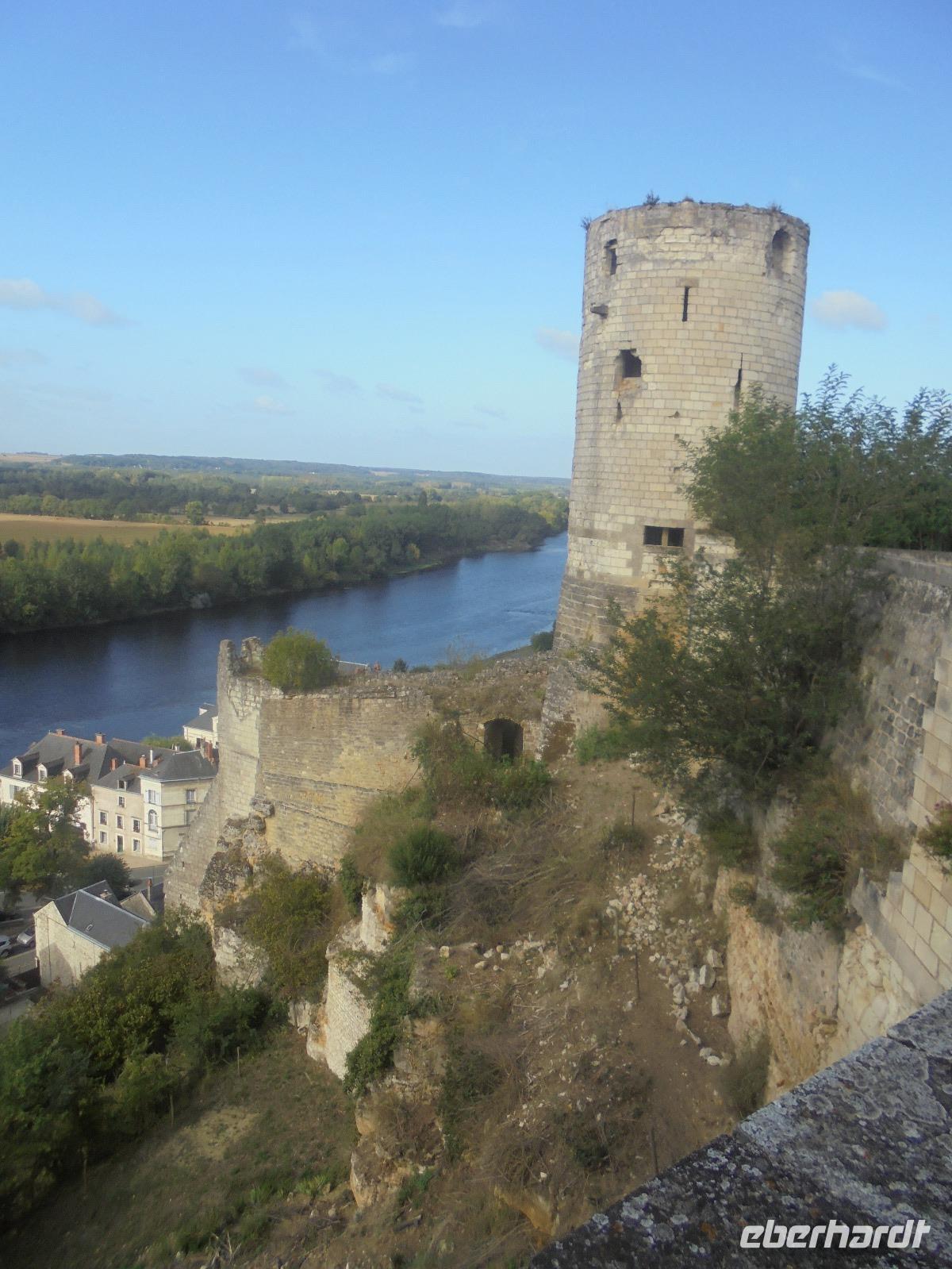 Über Autobahn und Landstraßen erreichten wir heute Vormittag, vorbei an Tours, das kurz vor der Mündung der Vienne in die Loire gelegene Städtchen Chinon. Oberhalb des Loire-Nebenflusses Vienne liegt das gewaltige und weit auf einem Bergrücken ausgedehnte Schloss Chinon. Der Ausdruck Schloss ist nicht unumstritten, denn aufgrund seiner Wehrhaftigkeit, die wegen strategischer Lage und politischer Bedeutung immer wieder durch Einbau von Festungstürmen verstärkt wurde, ist das Bauwerk eigentlich eine Burg. Dennoch taucht es immer wieder als eines der sehenswertesten „Schlösser der Loire" auf. Das liegt gewiss vor allem an den Legenden um Chinon und an der Tatsache, dass es längere Zeit während des 100jährigen Krieges von Frankreich gegen England den französischen Königshof beherbergt hatte. Hier war es auch zu der schicksalhaften Begegnung des damals noch ungekrönten französischen Königs Karl VII. von Valois mit der späteren französischen Nationalheiligen Jeanne d'Arc gekommen, in deren Folge sich nicht nur das Kriegsglück zugunsten Frankreichs wendete, sondern Karl VII. auch in Reims gekrönt werden konnte. Schon vorher war die Burg, deren Wehrmauern, Bergfriede, Paläste und viele Verliese bis heute von einer bewegten und oft düsteren Vergangenheit zeugen, ins Licht der Geschichte gerückt, denn unmittelbar nach der 1307 begonnenen Verfolgung des Templerordens hatte der französische König Philipp IV. hier viele angeklagte Tempelritter einkerkern lassen. Unter Ihnen war der berühmte letzte Großmeister des Ordens, Jacques de Molay. Man behauptet, sowohl er wie auch viele der anderen gefangenen Tempelritter hinterließen im Festungsteil Coudray, der zu Chinon gehört, geheimnisvolle und zumeist noch nicht gedeutete Einritzungen und Zeichnungen in den Mauern. Insgesamt mehr als 140 Templer hatten hier in Chinon 1308 Verhör und Folter zu erdulden oder warteten hier auf ihre Hinrichtung.