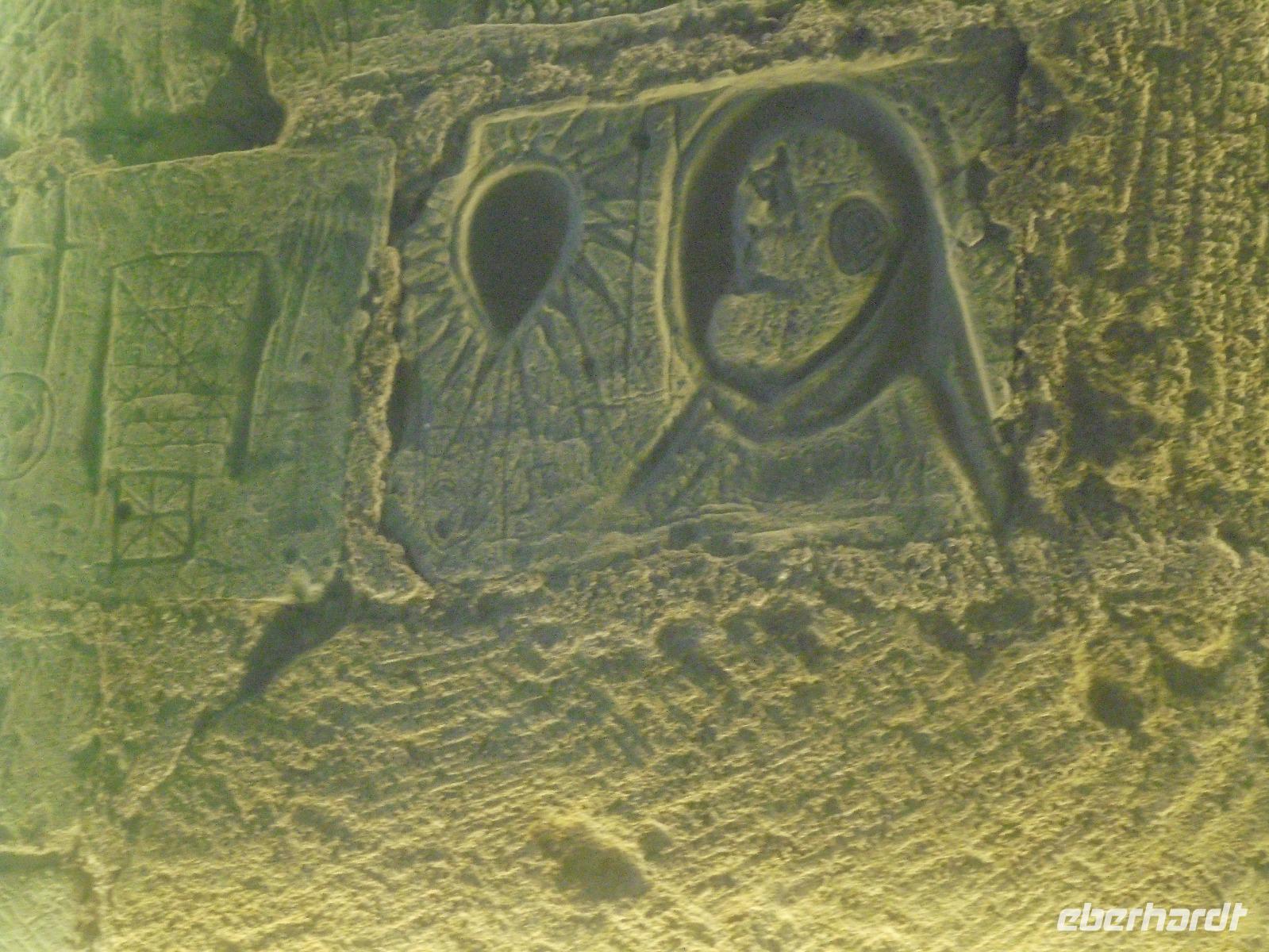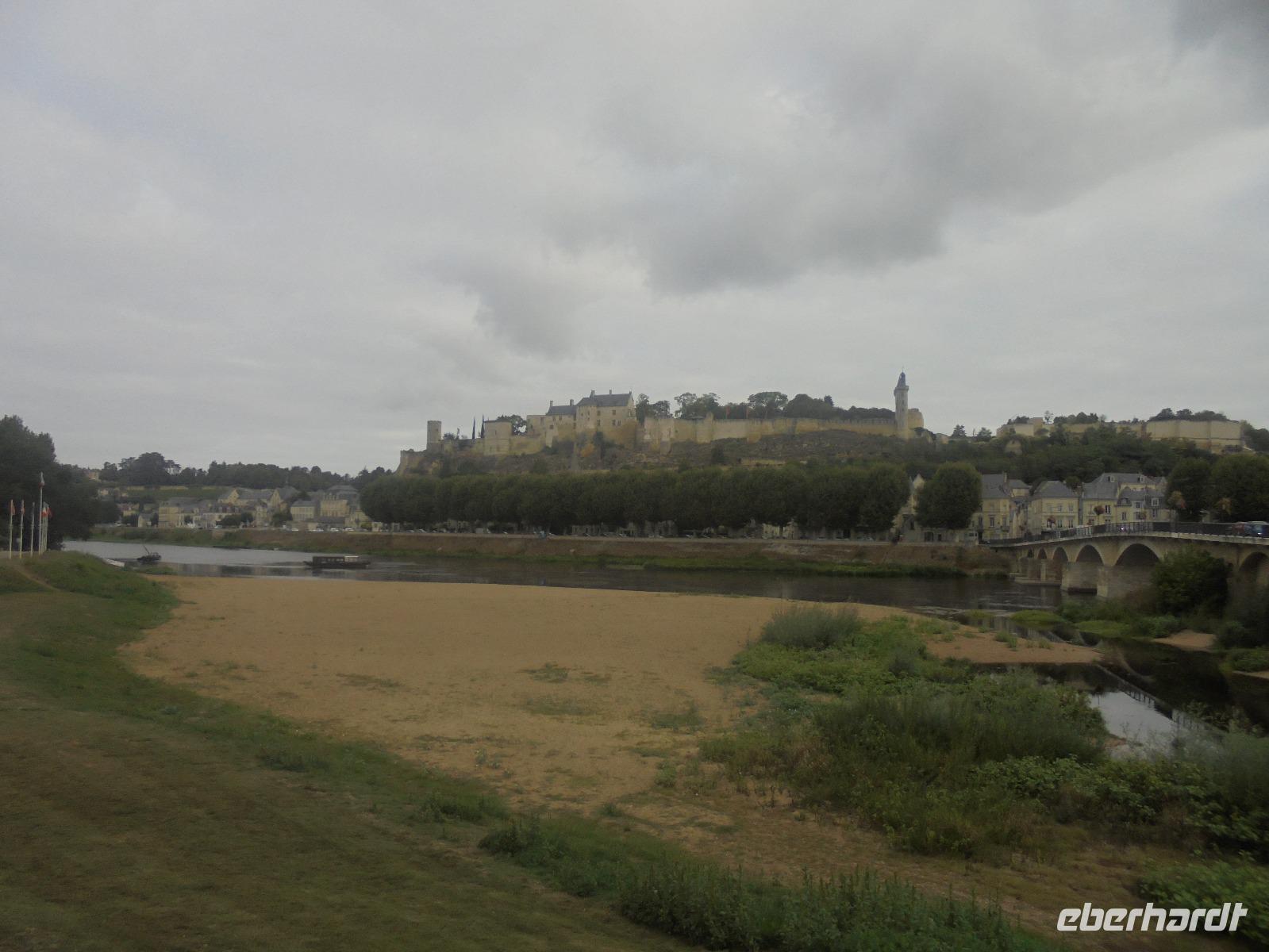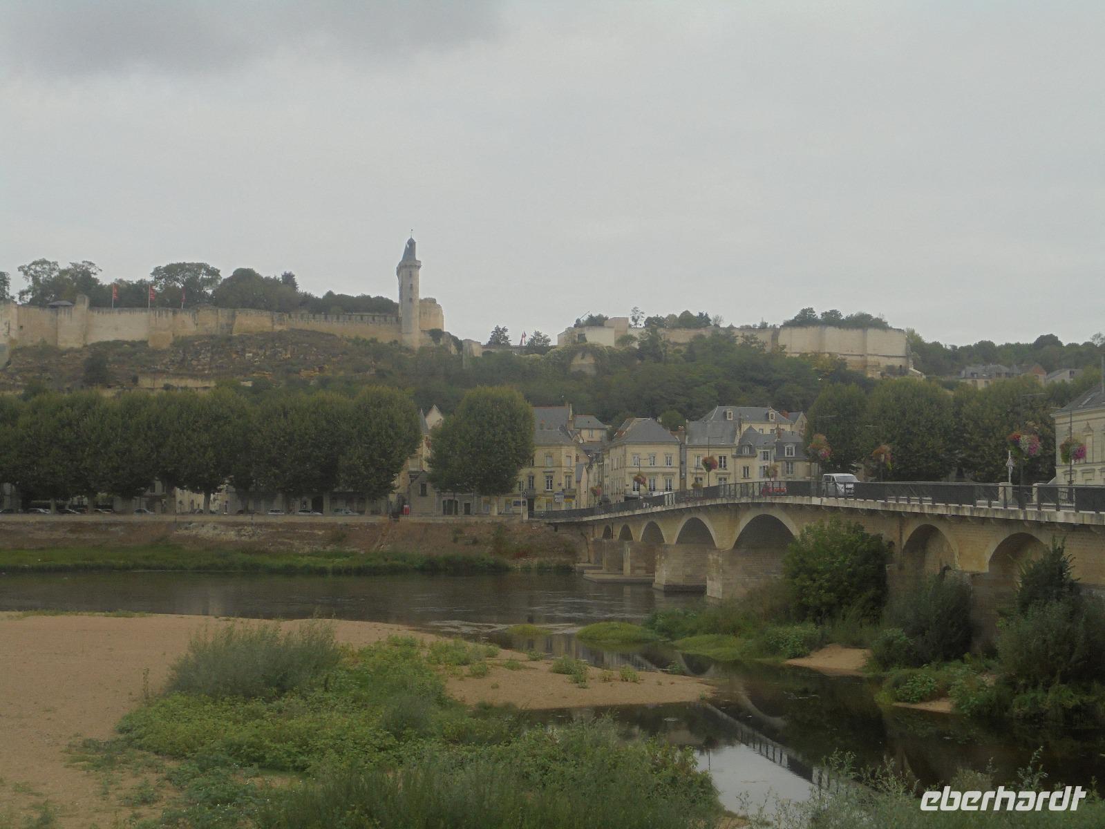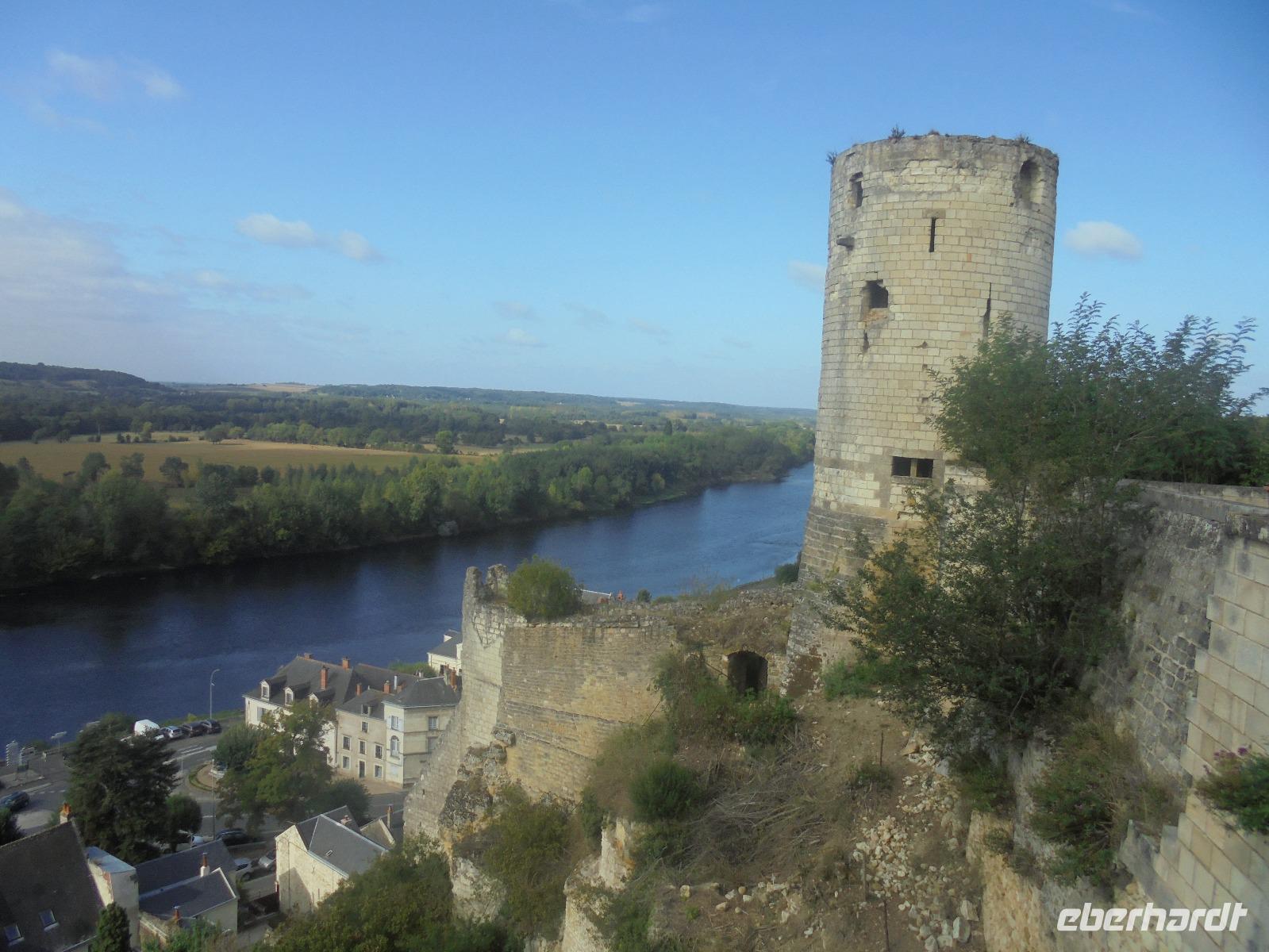 Über Autobahn und Landstraßen erreichten wir heute Vormittag, vorbei an Tours, das kurz vor der Mündung der Vienne in die Loire gelegene Städtchen Chinon. Oberhalb des Loire-Nebenflusses Vienne liegt das gewaltige und weit auf einem Bergrücken ausgedehnte Schloss Chinon. Der Ausdruck Schloss ist nicht unumstritten, denn aufgrund seiner Wehrhaftigkeit, die wegen strategischer Lage und politischer Bedeutung immer wieder durch Einbau von Festungstürmen verstärkt wurde, ist das Bauwerk eigentlich eine Burg. Dennoch taucht es immer wieder als eines der sehenswertesten „Schlösser der Loire" auf. Das liegt gewiss vor allem an den Legenden um Chinon und an der Tatsache, dass es längere Zeit während des 100jährigen Krieges von Frankreich gegen England den französischen Königshof beherbergt hatte. Hier war es auch zu der schicksalhaften Begegnung des damals noch ungekrönten französischen Königs Karl VII. von Valois mit der späteren französischen Nationalheiligen Jeanne d'Arc gekommen, in deren Folge sich nicht nur das Kriegsglück zugunsten Frankreichs wendete, sondern Karl VII. auch in Reims gekrönt werden konnte. Schon vorher war die Burg, deren Wehrmauern, Bergfriede, Paläste und viele Verliese bis heute von einer bewegten und oft düsteren Vergangenheit zeugen, ins Licht der Geschichte gerückt, denn unmittelbar nach der 1307 begonnenen Verfolgung des Templerordens hatte der französische König Philipp IV. hier viele angeklagte Tempelritter einkerkern lassen. Unter Ihnen war der berühmte letzte Großmeister des Ordens, Jacques de Molay. Man behauptet, sowohl er wie auch viele der anderen gefangenen Tempelritter hinterließen im Festungsteil Coudray, der zu Chinon gehört, geheimnisvolle und zumeist noch nicht gedeutete Einritzungen und Zeichnungen in den Mauern. Insgesamt mehr als 140 Templer hatten hier in Chinon 1308 Verhör und Folter zu erdulden oder warteten hier auf ihre Hinrichtung.
