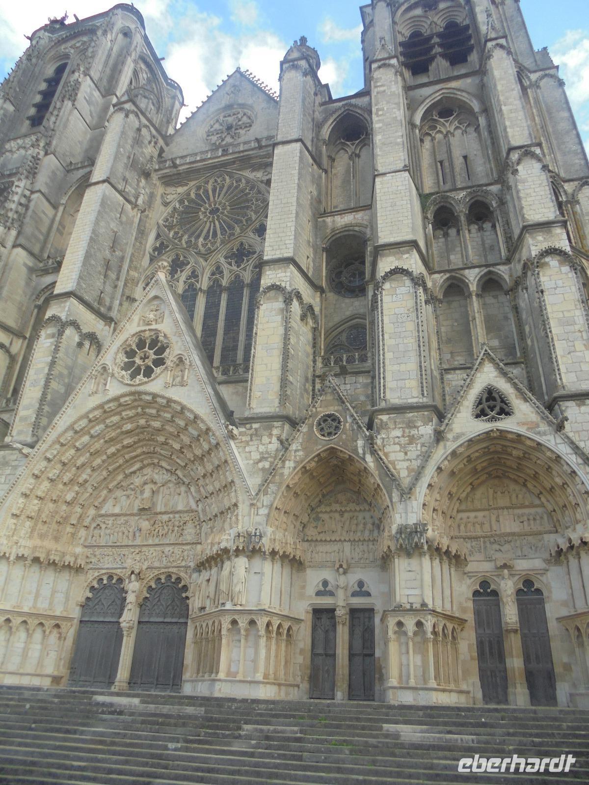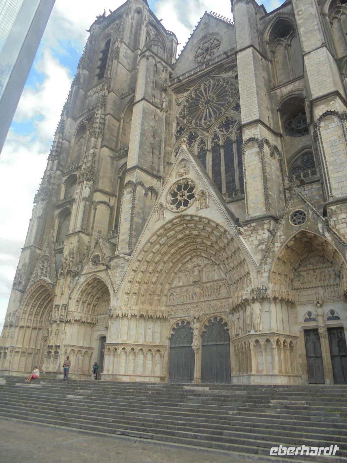 Unser weiterer Weg führte uns dann - bei einem Abstecher im Sinne unserer „Richtig Reisen!"-Philosophie - in die Stadt Bourges. Die historisch bedeutsame Stadt, die geografisch fast exakt in der Mitte Frankreichs liegt, sah während des hundertjährigen Krieges oft die Hofhaltung und die Feste des Karl VII. von Valois. Besonders bekannt aber wurde sie wegen ihrer Kathedrale, die seit 1992 zum UNESCO-Weltkulturerbe gehört. Das einzigartige Bauwerk ist - selten genug in Frankreich - eine fünfschiffige Basilika OHNE Querschiff, dafür aber mit doppeltem Chorumgang. Wunderbar erhaltene Glasmalereien aus dem 13. Jahrhundert, eine filigrane Gewölbekonstruktion, vor allem aber die wundervoll figurengeschmückten fünf Portalbögen an der Westfassade machen diesen Kirchenbau zu etwas Besonderem und wirklich zu einem echten „Hingucker". Mehrere königliche Hochzeiten und sogar Krönungen ließen sie auch historisch bedeutsam werden.