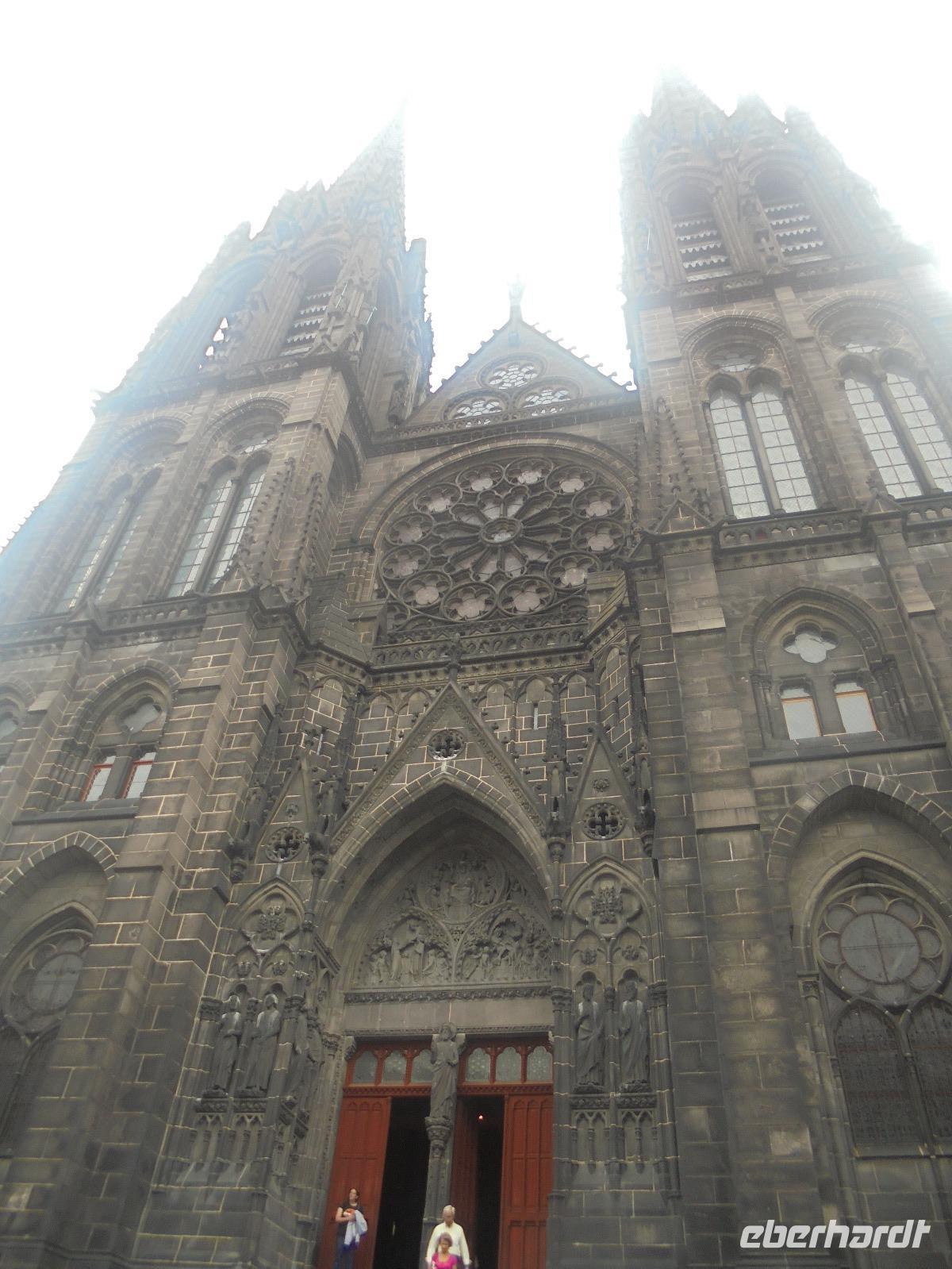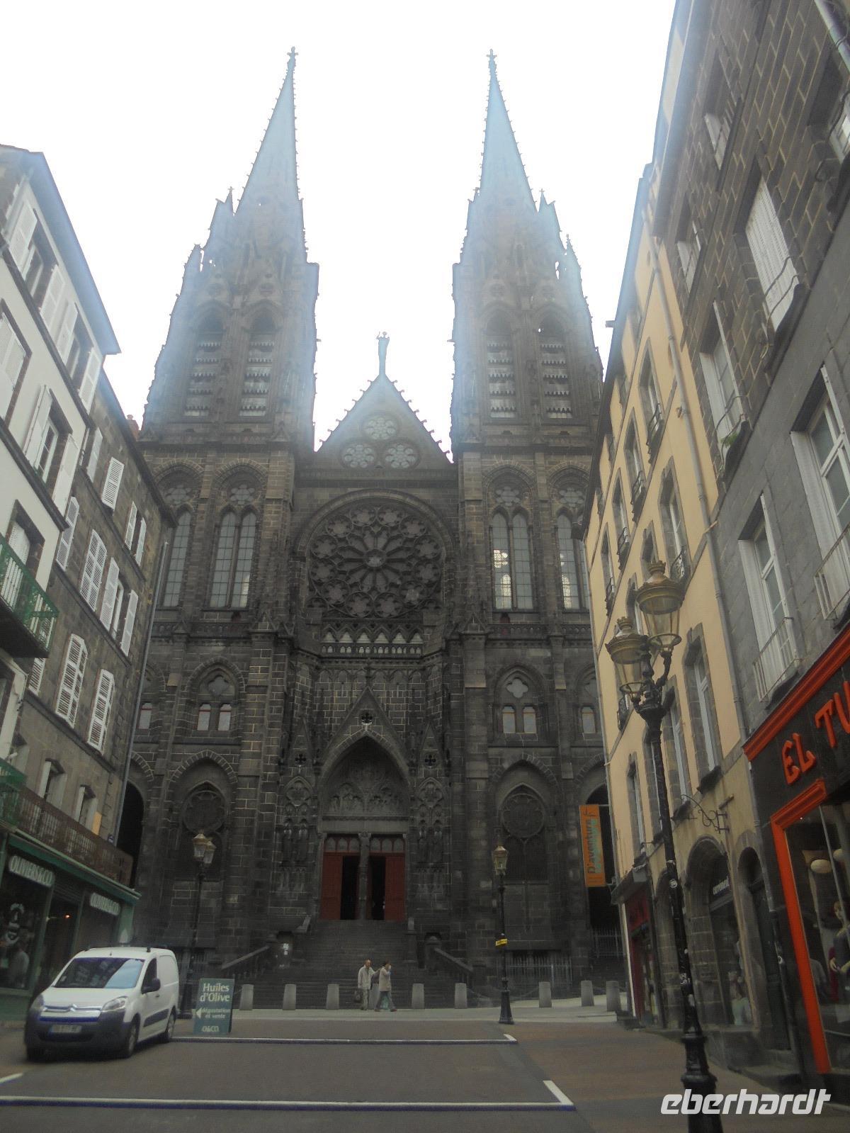Clermont-Ferrand, gelegen mitten in der durch Vulkane geprägten Landschaft der Auvergne, ist in die Geschichte eingegangen als der Ort, an dem Papst Urban II. im November des Jahres 1095 zum ersten Kreuzzug aufgerufen hatte. In den darauffolgenden Kriegszügen europäischer christlicher Ritter wurde Jerusalem erobert und im besetzten „Heiligen Land" erfolgte die Gründung mehrerer Ritterorden, darunter der Tempelritter. Mit einer örtlichen Führerin zogen wir heute los, um die Doppelstadt Clermont-Ferrand zu erkunden. Bei einem Bummel in den teilweise sehr malerischen, verwinkelten Gassen der Innenstadt von Clermont entdeckten wir einige der bedeutsamen Denkmäler der Stadt. Die Statue des Keltenfürsten Vercingetorix, der einst für das Römische Reich bedrohlich wurde, schuf der berühmte Bildhauer Bartholdi, der auch die amerikanische Freiheitsstatue in New York entwarf. Die hochgotische Kathedrale Notre-Dame-de-l'Assomption im Zentrum wird auch „schwarze Kathedrale" genannt, denn man erbaute sie aus dem schwarzen Lavagestein von Volvic. Erbaut nach dem Vorbild der hochgotischen Kathedralen in Zentralfrankreich bietet sie nicht nur vollendete Gotik, sondern auch prächtige Buntglasfenster und viele Bildhauerarbeiten. Auf dem ihr vorgelagerten Platz ist ein Standbild des „Kreuzzugspapstes" Urban II. Zu bewundern.