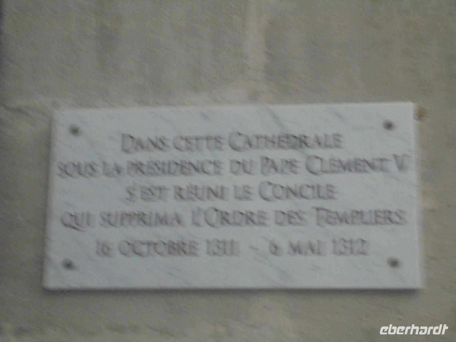 Prunkstück der Altstadt von Vienne aber ist die Kathedrale St. Maurice. Mehrere Sakralbauten standen hier nacheinander, der bedeutendste Bau war romanisch und wurde in der Gotik umgebaut. So ist auch noch sein heutiges Erscheinungsbild und nach einer erneuten Weihe durch den Papst im 13. Jh. fand im Erzbischofssitz Vienne dann auch das bekannte Konzil statt, auf dem die Templer aufgelöst wurden. Eine schlichte Gedenktafel in der gewaltigen Kirche weist auf dieses Ereignis hin.