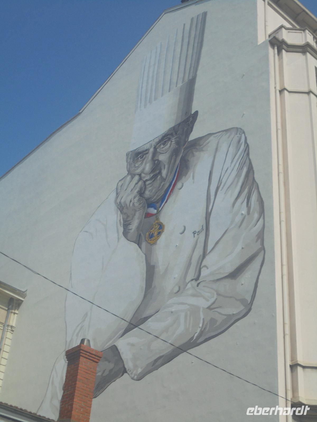 Anschließend machten wir einen Bummel durch das Zentrum von Lyon mit Alt- und Neustadt, das auch unter UNESCO-Welterbe-Schutz steht. Über den Jakobinerplatz und den bekannten Place des Terraux, auf dem das Rathaus und der - diesmal leider eingerüstete - Flüssebrunnen des Bildhauers Bartholdi stehen, gelangten wir in die Altstadt. In ihren verwinkelten Gassen mit den vielen „Bouchons", traditonellen Restaurants , herrschte reges Treiben. Zwischen den uralten Häusern, in denen früher viele Seidenweber, die Lyon berühmt gemacht haben, lebten, befinden sich die sogenannten „Traboules". Ihr Name geht auf ein lateinisches Verb für „durchqueren" zurück und bezeichnet damit werden Hausdurchgänge, diue sogar historische Bedeutung besitzen. Diese besonderen Passagen- oder Treppenhaus-Konstruktionen ermöglichten nicht nur den Durchgang von einer Straße zur anderen, verbanden Innenhöfe und führten nicht selten über verschiedene durch Treppen verbundene Ebenen zu mehr oder weniger „geheimen" Durchgängen. Hier lagerten nicht nur die Seidenweber ihre Stoffe bei schlechter Witterung, sondern in unruhigen Zeiten, z.B. während der Französischen Revolution oder der deutschen Besetzung im 2. Weltkrieg dienten sie als Versteck.