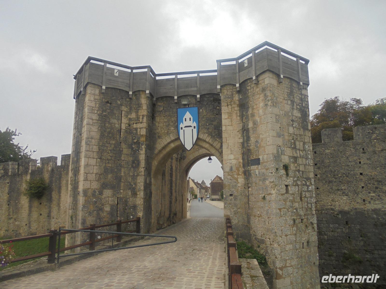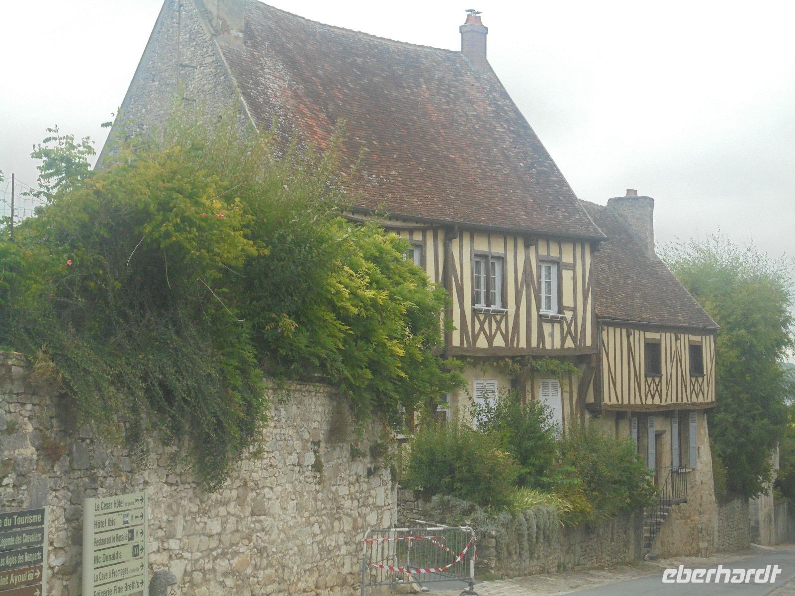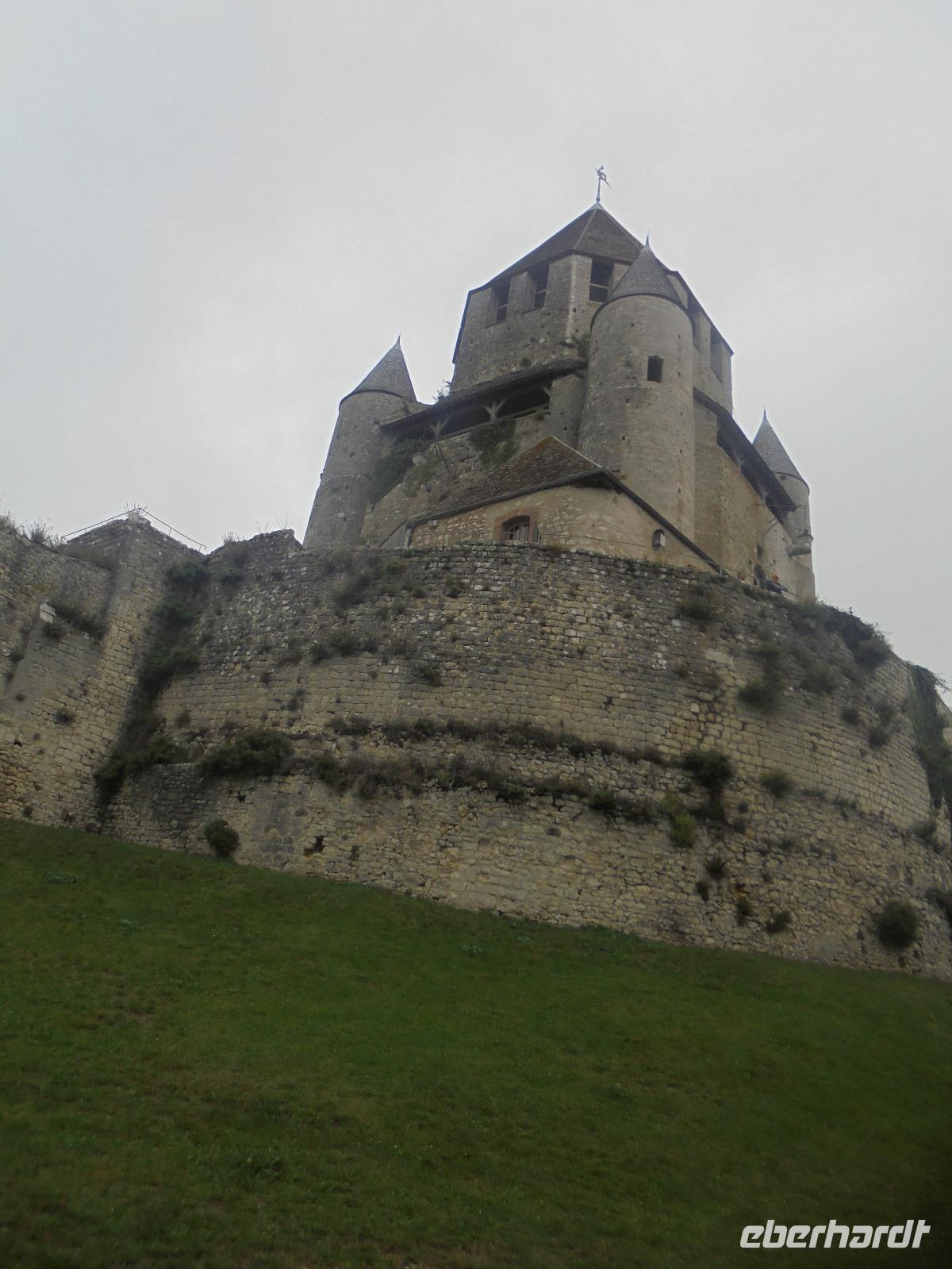 Seit 2001 steht die französische Gemeinde mit ihrem gut erhaltenen historischen Kern und umgeben von einer imposanten Wehrmauer auf der Liste des UNESCO-Weltkulturerbes. Wir konnten vom vor den Toren der Stadt gelegenen Parkplatz einen Bummel ins historische Zentrum machen. Seit fränkischer Zeit ist der Ort schon befestigt, und die seit dem 13./ 14. Jh. existierende über einen Kilometer lange Stadtmauer mit 22 Türmen ist nahezu komplett erhalten. Im Stadtzentrum fällt vor allem der Cesár-Turm auf, eine alte bergfriedartige Stadtfestung aus dem 12. Jh. die auf einem Hügel liegt und ihrerseits nochmals von starken Mauern umgeben ist. Sie wurde als Verteidigungsanlage, Gefängnis und Wachturm genutzt. Aus dieser Zeit ist auch noch eine Reihe romanischer steinerner Wohnhäuser erhalten, während ansonsten Fachwerkbebauung späterer Jahrhunderte das Stadtbild dominiert. Wir hatten etwas Zeit, uns die alte Stadt näher anzusehen und fuhren dann weiter zu unserem Tagesziel.