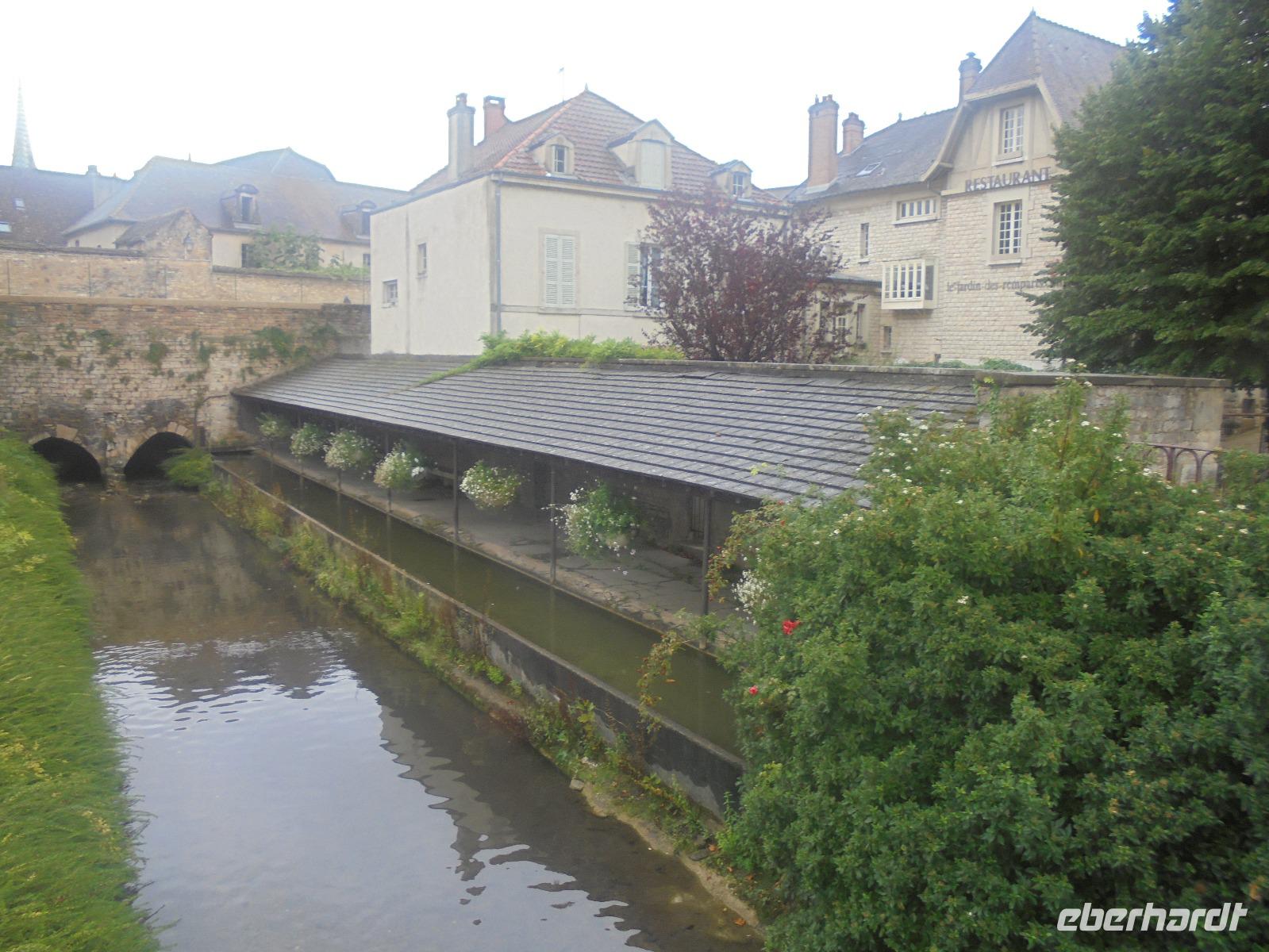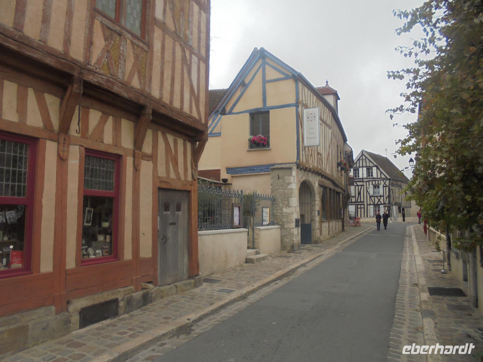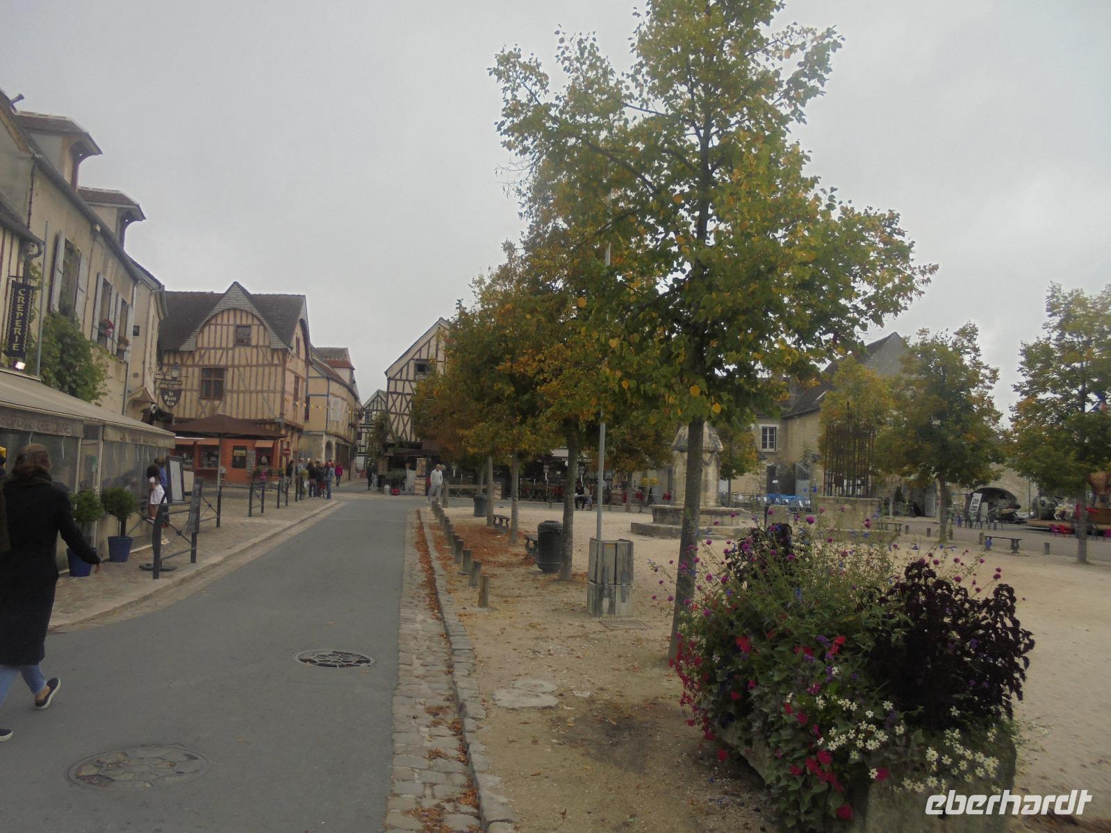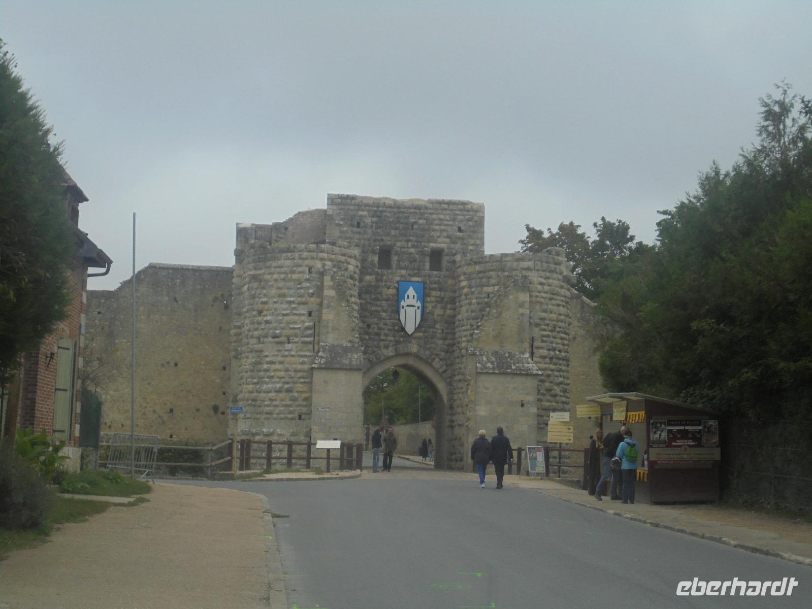 Seit 2001 steht die französische Gemeinde mit ihrem gut erhaltenen historischen Kern und umgeben von einer imposanten Wehrmauer auf der Liste des UNESCO-Weltkulturerbes. Wir konnten vom vor den Toren der Stadt gelegenen Parkplatz einen Bummel ins historische Zentrum machen. Seit fränkischer Zeit ist der Ort schon befestigt, und die seit dem 13./ 14. Jh. existierende über einen Kilometer lange Stadtmauer mit 22 Türmen ist nahezu komplett erhalten. Im Stadtzentrum fällt vor allem der Cesár-Turm auf, eine alte bergfriedartige Stadtfestung aus dem 12. Jh. die auf einem Hügel liegt und ihrerseits nochmals von starken Mauern umgeben ist. Sie wurde als Verteidigungsanlage, Gefängnis und Wachturm genutzt. Aus dieser Zeit ist auch noch eine Reihe romanischer steinerner Wohnhäuser erhalten, während ansonsten Fachwerkbebauung späterer Jahrhunderte das Stadtbild dominiert. Wir hatten etwas Zeit, uns die alte Stadt näher anzusehen und fuhren dann weiter zu unserem Tagesziel.