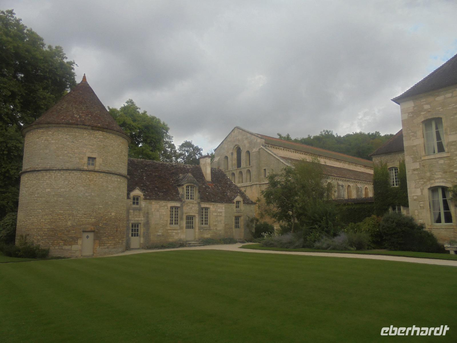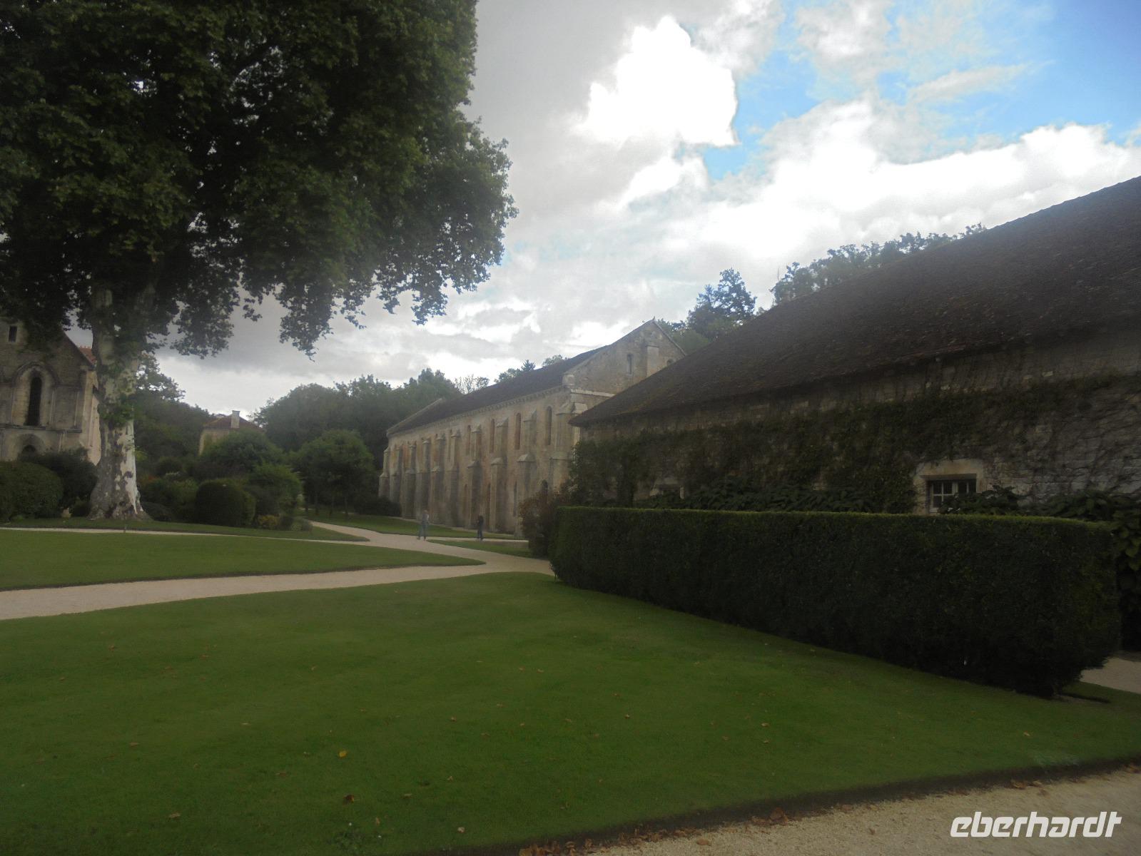Am Nachmittag machten wir uns auf in die Abtei von Fontenay. Das ehemalige Zisterzienserkloster gehört seit 1981 zum UNESCO Weltkulturerbe. Der auch mit den Tempelrittern verbundene Abt Bernhard von Clairvaux hatte die Abtei 1118 gegründet, kurz nachdem er zuvor in Clairvaux Abt geworden war. Das Besondere von Fontenay ist, dass die Gebäude noch fast im Originalzustand sind und man hier ein Stück der Geschichte zisterziensischer Architektur nachvollziehen kann. Die Schlichte der Westfassade der Abteikirche wird nach Betreten des Inneren durch dessen erstaunliche Raumwirkung kompensiert, die es erlaubt, die Originalwirkung einer Kirche des 12. Jh. nachzuempfinden. Dem Chor der dreischiffigen Basilika ist seitlich der Schlaf- und Krankensaal der Mönche angeschlossen - auch der befördert den originalen Eindruck des 12. Jh.