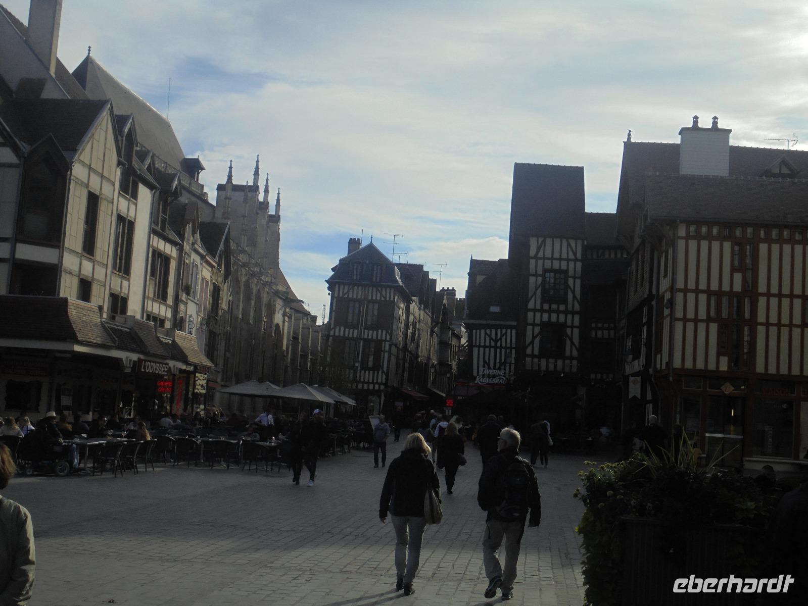 Wir checkten in Troyes erst in unser Hotel ein und sahen uns dann bei einem ausführlichen Rundgang den Bezirk um die Kathedrale, diese selbst und die mit zahlreichen originellen Fachwerkhäusern aufwartende Altstadt an. Nach einem Stündchen Zeit zur freien Verfügung in der wunderschönen historischen Altstadt nahmen wir noch gemeinsam das Abendessen in einem traditionellen Restaurant ein, das in einer der schmalsten Fachwerkgassen von Troyes lag.