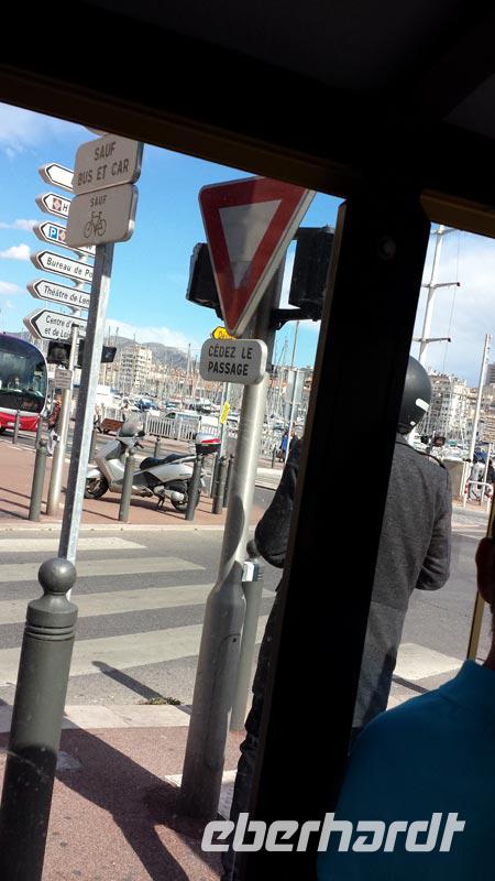 In Marseille erwarte uns viel Verkehr, eine Demonstration und am Tourismusbüro an der Canabiere unsere Stadtführerin Nathalie Federicci.