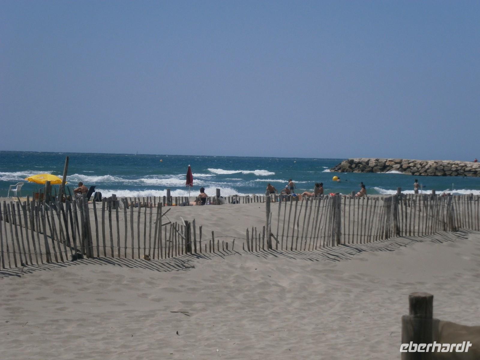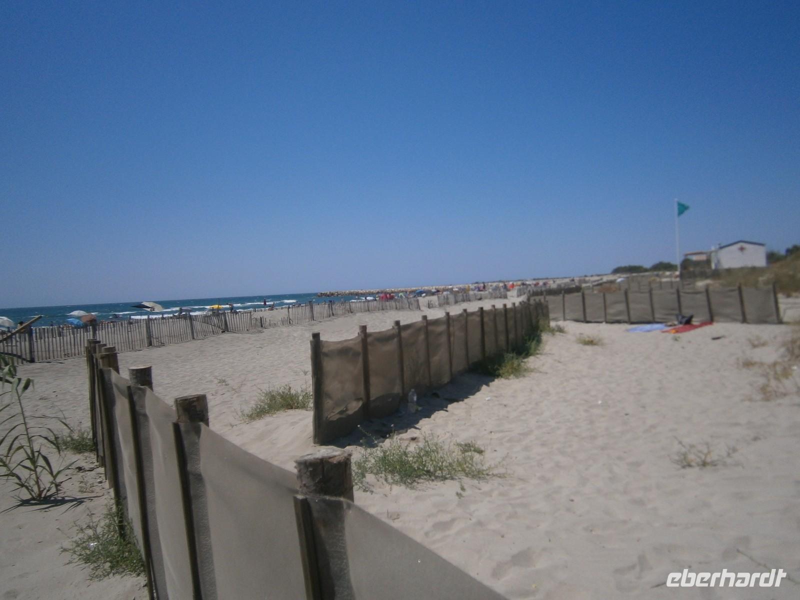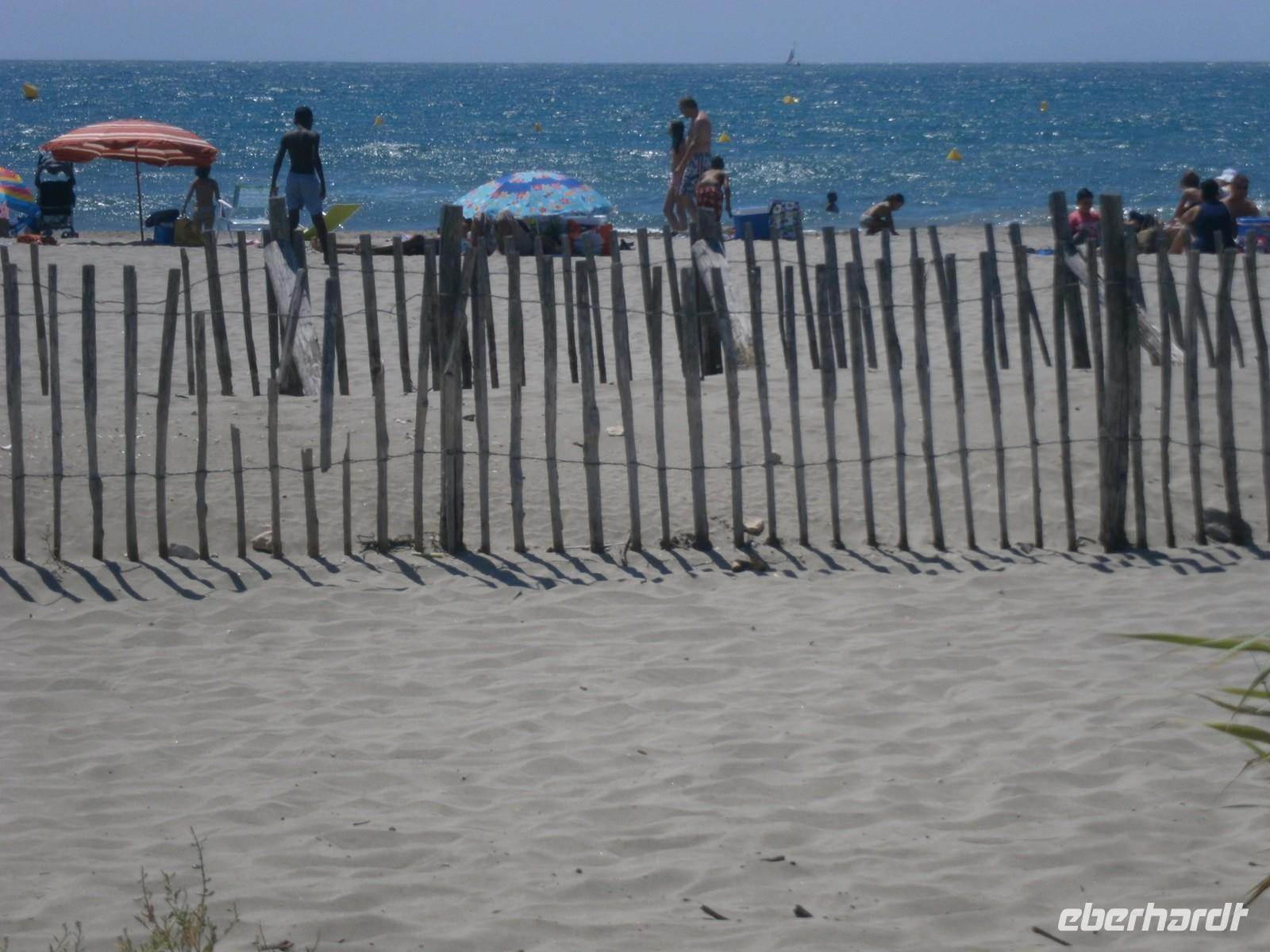 Gäste am feinen Sandstrand zum Schwimmen. Es ist ein richtiger Mittelmeerurlaub ohne Stress. Dann fahren wir durch die Camargue zurück nach Arles und machen Fotostopps bei