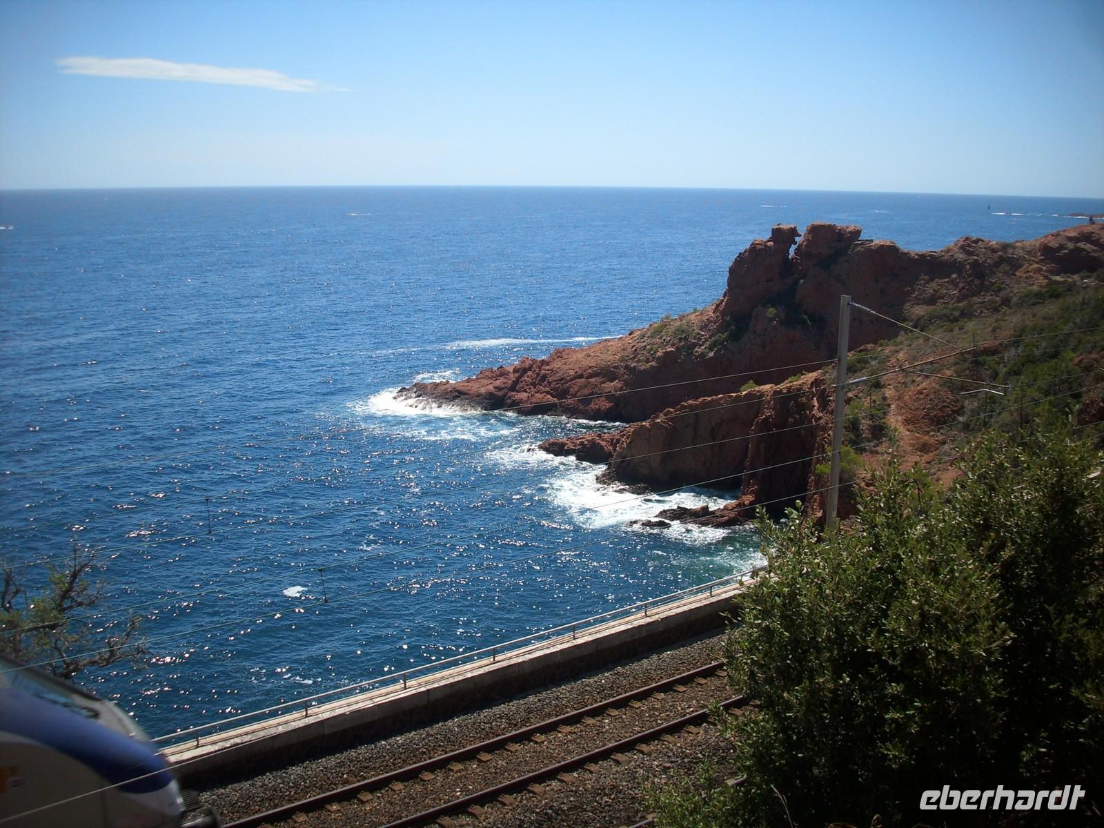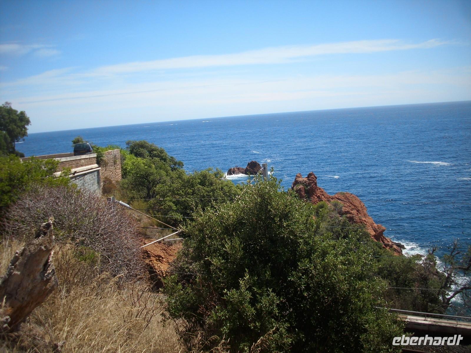 Sonnenschein und blauem Himmel fühlen wir uns hier wie die Reichen und Schönen. Dann geht es entlang der farbenprächtigen Esterelküste. Roter Porphyr, weiße Schaumkronen des azurblauen Wassers - ein einmaliges Zusammenspiel der Farben.