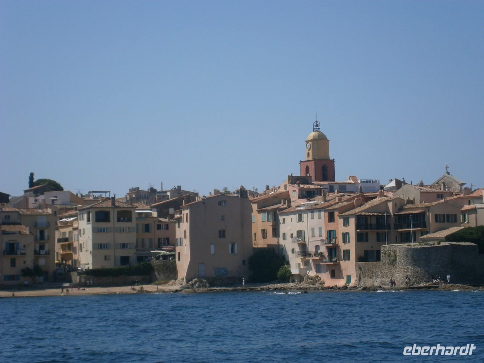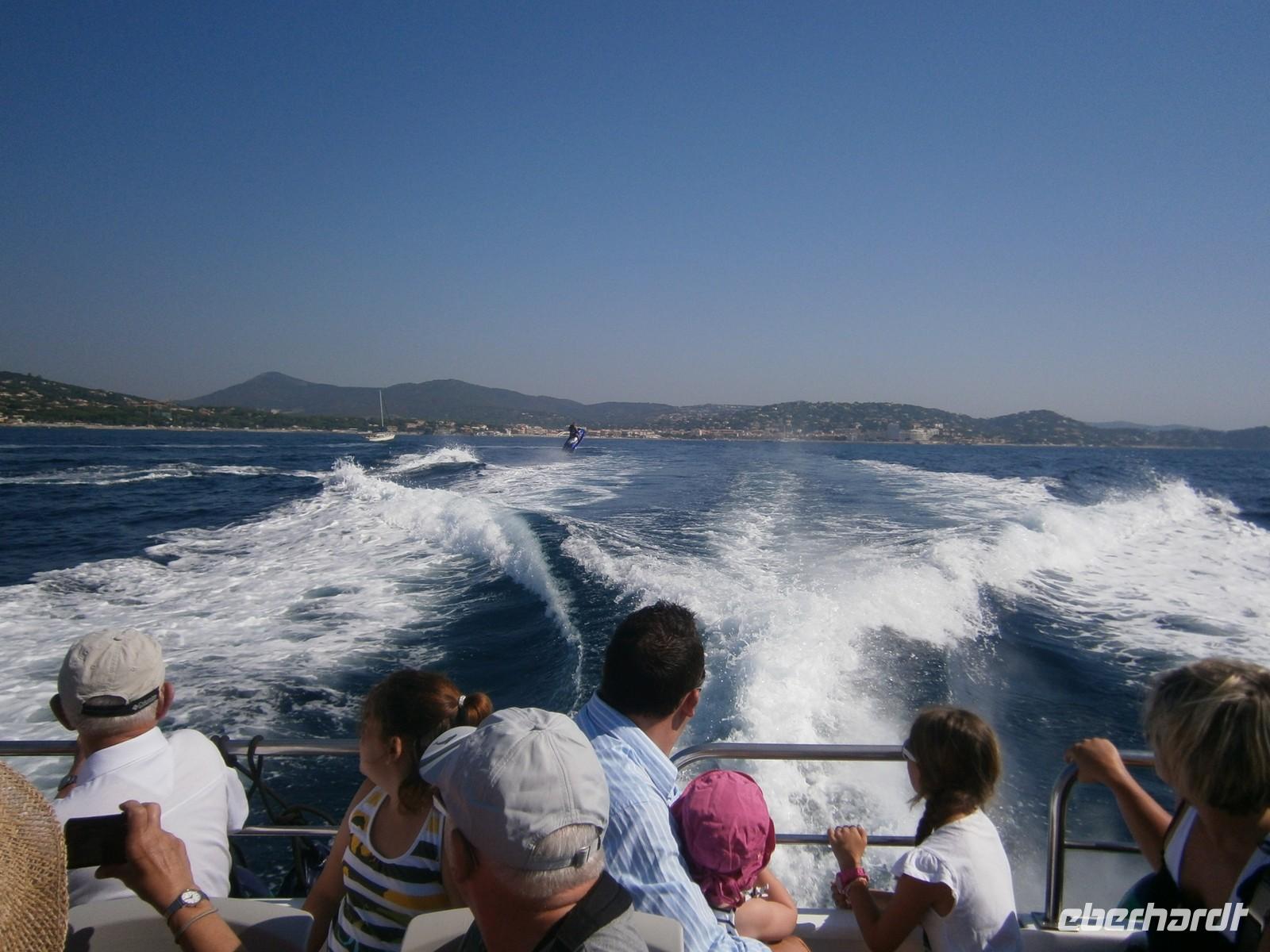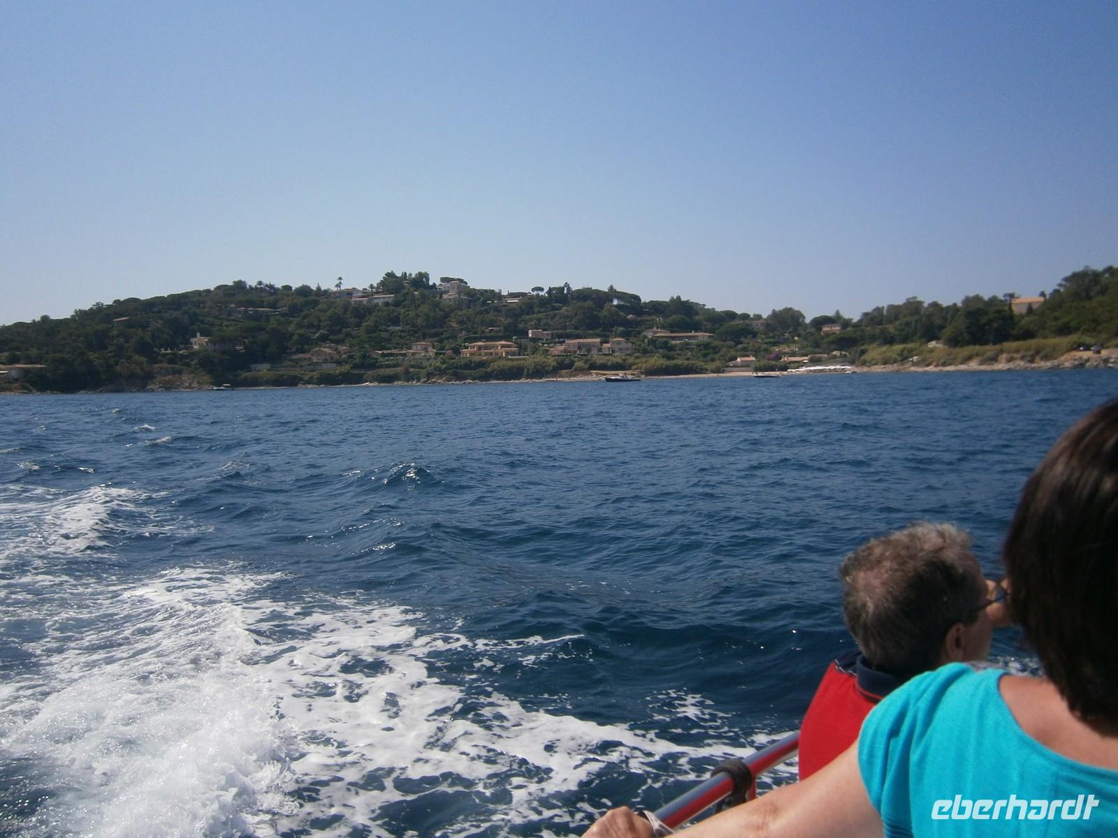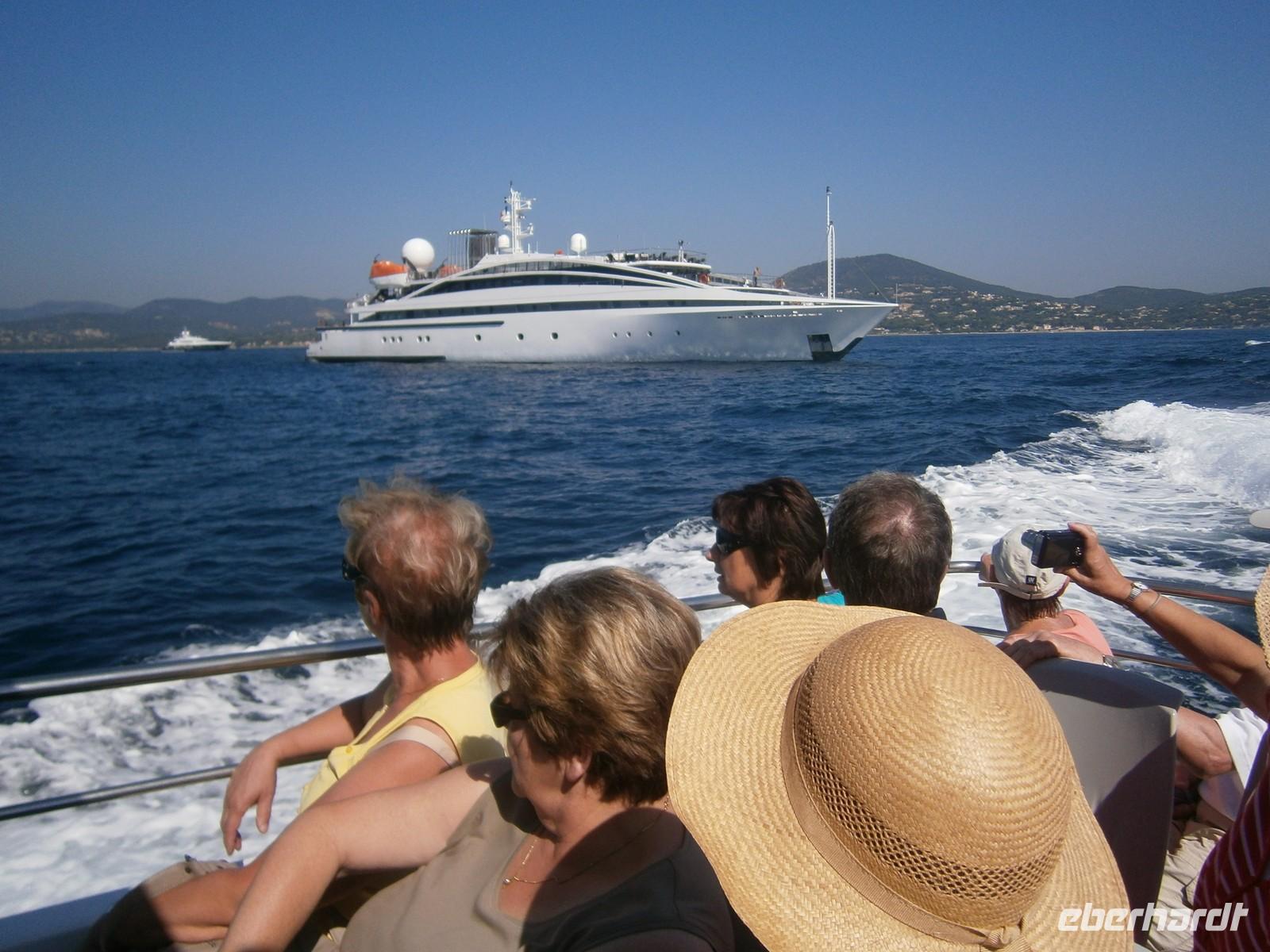 Während unserer Bootsfahrt stoppen wir vor den Villen der VIP`s und lauschen der Beschreibung, die über den Lautsprecher kommt. Angekommen in St. Tropez laufen wir