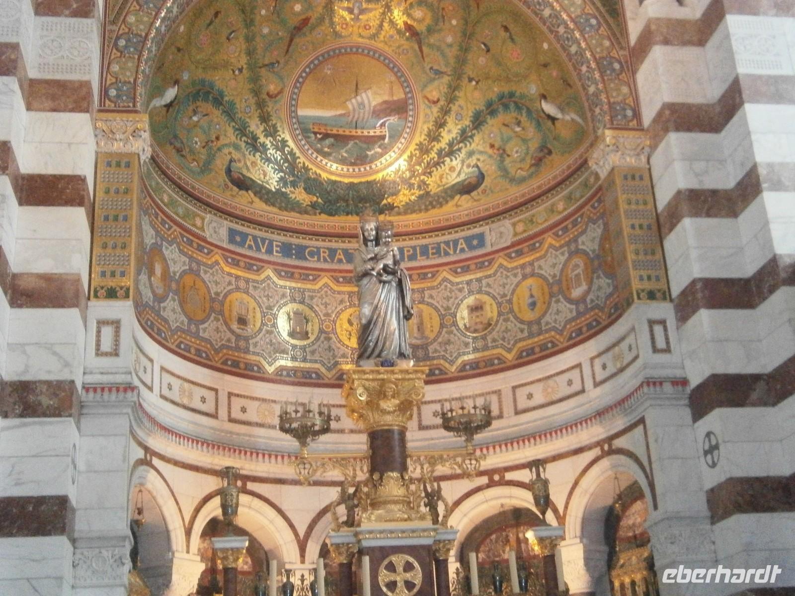 mit unserer örtlichen Reiseleiterin erschweren. Doch wir haben Glück, Nathalie führt uns durch die Millionenstadt bis zur Kirche Notre-Dame-de-la-Garde hinauf. Eine beeindruckende Stadt sehen wir von diesem Aussichtspunkt. Die Stadt ist am Wochenende voller Menschen und es ist kein Parkplatz zu finden. So fahren wir zurück nach Arles und