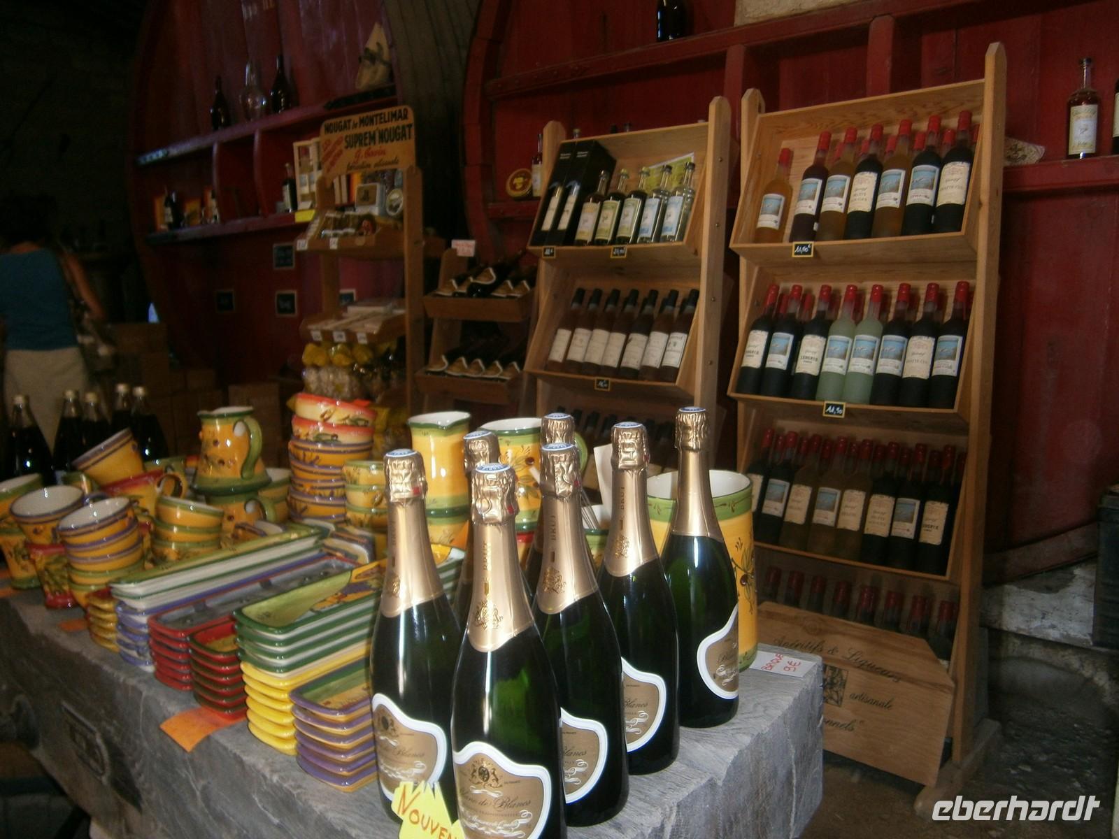 Hofladen in einer einfachen Scheune, wo wir abschließend noch zu einer Weinverkostung