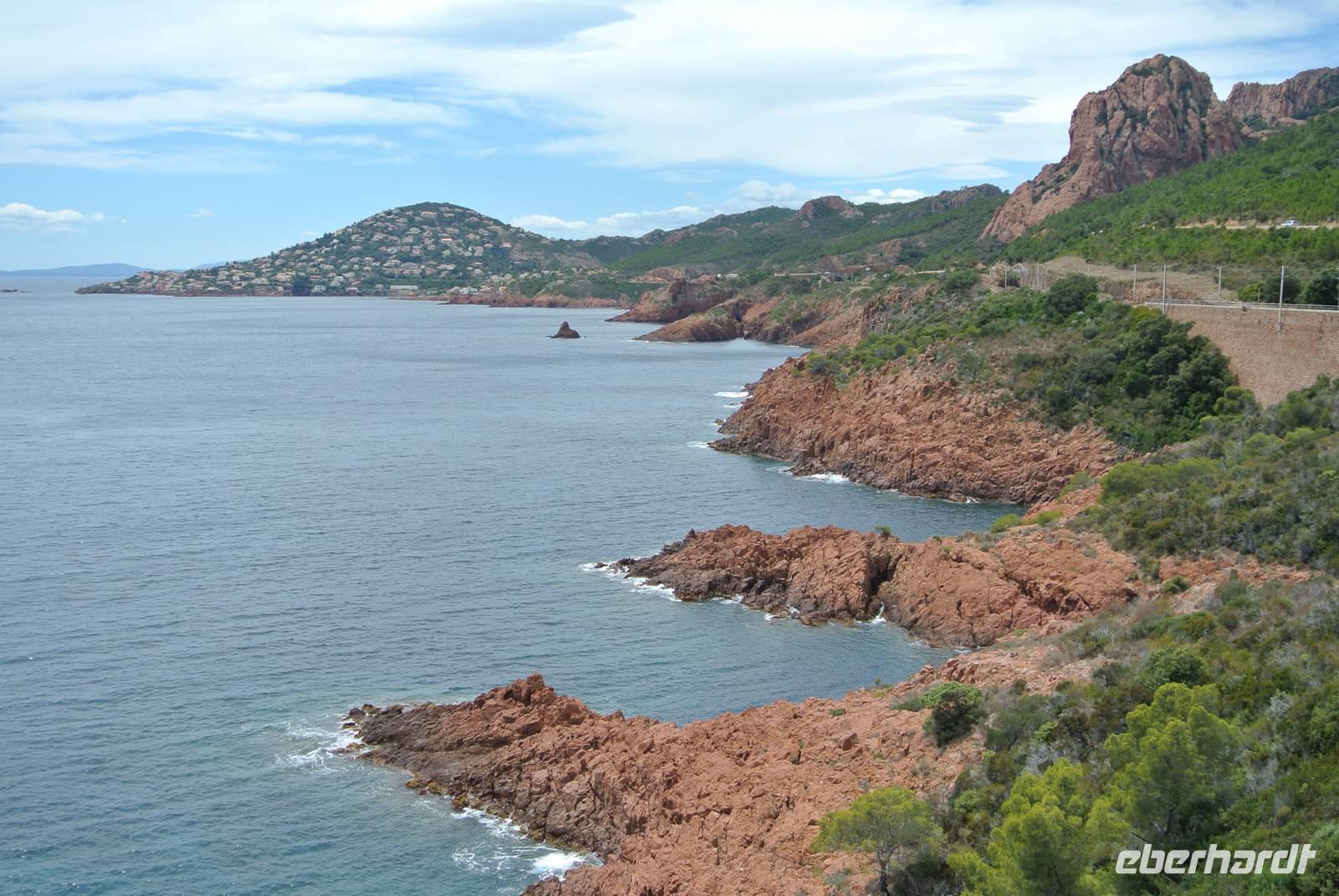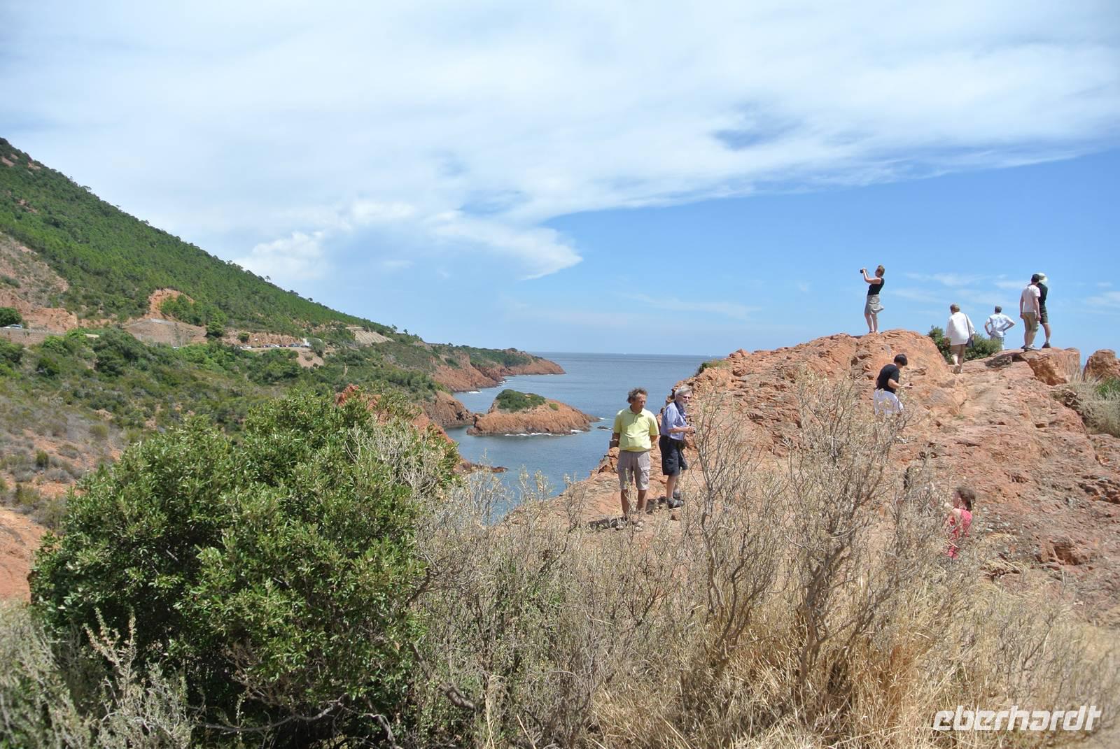 Um 12:30 Uhr ging es von einem Ort der Schönen und Reichen zu einer einzigartigen Naturlandschaft, der Esterelküste. Nach einer eindrucksvollen Panoramafahrt entlang dieser Küste mit roten Felsen und Klippen, machten wir zwei Fotostopps auf Aussicht-Terrassen um diese Naturschauspiel ausgiebig zu genießen und zu fotografieren.