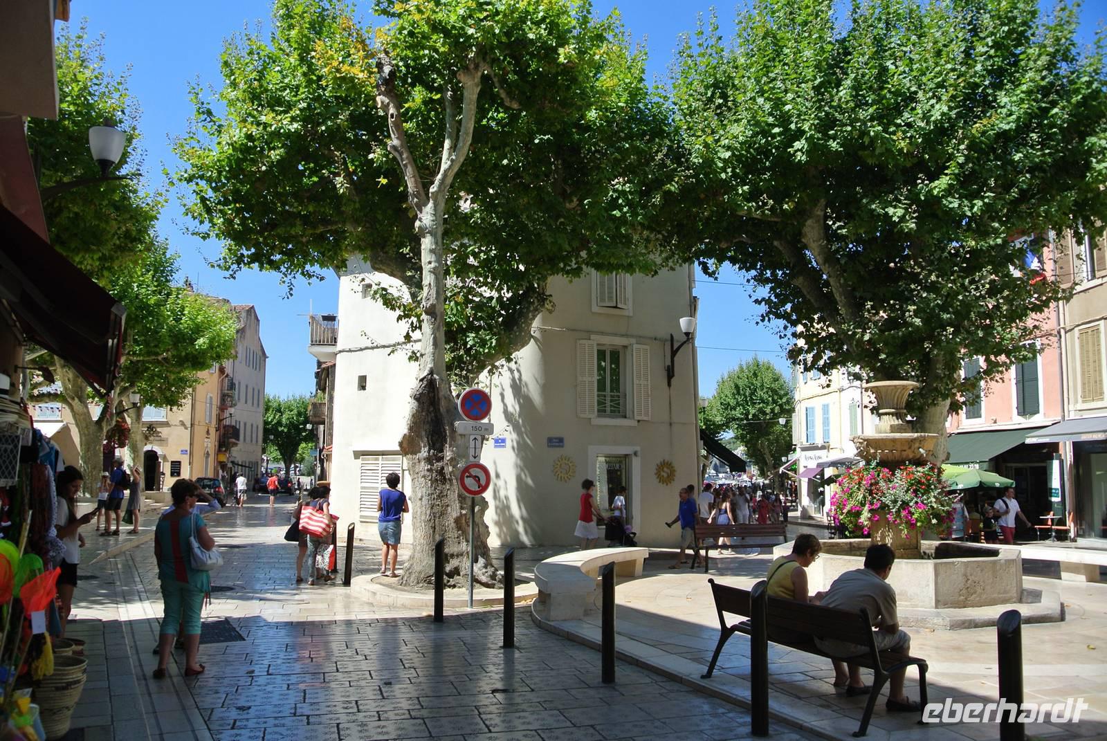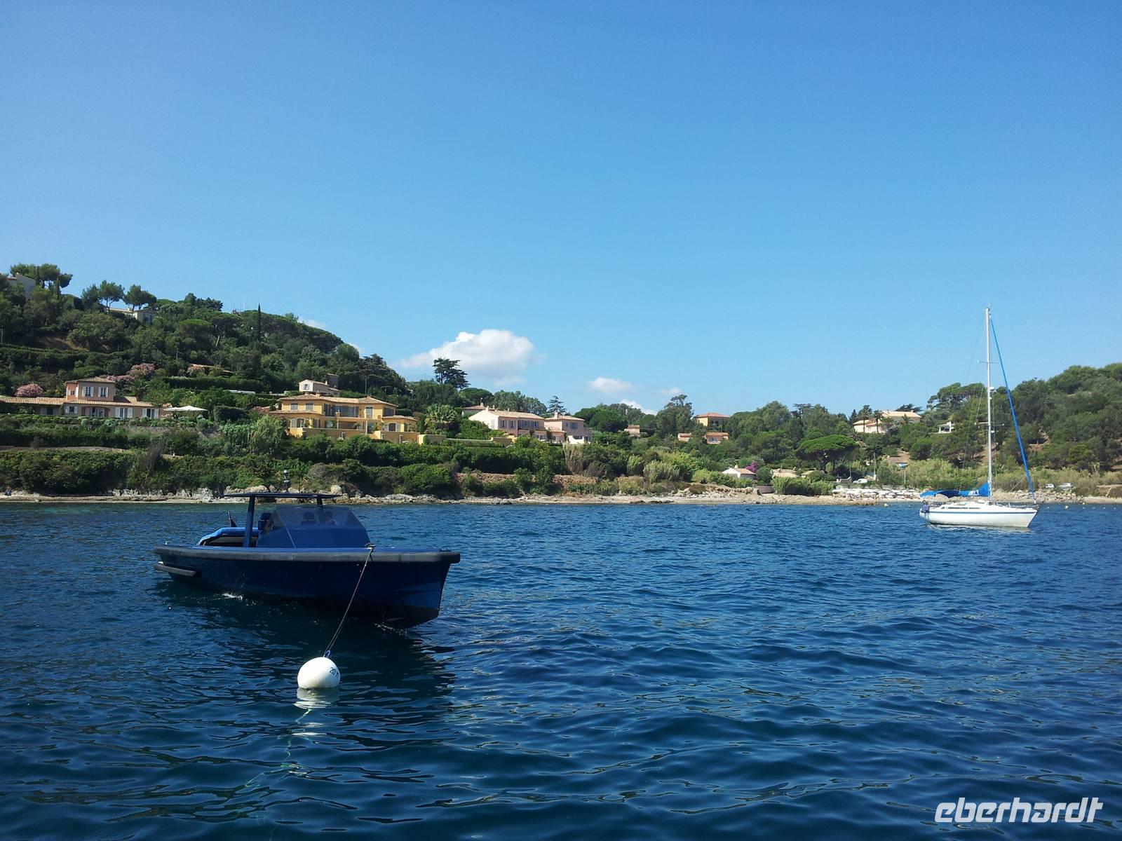 Die machten wir auch nicht mit dem Bus sondern mit einer erlebnisvollen Bootsfahrt von dem sehr liebenswürdigen Mittelmeer-Städtchen Ste. Maxime aus. Bevor wir unser weißes Boot einstiegen, machten wir einen Bummel durch die engen Gassen mit den vielen bunten Marktständen.