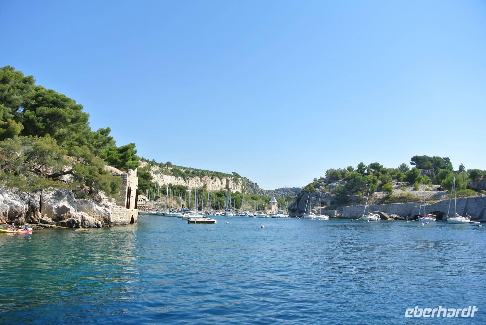 Um 10:45 Uhr legte unser Boot zu Calanques ab. Wir bestunten in einer 45-minütigen Bootsfahrt 3 Felsbuchten in die wir bis zum Ende einfuhren.