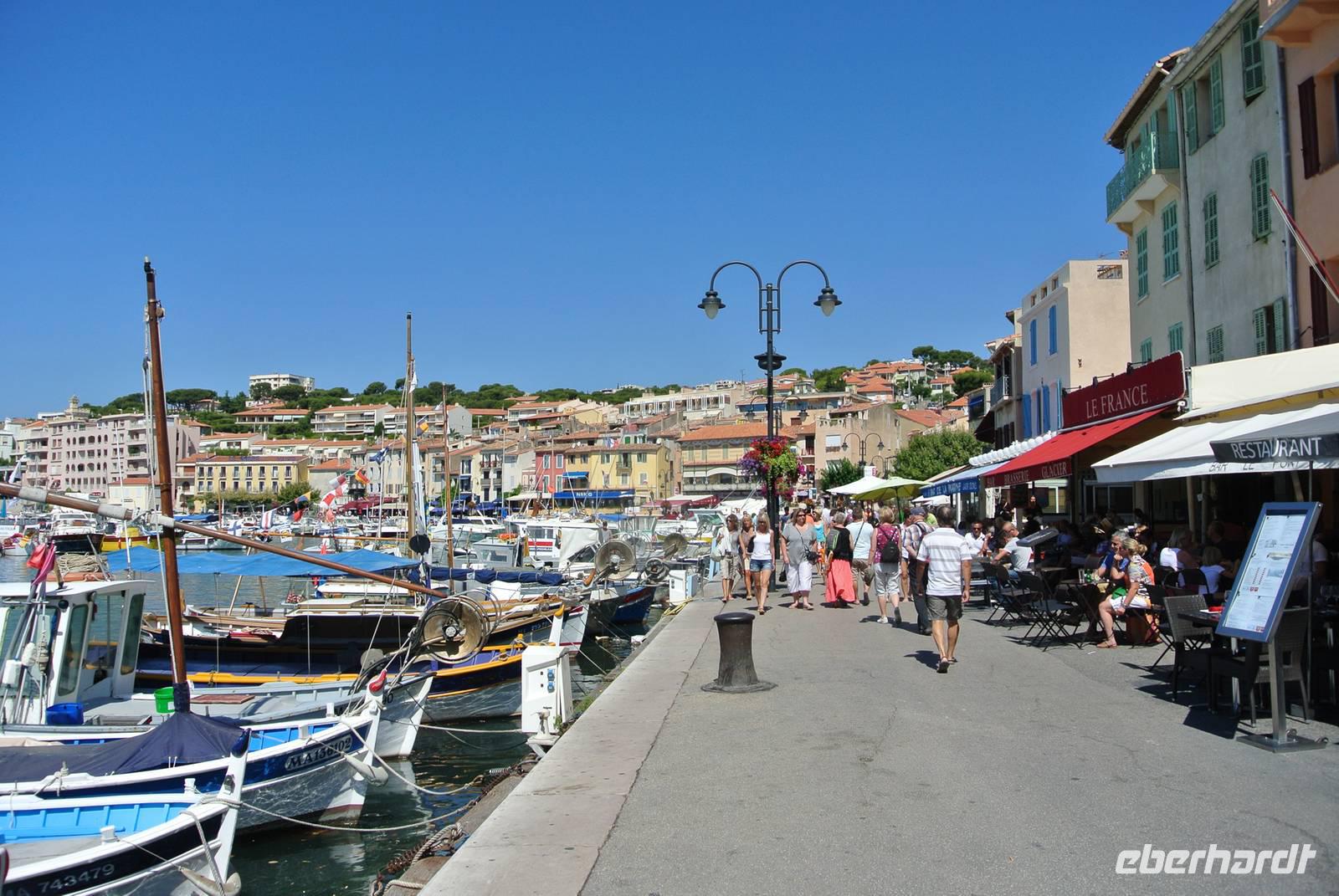 Der Hafen von CassisUm 10:00 Uhr kamen wir am Busparkplatz und der Abfahrtstelle vom Petit Train oberhalb des romantischen Hafenstädtchen Cassis an. Mit dem kleinen Zug fuhren wir 20 Minuten herunter in die Altstadt.