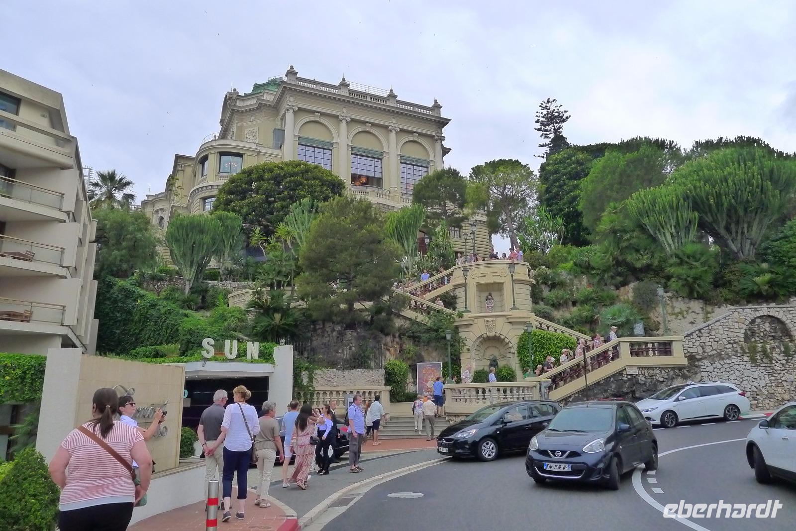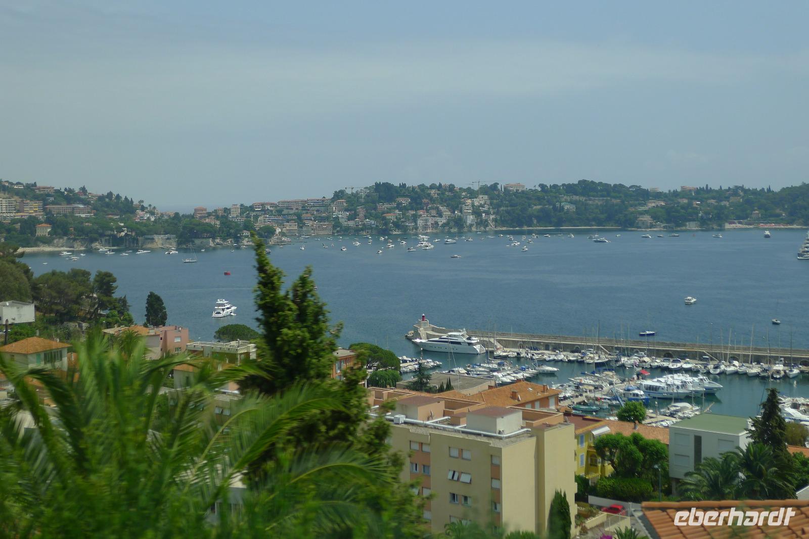 Am Nachmittag ging es bei hohen Temperaturen und einer drückenden Schwüle weiter ins Fürstentum Monaco. Unterwegs erfuhren wir von Viola die Geschichte der Familie Grimaldi. Vom Fürstenpalast ging unser Blick über die dichte Bebauung hinweg auf den Hafen mit all seinen mondänen Yachten. Anschließend fuhren wir über die berühmte Formel-1-Strecke und erklommen viele Stufen zum Grand Casino, der legendären Spielbank. Wer bei der Kleider- und Schuhkontrolle nicht durchfiel, durfte sogar einen Blick in das prunkvolle Innere der Spielbank werfen. Aber so ganz objektiv ging es hierbei nicht zu. Wir lernten, dass Sandalen nicht gleich Sandalen sind! Und auch Turnschuhe sind nicht gleich Turnschuhe! Voller Eindrücke traten wir die Rückfahrt nach Nizza an. Die Fahrt über die Küstenstraße bot immer wieder schöne Ausblicke, auch auf die hoch oben auf Felsen ‚sitzenden' kleinen Dörfer, die so genannten ‚villages perchés'. Im Hotel angekommen blieb noch etwas Zeit vor dem Abendessen. Einige Gäste ließen den Abend an der Bar des Hotels ausklingen. Bei einem Getränk konnte man den Blick über die Dächer von Nizza schweifen lassen und die laue Sommernacht genießen.